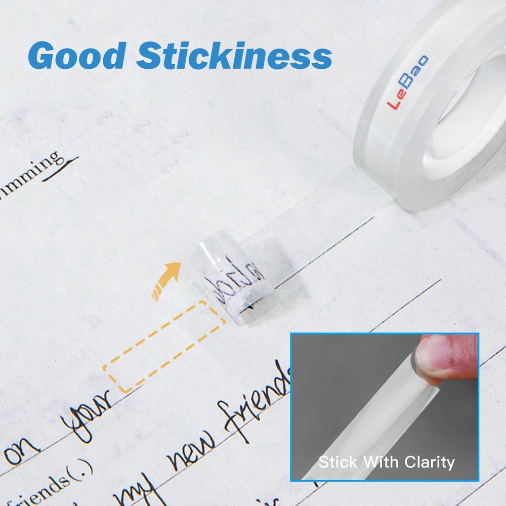 Easy to Use: Our transparent tape is designed to be convenient and user-friendly, allowing you to tear it by hand. This eliminates the need for scissors or other cutting tools, making it effortless and efficient to use. Additionally, this feature ensures safety by avoiding the use of sharp tools, making it suitable for both home and school environments. Quality Materials: The refill tape provides reliable transparency, allowing for a clear view of the adhered parts. It is made of high-quality materials, ensuring excellent adhesion and strong stickiness, without easily tearing. Optimal Width: The office transparent tape is the perfect size, measuring 0.47 inch in width and 30 yards in length per roll. It is designed for use on a variety of materials, such as paper and laminates, making it versatile and practical. Easily Refillable: Our wrapping tape, which has a one-inch inner diameter, fits all standard dispensers. With 12 rolls of transparent tape refills, you'll have enough to meet your daily light packaging needs. For added convenience, it can be used with a dispenser. Wide Range of Uses: This tape is perfect for safeguarding letters, sealing envelopes, repairing documents, wrapping gifts, packaging lightweight items, and sticking torn paper or pages back together.