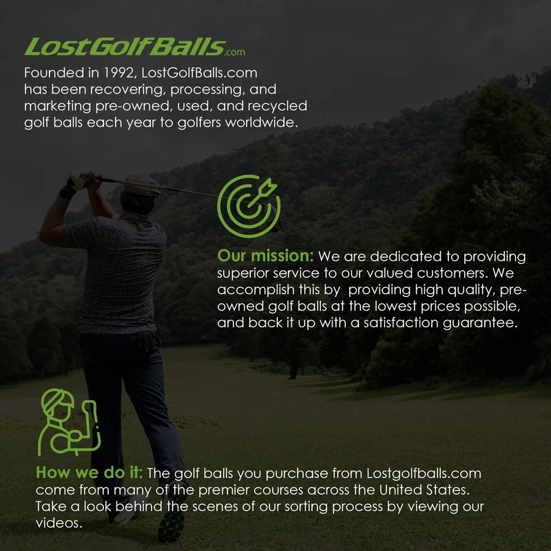 LostGolfBalls Where Every Ball Has A Second Chance At Greatness! About Us Titleist Pro V1 Titleist Callaway TaylorMade Bridgestone 48 Vice Pro Drip Mix AAA Good Quality Used Golf Balls *Free Shipping!* Price USD 63.96 Free Delivery Free next day delivery on orders over $79 30 Days Return Policy See our return policy Online & Phone Support Have a query? Just contact our support team 100% Buyer Satisfaction No risk. Quality guaranteed! FOLLOW US HAVE A QUESTION? CATEGORIES Accessories Assorted Brands Bridgestone By Quantity Callaway Colors/Crystals Golf Tees Golf Tees/Gloves Kirkland Maxfli Nike Novelty/Rare Other Pinnacle Range Balls Srixon TaylorMade The Vault Titleist Titleist Pro V1/V1x Vice Volvik HELPFUL LINKS Add to Favorite Seller Ask Seller a Question View Feedback Visit Our Store About Us Contact Us Stay Updated! Add my shop to your favourites & receive my email newsletter about new Items and special promotions! SUBSCRIBE PRODUCT DESCRIPTION Untitled Document Search our eBay Store Golf Ball Brands ProV1/ProV1X Refurbished Pro V1/V1X Titleist Bridgestone Callaway Nike Srixon TaylorMade Crystals Assorted Brands Range Balls Accessories View All Other Balls 10 Dozens 20 Dozens Novelty Balls View All 48 Vice Pro Drip Mix AAA Good Quality Used Golf Balls Good Quality (AAA) These used golf balls may have slight scuffs and blemishes. There may be minor discoloration and some of the print may smudge. Higher grade x-outs and practice models may be included. No cuts are included. These golf balls will include player markings, team and corporate logos at random. Shipping How long does it take for my package to arrive? We ship from Houston, Texas and depending on your locations FedEx Ground will take 1-5 business days. U.S. Domestic Priority Mail will take 2-4 business days. Priority Mail International will take 10-14 business days. LostGolfBalls.com FedEx Ground (US Domestic Ground only) Not Applicable for orders outside the 48 states. We are not responsible for any duties, tariffs or fees imposed (if any) by your government or local tax agency. Shipping to Alaska, Hawaii, APO, Puerto Rico and Canada will all be shipped by USPS Priority. Shipping oustide the United States will be shipped through USPS Priority International Untitled Document Search our eBay Store Golf Ball Brands ProV1/ProV1X Refurbished Pro V1/V1X Titleist Bridgestone Callaway Nike Srixon TaylorMade Crystals Assorted Brands Range Balls Accessories View All Other Balls 10 Dozens 20 Dozens Novelty Balls View All 48 Vice Pro Drip Mix AAA Good Quality Used Golf Balls Good Quality (AAA) These used golf balls may have slight scuffs and blemishes. There may be minor discoloration and some of the print may smudge. Higher grade x-outs and practice models may be included. No cuts are included. These golf balls will include player markings, team and corporate logos at random. Shipping How long does it take for my package to arrive? We ship from Houston, Texas and depending on your locations FedEx Ground will take 1-5 business days. U.S. Domestic Priority Mail will take 2-4 business days. Priority Mail International will take 10-14 business days. LostGolfBalls.com FedEx Ground (US Domestic Ground only) Not Applicable for orders outside the 48 states. We are not responsible for any duties, tariffs or fees imposed (if any) by your government or local tax agency. Shipping to Alaska, Hawaii, APO, Puerto Rico and Canada will all be shipped by USPS Priority. Shipping oustide the United States will be shipped through USPS Priority International Specifications Brand Vice Sport/Activity Golf Letter Grade AAA Number of Items in Set 1 Ball Type Recycled Balls MPN 48BKT-ECOM-VI-Drip Mix-3 Item Weight 6 Number in Pack 48 Features Distance Country/Region of Manufacture United States Compression Rating Medium Personalize No Suitable For Match Manufacturer Warranty 1 Month Unit Type lb Quantity 48 Custom Bundle No Modified Item No Non-Domestic Product No Golf Ball Condition Used Golf Ball Golf Ball Type Recycled Custom Block Heading Custom Block Content. ABOUT US LostGolfBalls has developed the largest collection of pre-owned recycled and refinished golf balls available in a variety of conditions for every type of golfer. At LostGolfBalls our process is simple and non-invasive. Golf balls are washed, sorted by brand and style, and then quality graded into four golf ball qualities. Since 1992, LostGolfBalls has processed and sold over 1 billion golf balls to golfers of every skill level. With a 100% money back guarantee you have nothing to lose. Buy your favorite golf ball today and enjoy the savings! PAYMENT We accept payment by PayPal, Venmo, and every major credit card. SHIPPING SHIPPING Shipping is FREE for items over $79. Items below $79 incur the low shipping fee of $7 per item to the contiguous United States, unless otherwise noted. ORDER PROCESSING TIME LostGolfBalls ships 7 days a week with FedEx from Houston, Texas. Fedex delivers packages 7 days a week. Your order ships within 1 business day and can take anywhere from 1 to 6 days to arrive. In some rare circumstances, your order can take up to 7+ days. RETURNS All items must be returned in the same condition it was received and within 30 days of the purchase date. Returns are processed within 1-2 business days upon return delivery date. If the wrong item was sent the seller will pay for the return, otherwise it is the buyers responsibility to pay for the return. CONTACT US At LostGolfBalls, we are committed to providing our customers with the best possible on-line shopping experience. This includes a commitment to excellent customer service, even after your order has been delivered. Please feel free to submit any questions or inquiries regarding your order by sending us a message through the eBay messaging system. Our customer service department will respond to eBay messages within 24 hours Monday - Friday, 8 am - 5 pm CST. WHAT OUR CUSTOMERS ARE SAYING ABOUT US Great seller, excellent custom