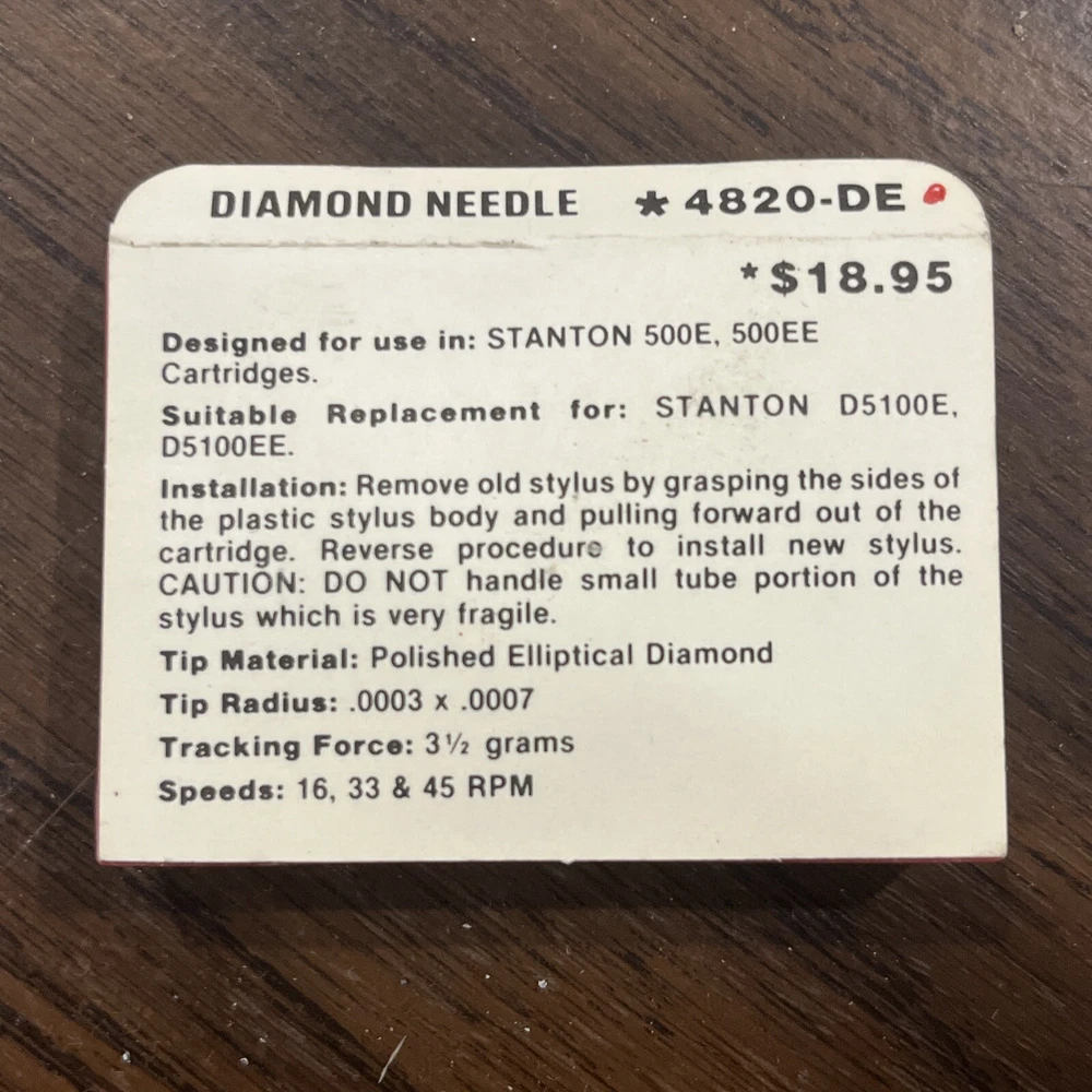 4820-DE Superb Needle Stylus Needle Replacement D5100E D5100EE For Stanton 500 Elliptical stylus replacement packaged by Superb Needle for Stanton 500. 3.5g tracking force. New and unused. See photos.