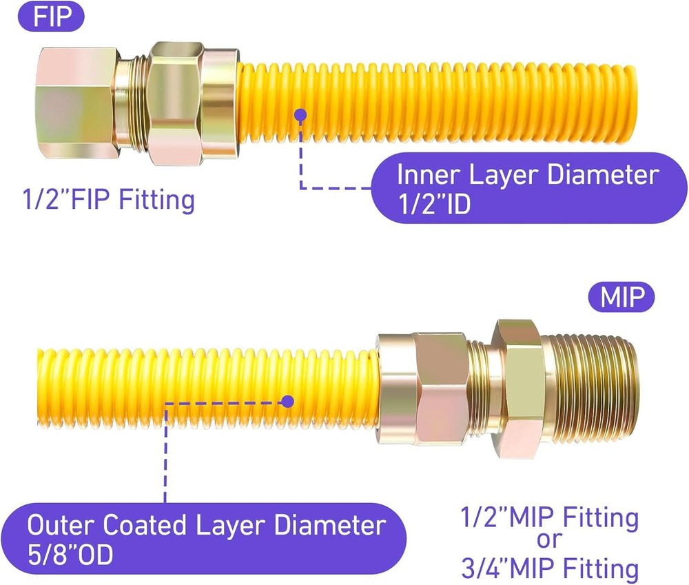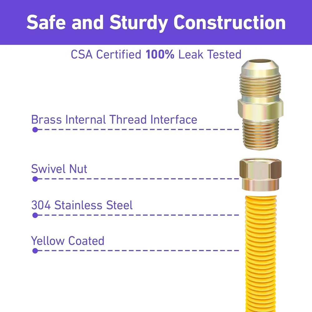 This gas line connector kit is a must-have for any home appliance setup! The 48" flexible yellow-coated hose is durable and easy to install, fitting perfectly with stoves, dryers, water heaters, and furnaces. The included 1/2" and 3/4" adapters make it super versatile, and the fast shipping is a nice bonus. No leaks, no hassle—just reliable performance. Highly recommend!
