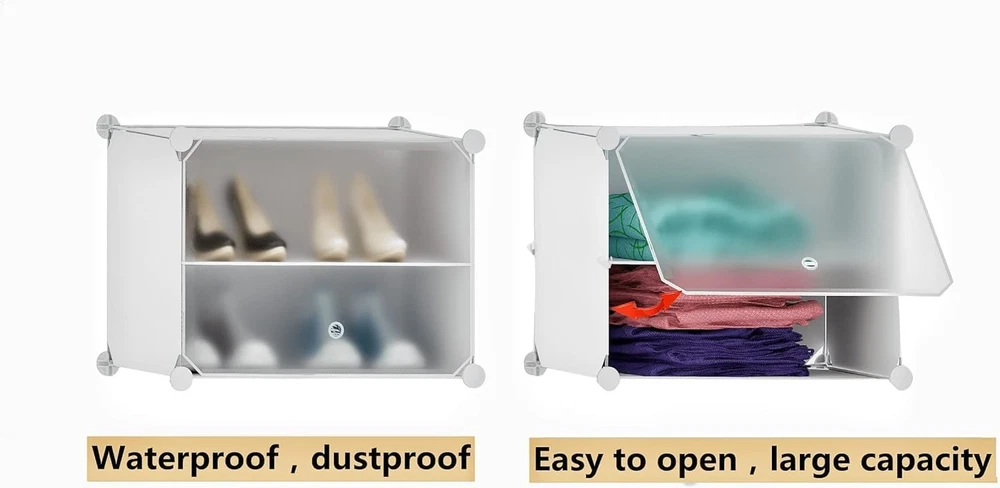 We provide sufficient accessories. Please check the number of accessories according to the instructions before installation. If there is any missing, we will provide a solution within 24 hours. You can assemble it according to your needs. Accessories may be redundant or missing due to different assembly methods, because we provide the number of accessories for 3 columns and 8 layers. If you assemble an 8-layer shoe cabinet, you can assemble 3 connected columns, which is just right. 【48 Pair Large Shoe Rack】Size: 48"(W) x 12.5"(D) x 48"(H). Our shoe rack provides a large space to store shoes, which can hold 48 pairs of shoes. It can store all kinds of high-heeled shoes, high-top shoes, sports shoes, sports shoes, boots, enough to meet the daily needs of you and your family,make your home neat and uncluttered 【Dustproof & Prevent Pets from Chewing Shoes】All shoes can be enclosed by shoe rack, which can effectively prevent dust and easy to clean. And comes with an easy-to-open transparent door that lets you find your shoes quickly and prevents pets from chewing on your shoes.The perforated door facilitates air circulation and prevents the accumulation of peculiar smells 【Expandable Shoe Rack for Closet】 You can customize the design according to your needs, put the shoe rack in the closet, store shoes, hats, clothes, toys, etc.Keeps your everyday storage handy yet organized 【Sturdy Structure】The shoe rack is made of metal frame and environmentally friendly, harmless and durable PP material, waterproof and easy to clean. Maximum load capacity of each cube: 11lbs 【Suitable for all space】The shoe rack is strong enough, spacious, compact, and can be placed in Closet, living room, doorway, bedroom, office. Equipped with installation instructions and installation tools to help you install quickly and easily.The content: 16* 12x12inch side panels + 12*12x16inch frosted doors + 39*12*16inch cross panels + 40 connectors + 32 cross panel clips + 1 five-claw hook + 1 hammer We provide sufficient accessories. Please check the number of accessories according to the instructions before installation. If there is any missing, we will provide a solution within 24 hours. You can assemble it according to your needs. Accessories may be redundant or missing due to different assembly methods, because we provide the number of accessories for 3 columns and 8 layers. If you assemble an 8-layer shoe cabinet, you can assemble 3 connected columns, which is just right.