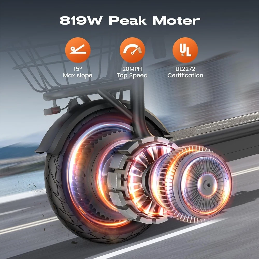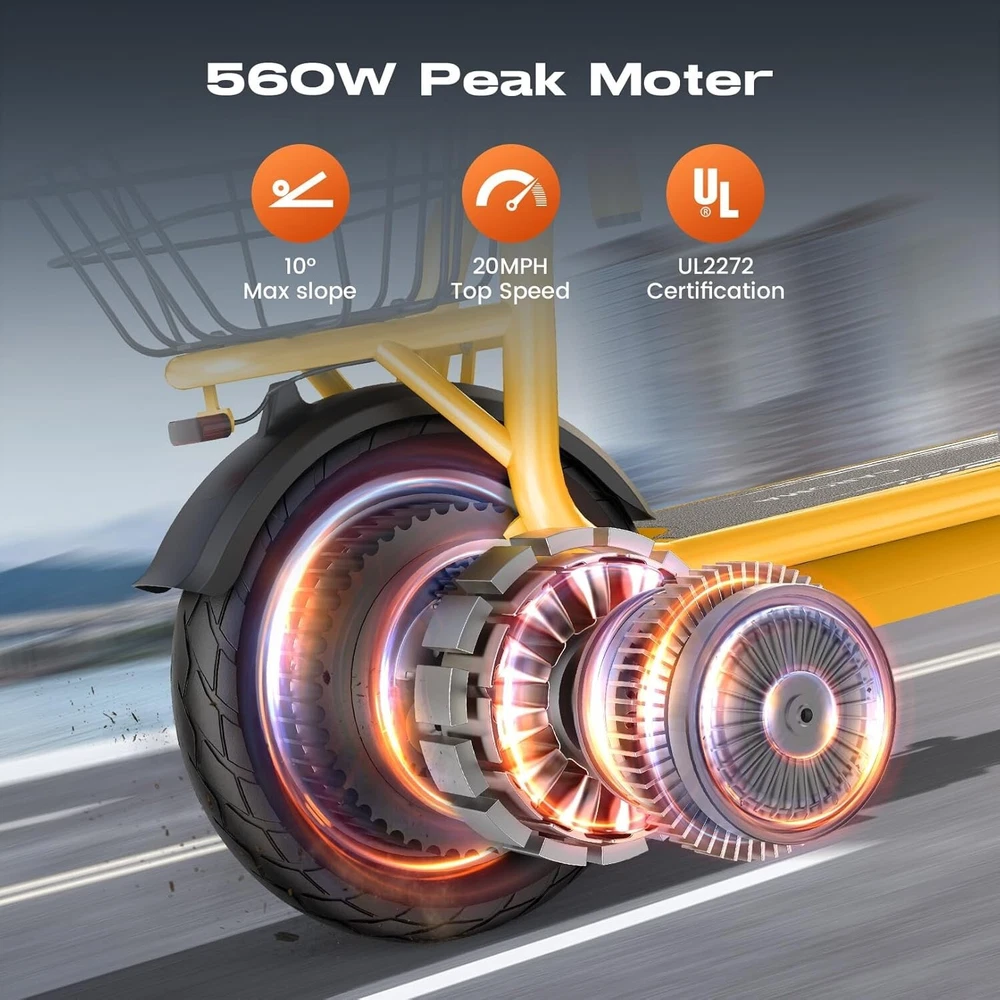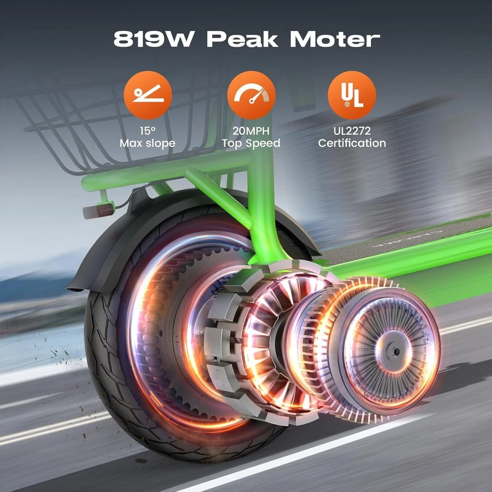 Product Description About this item 【48V Battery and Peak 1200W Powerful Motor】The electric scooter for adults is equipped with a 48V/10.4Ah battery, which can last for a long time without frequent charging, with a maximum range of up to 30 miles and a maximum speed of 20mph, and it only takes 7 hours to fully charge. The motor has a peak power of up to 1200W and can easily climb a 30-degree slope, making it very suitable for short-distance commuting 【LED Display and 3 Speed Modes】The electric scooter adults is equipped with an LED high-definition display, which can clearly display: speed mode, battery power, current speed, and mileage during the day and at night. The caroma scooter uses a half-turn handlebar design, getting rid of the traditional full-grip speed control mode to ensure riding safety; the scooter has 3 different speeds for you to choose, giving you a better riding experience 【Excellent shock-proof suspension and brake system】This electric scooter with seat for adults has an excellent shock absorption system composed of headlights and taillights, electronic horns, front forks and sensitive double disc brakes, which can brake quickly, safely and stably; durable one-piece wheels and thick steel frame can withstand high-intensity pressure, with a maximum load-bearing weight of 265 pounds, suitable for heights of 3'11"-5'11" 【 Foldable Electric Scooter with Seat】Caroma electric scooter is equipped with an 8.27-inch wide deck, a soft seat that can be adjusted according to different heights, and a storage basket on the back seat; the front of the vehicle is compact and foldable, making it easy to store in a car trunk or other small space 【Caroma Electric Scooter After-Sales Support】Caroma electric scooter with Seat is UL 2272 certified. This detachable electric scooter is 90% assembled and comes with instructions and installation tools, making installation very easy. If you encounter any problems, such as motor failure, charging problems, or missing accessories, please contact us in time