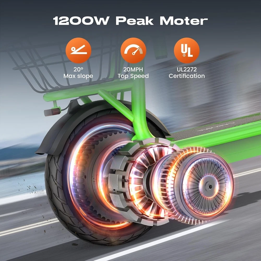 48V 10.4Ah Electric Scooter with Seat 1200W Motor 20MPH 30-Mile Range