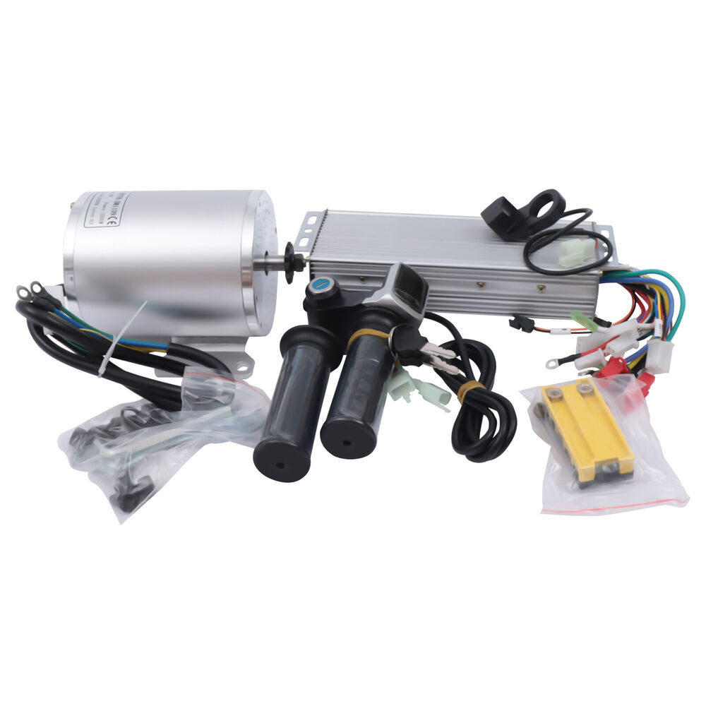 Package Included 1* 48V 2000W Motor 1* 48V 2000W Controller 1* LCD Twist Throttle 1* 3-Speed Switch 2* Keys All Accessories for Assembly 48V 2000W Adjustment Brushless Electric Motor Controller BLDC for Go-Karts ATV Welcome~ 48V 2000W Brushless Electric Motor Controller BLDC 5500 RPM for Go-Karts ATV Description This brushless motor kit is made of high-quality aluminum alloy and iron which is durable, sturdy, and has a long service life. The rotational speed range can reach 4300rpm which can make your ride easier. It is used to convert an ordinary bicycle into an electric bicycle, making it both a bicycle and an electric bicycle. You deserve it! Key Features Excellent Material: This brushless motor kit is made of high-quality aluminum alloy and iron, which are wear-resistant and rust-resistant. Therefore, it is durable, sturdy, and has a long service life. High Speed: The rotational speed of this motor can reach 4300rpm which can make your ride easier. So you can enjoy riding. Low Noise: This brushless motor runs with much lower friction because it has no brushes, releasing less noise during operation. Speed Adjustment: This brushless motor kit allows for three-speed adjustments, low, medium, and high speed, to meet your various riding needs. Hall Sensors: It is equipped with 3 Hall sensors, which detect the magnetic field of the motor and the motor's movement speed to facilitate the driving of the motor for a more powerful start and a smoother ride. Smooth Running: The friction of this front-wheel motor is greatly reduced when running because it has no brush and gear so it can run more smoothly even on irregular roads. Complete Kit: It's a complete brushless motor kit, so the parts are more adaptable and perform better. In addition, you don't need to buy the parts separately which saves you a lot of trouble. Easy to Install: This brushless motor kit includes all the necessary components for installation. It is easy to convert ordinary bicycles to electric bikes. You can install the bike by yourself or find a bicycle store for assistance. Guaranteed Customer Service: We aim to provide quality products and services. If you have any problems, please feel free to contact us. We will reply and solve the problem for you as soon as possible. Details Fast Heat Dissipation: This brushless motor kit has multiple heat dissipation holes on the motor, which can effectively dissipate heat and extend the service life of the motor. Mounting Brackets: There are two mounting brackets on the motor and controller, you can mount them firmly on the bike which is very convenient and safe. Power-Off Brake: This brushless motor kit is equipped with a power-off brake. The function of the brake handle is that when the brake is applied, the controller detects the brake signal and disconnects the power supply no matter what state it is in to ensure your safety. LCD Handle Twist: The LCD handle throttle twist grip with power display, ignition lock, twist throttle gas pedal 3-in-1 function handle grip with high-quality rubber grip for more comfort. Application It is suitable for the conversion of snow bikes, electric bikes, electric motorbikes, go-karts, scooters, ATVs, mopeds, mini bikes, pocket bikes, etc. Specification Material: Aluminum Alloy, Iron, Copper Magnets Color: Black, Silver Voltage: 48V Power: 2000W Current: 43A Motor Type: Brushless Gearless Motor Motor Rotation Speed: 4300rpm Max. Rotation Speed: 5500rpm Motor Torque:5.1N.M Recommended Battery Specification: 48V; 30AH(Not Included) Package Size: 26.5*23*18cm/10.43*9.06*7.09in Net Weight: 6.1kg/13.45lbs Gross Weight: 6.5kg/14.33lbs Package Included 1* 48V 2000W Motor 1* 48V 2000W Controller 1* LCD Twist Throttle 1* 3-Speed Switch 2* Keys All Accessories for Assembly Notes 1.Please be aware the power and voltage of the battery you buy should be consistent with our set. 2.When Installing, make sure that the wiring is not reversed. Otherwise, it may damage the product. 3.While connecting the controller to the wires, please make sure that you connect the right colors to the controller. Otherwise, the controller may be broken. 4.Please allow the slight color difference caused by the shooting light and 1-3 cm error due to manual measurement, and make sure you do not mind before ordering. tu2 Payment Delivery details Terms of sales About us Contact us Payment We accept ebay payment ใ Fees such as import duties, taxes are not included in the item price or shipping costs. These charges are the buyer's responsibility. Delivery details Shipping: 2-9 working days to: USA Terms of sales We maintain high standards of excellence and strive for hundred percent customer satisfaction. Feedback is very important to us. We hope that you contact us immediately before you give neutral or negative feedback, so that we can address your concerns. It is impossible to address issues if we do not know about them! About us Your satis faction is our ultimate goal. We work hard to earn your trust and future business. Our certified technicians have tested each item before shipping. The unit comes with 1 year limited warranty on all manufacturing defects. a) If you receive a defective item, you may return it or ask for a discount. Please contact us within 14 days after you receive the package. b) What you returned must be intact and in its original packaging as re? u. Customer is responsible for shipping costs of the returned item. c) We will cover the cost of shipping back t with the shipping rate indicated in the registration page. We will send you a new unit or refund the full payment you paid. Thank you. Contact us Business Hour Business Hour: Monday To Friday: 8:30 AM to 5:00 PM (Beijing China time) Due to time zones, our reply to your questions may not be immediately. But within above working time, we will reply your email within 24 hours. If it's non-workdays, please kindly be patient and wait till Monday. Please contact us with ebay message. Please feel free to contact us i