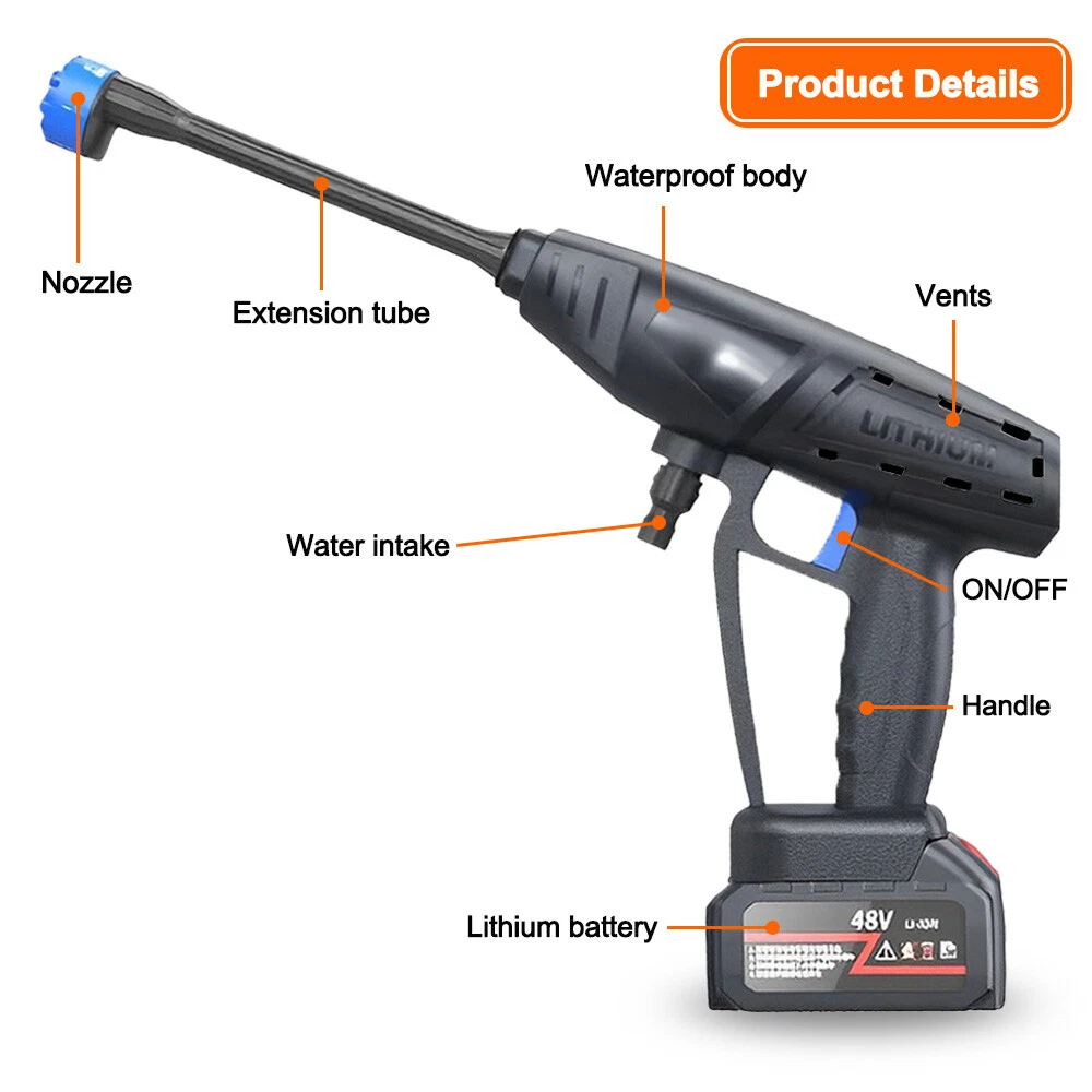 Store Categories Store Categories US Clothing US Shaper Tops US Shaper Belt US Shaper Pants/Leggings US Full Body Shaper US Health & Beauty US Posture Corrector US Compression Socks US Thigh Support Brace US Home & Garden US Swimming Pool Cleaning Tool US Garage Door Remote US Insect Killer Lamp US Electric Lunch Box US Stick Vacuum US Solar Charge Controller US Solar Panel US Essential Oil Diffuser US Gas Stove Range Knobs US String Trimmer Head US Grill Cover US High Pressure Washer US Selfie SticK US Reading Glasses US Studio Light Box US Business & Industrial US Metal Detector US Pool & Spa Salt Chlorinator Pool Brush & Net with Pole Floating Chlorine Dispenser Pool Vacuum Pool Fountains Pool Equipment Parts Pool Pump US Sauna Heater Steam Generator Ebay Motors LED Golf Cart Light Kit US Golf Cart Cover Other High Pressure 725PSI Power Car Washer Gun Wand Lance Spray Nozzle and Hose Kit Product Description Featu r e s: 【Cordless Pressure Was her】 The Cordless pressure washer has a cordless and lightweight design that makes it easy to carry and work anywhere. Equipped with a powerful motor, it has a click speed of 20000rpm, a flow rate of 360L/H. Strong power and convenient cleaning. 【High efficiency and durability】 12000mAh battery provides stable power for the normal operation of the car washing machine, and the battery has a long service life. Fast charger with Long battery life. Batteries are suitable for most power tools of the same model. 【W idely Application】 Portable Pressure washer can not only be used to clean all kinds of cars, bicycles, motorcycles, etc., but also can clean balconies, Windows, exterior walls, floors, fences, house walls, furniture and so on. 【Multifunctional Nozzles】 6 Water types adjustable, you can change and adjust different water discharge modes simply by rotating the nozzles.and use with foam buckets to meet your various cleaning tasks. Descrip tio n: Material : ABS, Copper Power Supply: 48 V, Lithium battery Chargin g Plug: US Battery Capacity: 2x 12000mAh Power: 300W Maximum Pressure: 50 BAR Maximum Flow Rate: 360 L/H Spraying Range: 8 meters Water Ho se Length: 5m/16.4ft Water Sour ce: Bucket / Faucet Self-priming Motor: Pure copper induction motor Scope of app lication: Car wa shing, watering flowers, watering vegetables, spraying, garden cleaning, etc. Packaging Inclu de s: 1 x Washer Gun 2 x 12000mAh Lithium Battery 1 x Charger (US) 1 x Water Hose (16.4ft) 1 x 6-in-1 Nozzle 1 x Quick Connector 1 x Lance 1 x Filter 1 x Foam Pot 1 x Manual Attentio n : 1. Due to manual measurement, please allow an error of 1-3 centimeters. Please ensure that you do not mind before bidding. 2. Due to different monitors, the colors may vary. Please understand. 3. Don't point at humans. 4. Do not disassemble, open, or cut the battery pack. 5. Do not short-circuit the battery pack. Do not casually place the battery in a box or drawer to avoid short circuits between the battery and other metal objects. 6. Do not expose the battery to high temperatures or open flames. Avoid storing in direct sunlight. 7. Do not remove the battery from its original packaging before use. 8. Do not use mechanical impact on the battery. Payment Policy Shipping Policy Feedback Payment Policy 1 . We accept Credit or debit card, Apple Pay, Google Pay, and PayPal. 2 . Payment should be completed within 2 (Two) days of auction closing. Or unpaid dispute will be filed for closing auction. 3 . Sales Tax of 9% will be applied for orders shipped within the state of California 4 . We will leave a positive feedback immediately after payment is received. We appreciate a positive feedback as much as you do. If for some reason there is any issue with the purchase, please contact us prior to leaving feedback, and we will be glad to work with you to have it resolved. Shipping Policy 1 . We Ship to United States ONLY. 2 . Ship from two warehouses and only to eBay ADDRESS. Package handling only takes 1 business day at our warehouse, so please make sure entering correct payment and shipping information before checking out. Once your payment is completed, pls leave ebay note if the changes are needed before we send the product. 3 . Truck company: 3-8 business days. | USPS: 2-6 business days. | UPS/FEDEX: 3-5 business days. 4 . Local pick up is available. Feedback 1 . Any problem after receiving our goods, please contact us before leaving Neutral/Negative feedback. We promise to help you solve it asap, and make you feel satisfied absolutely. 2 . Please DO NOT leave negative feedback without asking for help. Please do not leave negative or neutral feedback if you haven't received item in 30 days, because we have mentioned the shipping time repeatedly. Copyright © 2021 Dianxiaomi