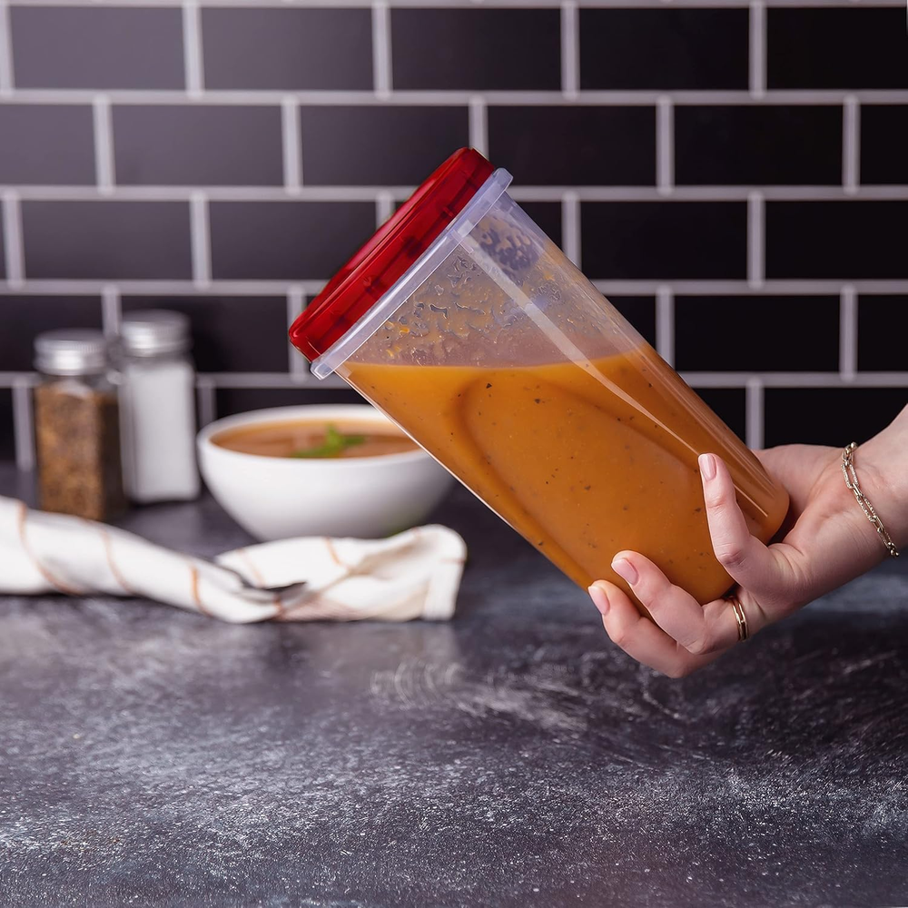 These deli containers are a game-changer for food storage! The 48-ounce size is perfect for meal prep, leftovers, or freezing soups. The clear bottom makes it easy to see contents, while the red twist-lock lids seal tightly—no leaks! They’re stackable, microwave-safe, and super durable. Love that they’re reusable and come in a pack of 4. Great value for the quality!