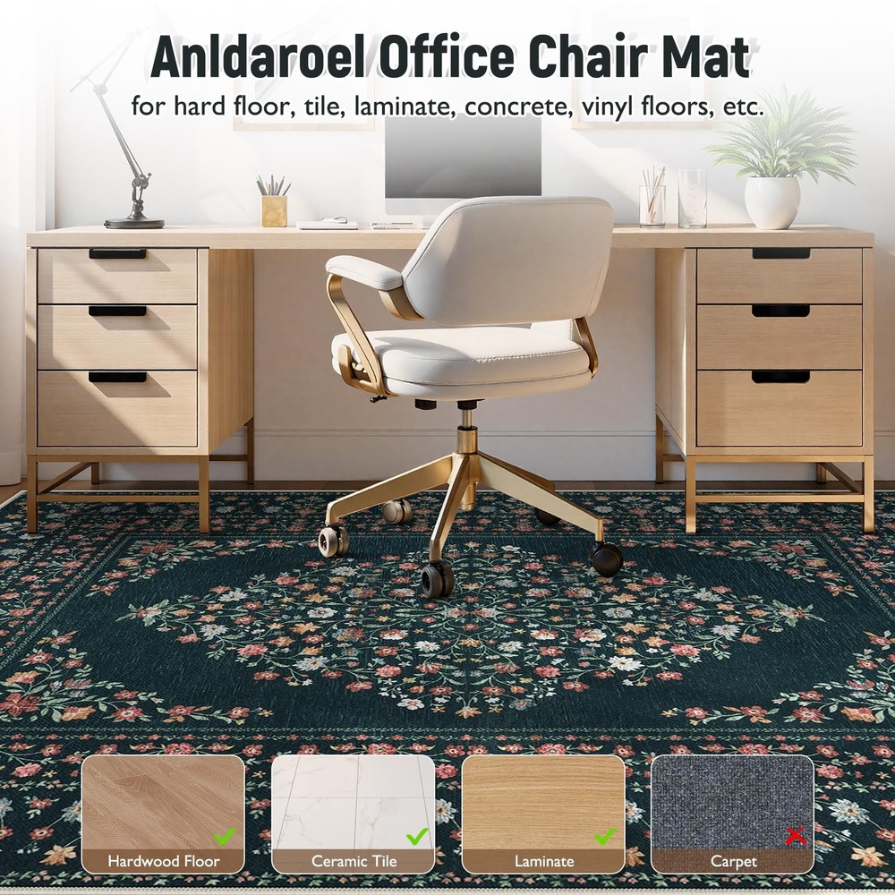 This mat is a game-changer for my home office! It glides smoothly, protects my hardwood floors perfectly, and the pretty floral design is a lovely bonus. So sturdy and worth every penny.