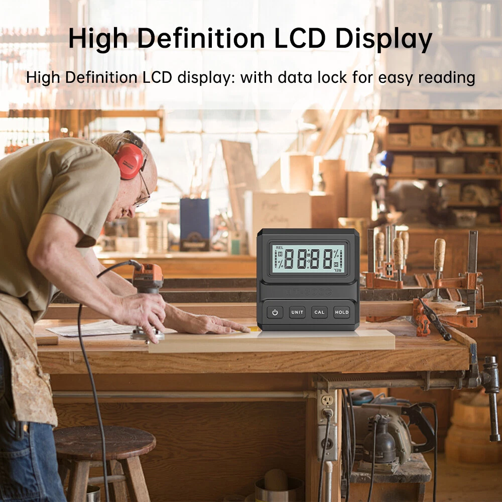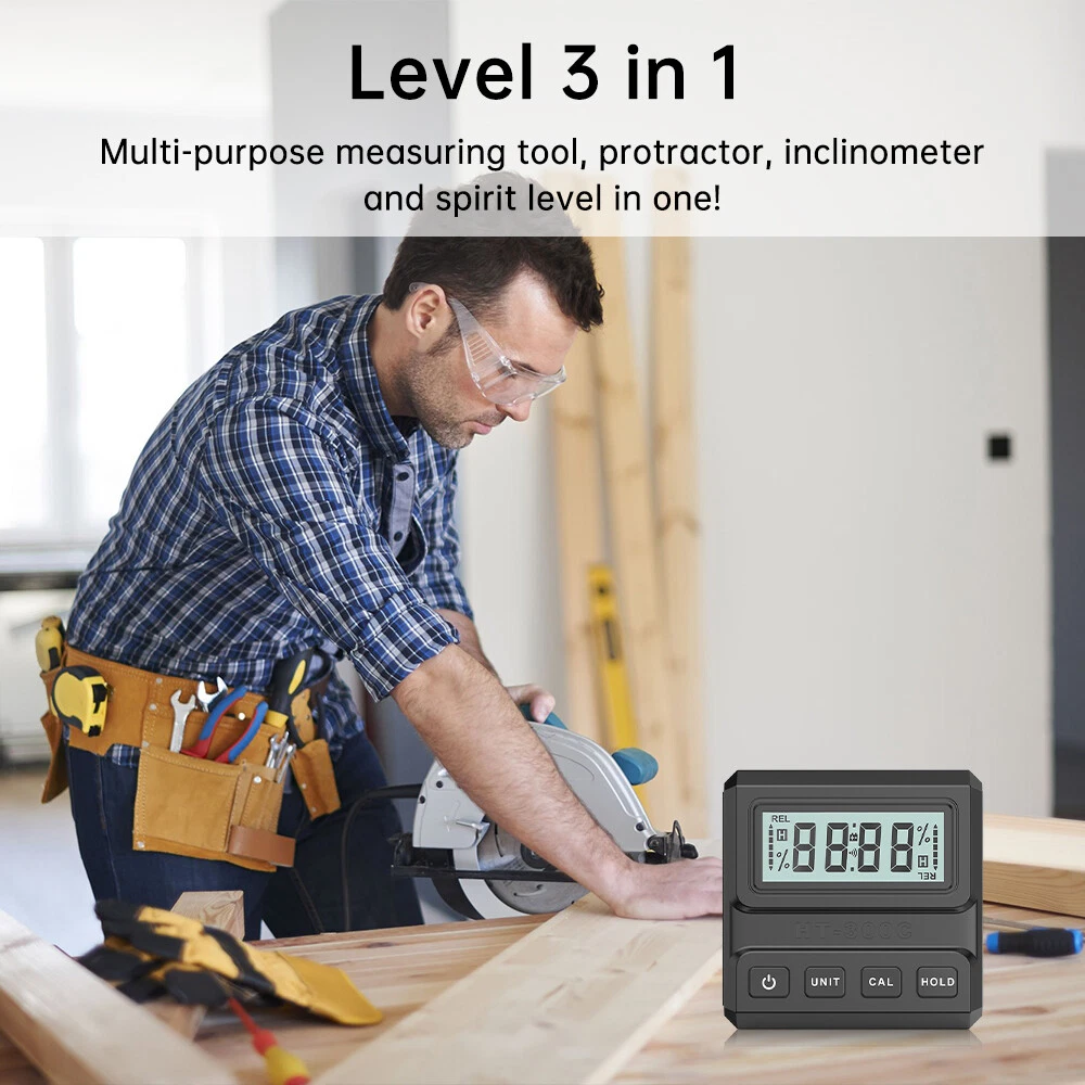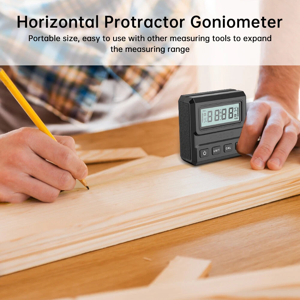 Visit store Items for sale About us Product Details Features: 1. Magnetic adsorption on the measuring surface, can be attached to the measured workpiece 2. Angle and slope conversion and relative measurement with absolute measurement conversion 3. High-definition LCD display: with data lock, easy to read 4. Portable size, easy to use with other measuring tools to expand the measuring range 5.Multi-purpose measuring tool, protractor, inclinometer and leveling ruler three in one Parameters: Material: ABS Measuring range: 4*90° Display resolution: 0.05°0.05°(<100°), 0.1°(100°~180°) Accuracy: ±0.1° Repeatability: 0.1° Operating temperature: 0℃~40℃ Battery: 2 x 7 AAA dry batteries (product does not come with batteries) Application Scenario: 1. Wood processing: precision cutting of wood corners 2. Automotive repair industry: precision control of tire assembly angle 3. Machining: precise positioning of the working angle of machine tools, the rotation angle of the big arm Set includes: Leveling meter *1 Instruction manual *1 Payment Method Shipping Policy Feedback Payment Method Payment must be received in 5 business days of auction closing. Please leave note for your special request (e.g. Colors or Size) when you pay the order. Any special request cannot be accepted after 24 hours of payment, because most of orders will be processed instantly and same day dispatched. Shipping Policy 1. We only ship to the confirmed address provided by eBay. please make sure your ebay address is 100% matches the address you would like us to ship to. If not, please let us know before we sent you the package, or we will not be responsible for any loss. hope you could understand. 2. Orders will be processed instantly and dispatched within 1-3 business days except hoilday, so we do NOT accept any email/message note after you place orders. 3. All package need to wait 30 days,Please take care it.Less than 30 days,we can't take a refund. Feedback We maintain high standards of excellence and strive for 100% customer satisfaction! Feedback is very important to us. We request that you keep in touch with us immediately BEFORE you give us neutral or negative feedback, so that we can satisfactorily address your concerns.