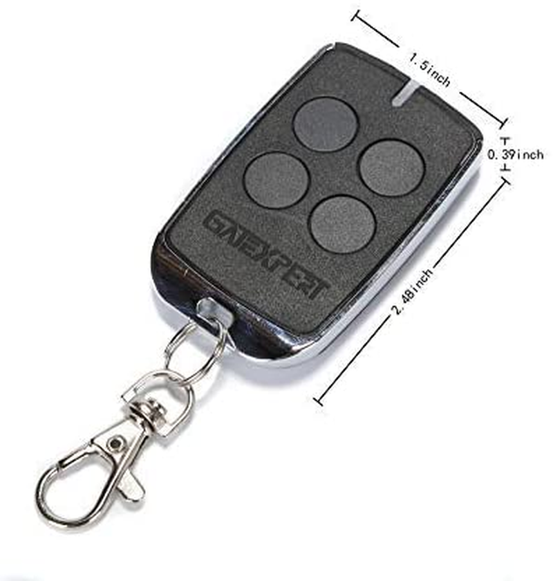 MATERIAL -- Abs plastic shell & metal edging. NOTE--Our remote control is only compatible with the GATEXPERT 433.92MHz gate openers!!!Don't buy it if you are with other brand or other frequency gate openers. ADDING& DELETE REMOTE CONTROLS -- At most 25 remote controls can be learned. SINGLE BUTTON MODE -- The four buttons have the same function, one same button on the remote control to circularly control the main engine OPEN/STOP/CLOSE/STOP. EASY TO PROGRAM AND CARRY -- Small size can be carried around and with only buttons controlling the action of the gate. SERVICE -- Full compliance with Amazon's rules, if you have any questions in the product, we will always be here and help you. Product Description Specification Model RC4B11 Working frequency 433.92Mhz Battery CR2032 Remote range ≥100ft Note One remote control can control four gate openers, but the control boards should be same. COMPATIBILITY--Our remote control is compatible with the gate opener of GATEXPERT,G.T.MASTER, and we can't promise it can also match other gate opener. Feature SINGLE BUTTON MODE -- The four buttons have the same function, one same button on the remote control to circularly control the main engine OPEN/STOP/CLOSE/STOP. The remote contol has four buttons, if button 1 is damaged or insensitive, you can delete the remote controls first, then use button 2, button 3 or button 4 to relearn and control the gate opener. Package Includes Without user manual, you can find the operation method in your gate opener user manual.