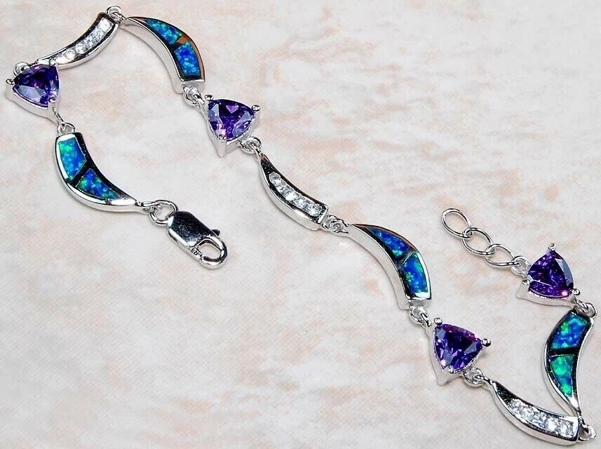 Menu Store FAQ Payment Shipping returns Feedback CONTACT US SHOP BY RING SIZE 4 4.5 5 5.5 6 6.5 7 7.5 8 8.5 9 9.5 10 10.5 11 11.5 All STORE CATEGORIES 99 cent daily deals Auctions Ending Soon New Arrivals Buy it now Rings Pendants Earrings Necklace Bangles & Bracelets POPULAR STONES Aquamarine Ruby Sapphire Pink Sapphire Emerald Topaz Opal Pearl Amethyst Blue Topaz Kunzite Herkimer Diamond Hand Carved Fossils Citrine Garnet Alexandrite Natural Rough Two-Tone Sterling Silver Store Newsletter Add old-english-silver to your Favorites and receive our e-mail newsletters about new items and special promotions. General Interest Sign Up Gemstone : AMETHYST & AUSTRALIAN OPAL INLAY, WHITE TOPAZ Metal : Genuine 925 Solid Sterling Silver Total Carat Wt : 4 Total Gram Wt : 8 Dimension : 6" Long Shipping & Handling