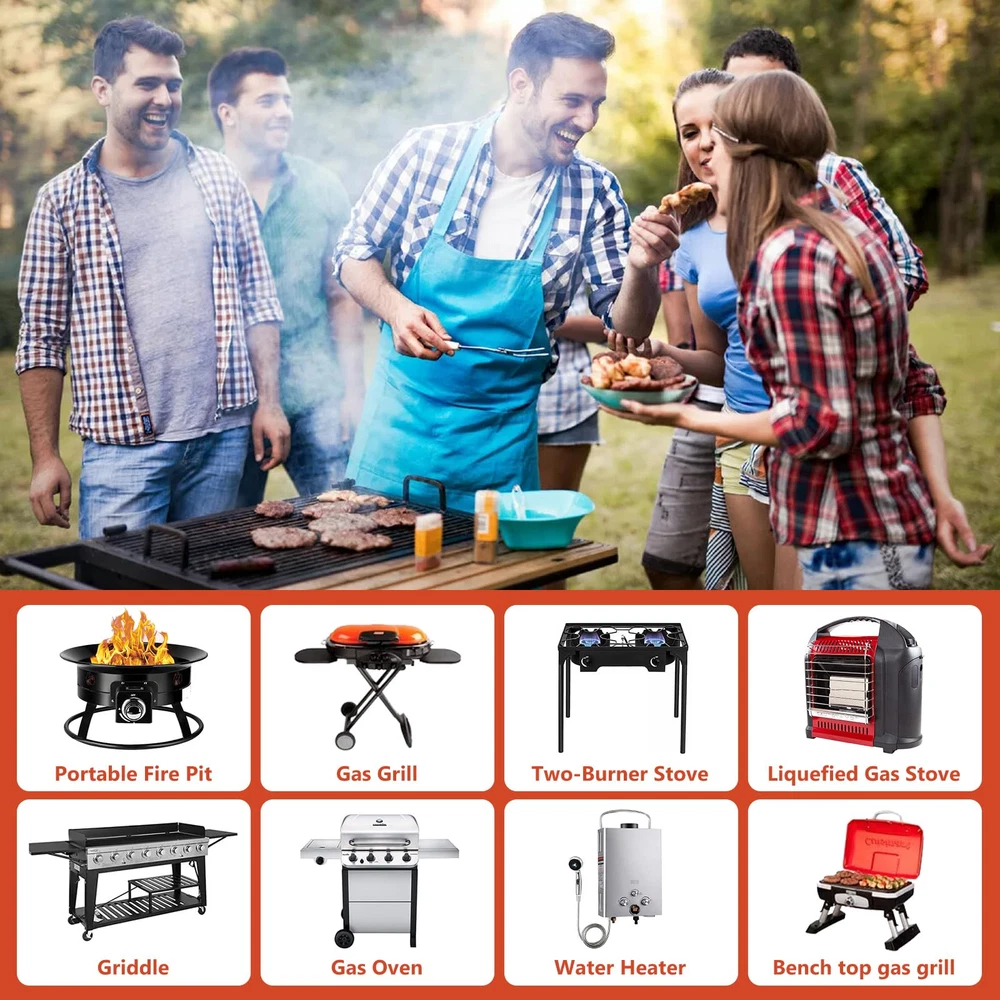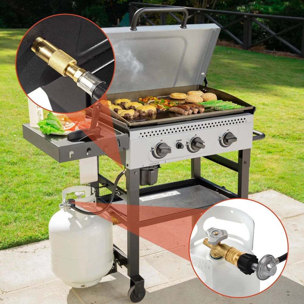 【Easy Installation】 Suitable for Type 1 (QCC 1) propane bulk tank and 3/8" male flare fitting. No tools required, equipped with a hand wheel for manual tightening. (Buy as needed:Fits all Balckstone Except 17/22" Table Top Griddle and 1LB propane tank) 【Durable & Sturdy】3-layer weather-resistant hose provide a secure and sealed connection for your propane appliances. 【Multi-Purpose】 Fits for Weber, Char-broil, Nexgrill, Monument, Dyna-Glo, Brinkmann grill, Blackstone table grill as well as outdoor propane grills( except 17/22"and 1LB propane tank), camp stoves, fire pits, water heaters gas grill, LP generator, lantern, two burner camping stove, side burner and other propane appliance. (Buy as needed:Fits all Balckstone Except 17/22"and 1LB propane tank) 【Safety & Corrosion Resistant】 CSA certificated - Pass CSA certificate for your safety. Provides secure, air-tight connection between grill or fire pit and tank, no gas leaks, ensures safety while using grill, no issues with regulator or gas, air flow is kept stable and at appropriate levels. 【Tips】 To avoid leakage issues, please check the propane tank, inspect the inside of the gasket for cracks or misshaping. And make sure the regulator enters the cylinder valve in a straight line. It is normal if you hear noise in the regulator, it is the resonance of the gas in the regulator.