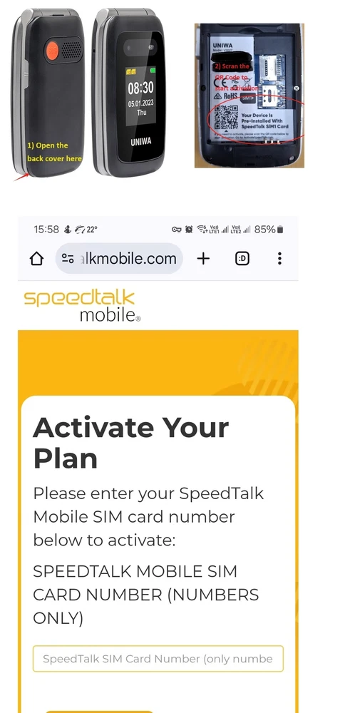 Model: V202T Contract: Without Contract MPN: V202T Features: SOS Button Lock Status: Factory Unlocked UPC: 9331818790656 Model Number: V202T Memory Card Type: MicroSD Country/Region of Manufacture: China RAM: 48 MB Storage Capacity: 128 MB Brand: UNIWA Screen Size: 2.4 in Color: Black Network: Speed Talk Mobile, Unlocked Connectivity: 2G, 3G, 4G, LTE SIM Card Slot: Dual SIM (SIM + SIM) gtin13: 9331818790656 Chipset Model: Unisoc T107 Cat.1 Operating System: RTOS Processor: Unisoc T107 Cat.1 Camera Resolution: 0.3 MP Style: Flip