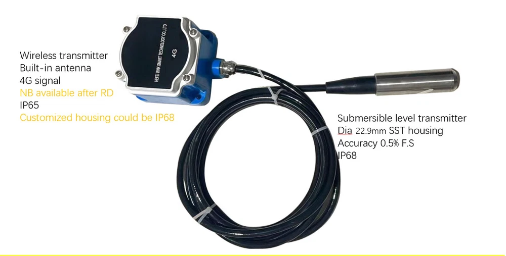 WNK 4G NB IOT Wireless Pressure Sensor Hydraulic Pressure Sensor Transducer Product Description 1.MP80 is a 4G wireless sensor developed by Wanke Intelligence; The collected physical signals, such as pressure, temperature and liquid level, are converted into digital signals through the acquisition unit sensor and digital processing circuit, and then uploaded to the telecom Internet of Things platform by the NB module. 2. The range can be customized according to needs; The accuracy level can reach 0.5%. 3. Sensitive response, real-time measurement data, no damping lag. 4. Widely used in fire, aviation, medical, industrial control, environmental protection and many other fields. This product can be available for NB/Lora, please contact us if you need it. Power Supply 3.6V DC, 19Ah battery Accuracy 0.5%FS Pressure Range -100Kpa~70Mpa;Can be customized according to need Liquid Level Range 0~200m, Can be customized according to need Temperature Range PT100 -200~850℃ Operating Temperature -40~80℃ Measurement Signal Pressure Signal (or PT100 temperature signal) Ingress Protection IP68 Product size Product Show