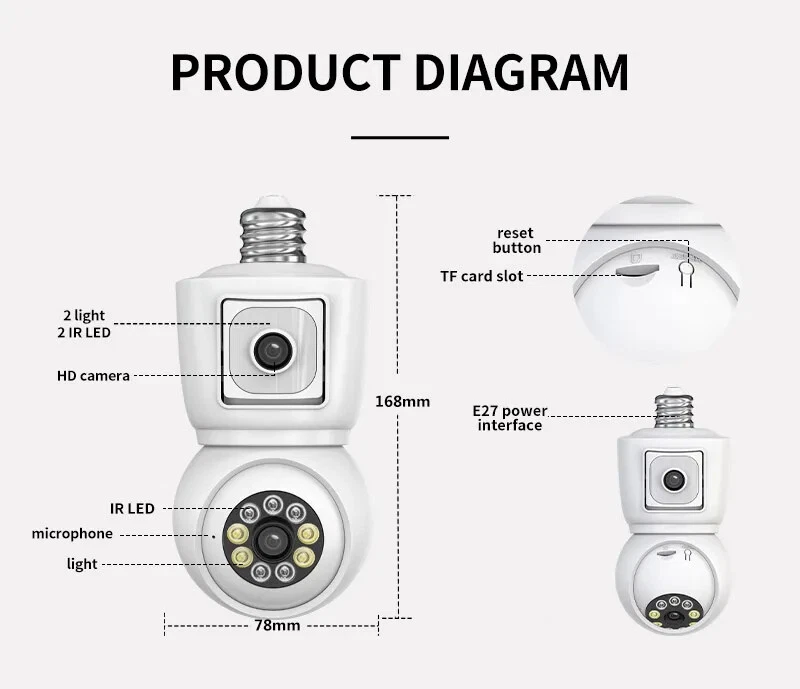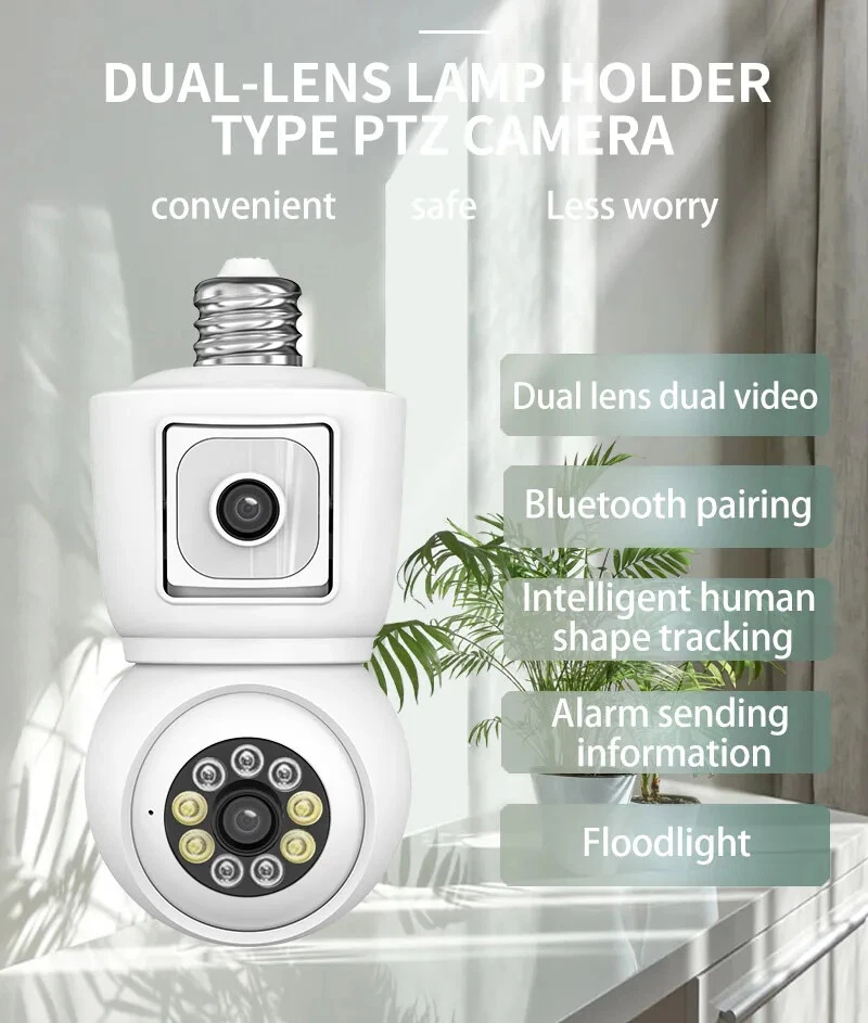 4K 8MP E27 Bulb WiFi Camera Dual Lens Dual Screen Auto Tracking Two Way Audio