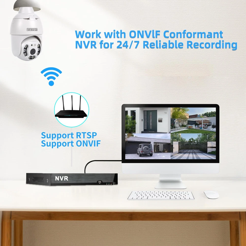 Please note that this camera is larger than a regular light bulb. Its height is 8.3 inches and its diameter is 3.9 inches. Please confirm that the size of this camera is suitable for the size of your light fixture before purchasing. [4K 8MP Ultra HD Video Resolution] : This surveillance camera produces 4K Ultra HD Video Resolution, it is built-in 4pcs IR LEDs+4pcs white LEDs with 31ft w/b and 65.6ft FULL-COLOR night vision, providing you with a super clear viewing experience. All captured by this camera will be presented to you via fluent and stunning videos. With 355˚ pan, 110˚ tilt, 4x digital zoom, you can remotely control the pan-tilt-zoom feature via the App anytime anywhere. [Wireless & 2.4Ghz and 5Ghz Wifi]: Compatible with E26 / E27 light socket makes it quite easy to install this security camera, screw this camera into a light socket(110V~240V), NO DRILL, NO WIRING, NO POWER CABLE, NO HARD SETUP, then open the free app to set up the camera within minutes. Perfect for Outdoor and indoor use! [ONVlF Conformant]: This IP camera is compatible with most other 3rd party software & Most NVR. Set a Password on the O-KAM App to Enable Onvif, RTSP address: rtsp://[username]:[password]@[ip]:10554, the username is admin. [Motion Detection & Auto Tracking & Real-time Alerts]: this PTZ dome surveillance camera adopts a highly sensitive motion sensor. If some people invade your home, this security camera will track the motion and record every single move, together with a VOICE ALERT if needed [Multiple View & Double Storage With Privacy Protection]: You could share your camera with friends and family to view simultaneously on your phone. Save videos to SD card ( Not included ) or cloud storage (3 days free trial every month ). With high-level encryption, your videos can be only viewed by you even if this wifi camera was stolen or broken, no one can access your videos