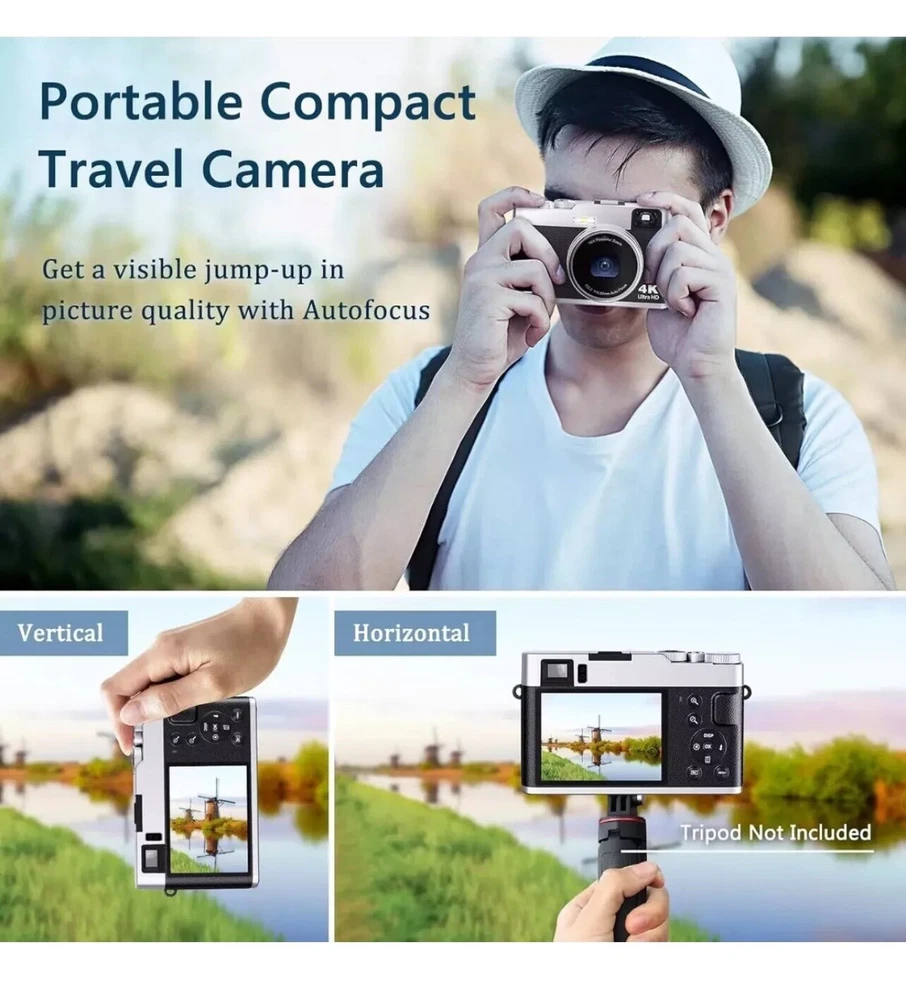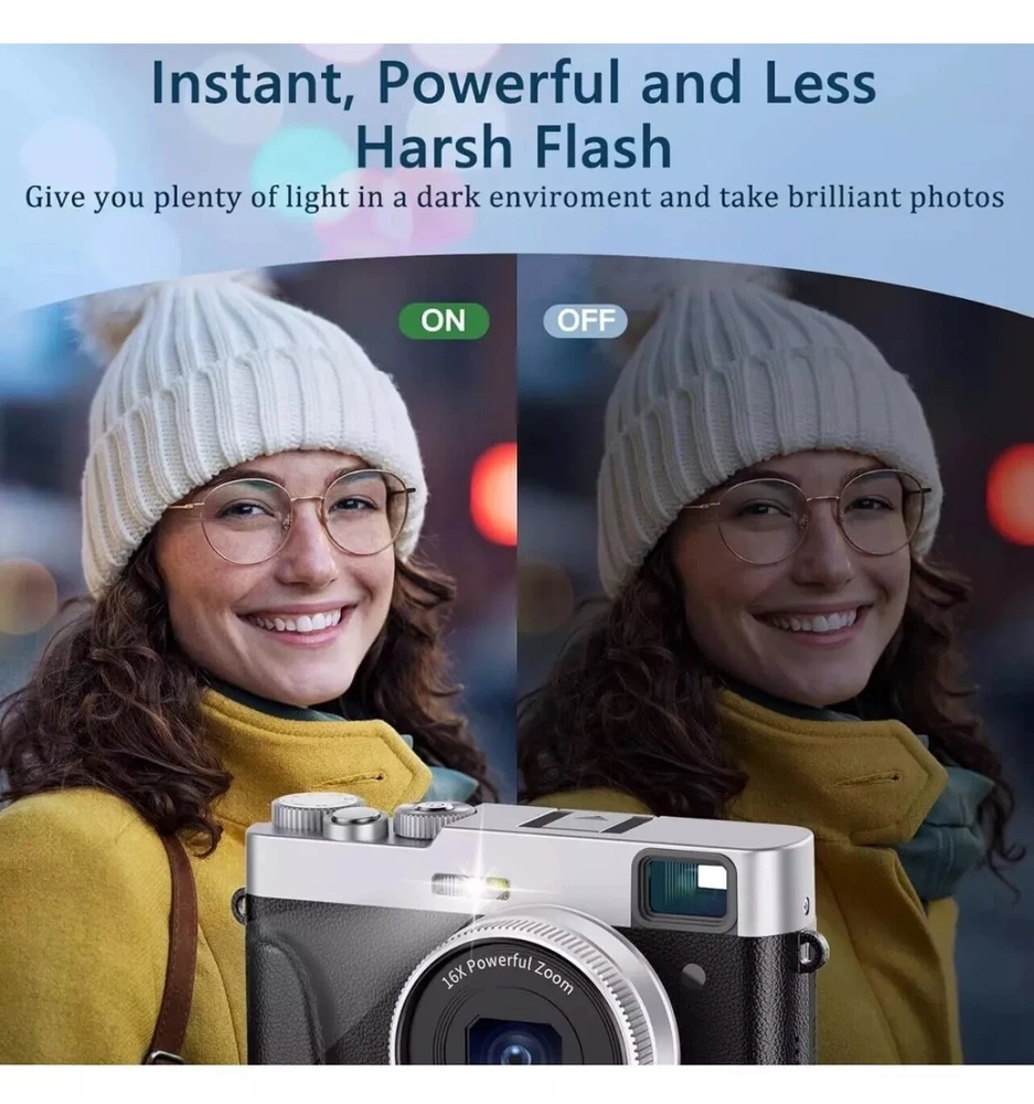 4K Digital Camera with Viewfinder & Flash, Autofocus 48MP Cameras for Photography Vlogging Compact Travel Camera for Adults Teens with Classic Dial, Time Lapse, Selfie, 16X Zoom, 32GB SD Card