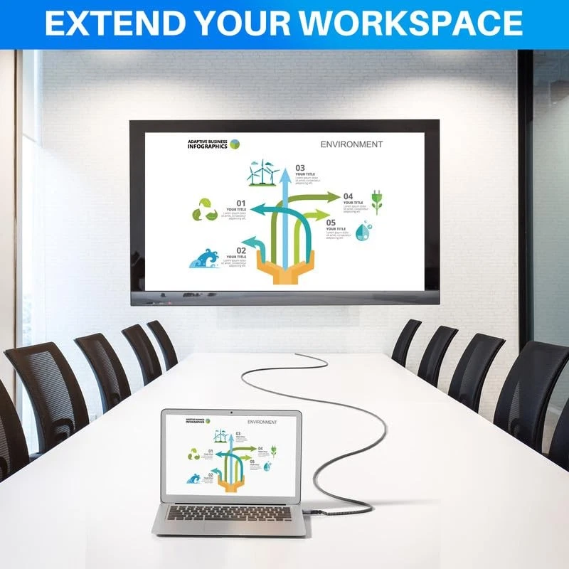 DisplayPort to HDMI Cable You can freely extend to the place where you need to use through this DisplayPort to HDMI Cable. Provide Ultra HD image quality and excellent sound quality, giving you the best experience. Product Features pure copper conductor and multi-layer shielding Gold-plated connector and shinning edge premium aluminum shell Reinforced SR, 15000 bending tests passed Nylon braided material 4K (3840x2160) @60Hz DisplayPort to HDMI cable. Transfer high-quality audio and video signals from your computer to projector, HDTV or monitor. It is backward compatible with 4K@30Hz, 2K@120Hz, 1080P and lower. Featuring the high quality tinned copper wires reduce oxidation and increases wire life. Multi-layer shielding are adopted to transmit high-quality video and stable signal.This Cable is made of Gold-plated connector, shinning edge premium aluminum shell, reinforced SR and nylon braided material which makes it has excellent texture. With a length of 4 feet to 50 feet, you can extend the use in different scenes. Ideal for connecting your laptop or PC with DisplayPort (DP, DP++, DisplayPort++) to your HDMI devices. Please note that this DisplayPort to HDMI is a Uni-directional cable. It only converts the DisplayPort source signal to HDMI. The complimentary 90 degree HDMI adapters in different directions can be better applicable to various scenes and the attached cable tie can better manage the cable. products offer a one-year warranty. If you have any questions, you can contact us at any time, and our professional customer service will answer your questions. Package: 20ft DP to HDMI Cable, 2 HDMI adapter and 5 pcs cable ties.