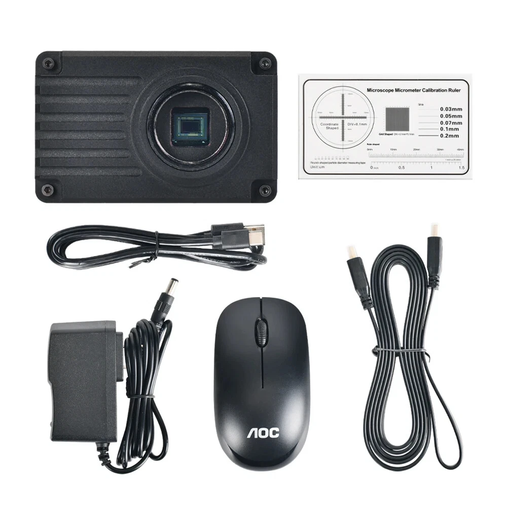 4K FHD Microscope Camera 8MP HDMI USB Type-C LAN Measuring Industrial Digital Electronic Microscope for Phone Repair Soldering Noting: 1:PC Support : Windows XP/7/8/10/11 system 2:For USB output, the white balance, exposure and color adjustment are automatic, they can't be adjusted. For HDMI output, the functions can only be adjusted while connecting with monitor, if you connect the camera with computer, the functions also can not be adjusted. 3:When using USB connection, please make sure there is no TF card in the camera, TF card storage is only for HDMI output. USB output will be storage in PC. 4:when connect the camera with computer, just plug the USB line is OK ( no need to use the power supply) Camera Features: Sensor: 1/2.8" Sony IMX415 CMOS 8MP Sensor Size: 1/2.8 inch Pixel Size: 1.45μm x 1.45μm HDMI Resolution: 1920x1080P @60FPS USB Resolution: 1920 x 1080 @30FPS LAN Resolution: 1920 x 1080 @30FPS Recording Resolution: 3840 x 2160 @30FPS Output Interface: HDMI, Type-C, USB, LAN Lens Type: C/CS Mount Network Video: Support RTSP Streaming, RJ45 Interface PC Support: Windows / Mac / Linux , PC Software with Measuring Function Image Measurement: Support HAYEAR Measurement PC Software Language: Chinese, English, Japanese, French, German, Russian, Italian, Korean, Turkish Measuring Feature: Marking: Point coordinates, crosshairs, coordinate systems, text annotations Length Measurement: Line length, polygonal line length, curve length, parallel line distance, point to line distance Centers Distance: Radius defining circle, two point defining circle, three point defining circle, concentric circles Geometric Measurement: Line Length, radius defining circle, two point defining circle, three point defining circle, concentric circles Geometric area: Polygon, square Other Function: Vertical rotation, horizontal mirroring, Monochrome images, frozen images, image contrast Wide range of uses: Scientific research, education (teaching, demonstration and academic exchanges) Digital laboratory, medical research Industrial visual (PCB examination, IC quality control) Medical treatment (pathological observation) Food (microbial colony observation and counting) Aerospace Package including: 1 x HY-3699 1 x Power supply 1 x Type-C cable 1 x HDMI cable 1 x Software (Online download) 1 x Mouse 1 x Calibration Ruler Measurement Software for MacOS Measurement Software for Windows:
