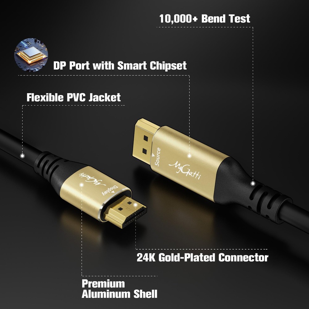 【4K Ultra HD & 60Hz Lossless Transmission】Supports 4K@60Hz ultra-clear resolution, perfectly presenting the details of HDR images. Through the one-way compatibility technology of DisplayPort to HDMI , it ensures zero-delay transmission. Compatible with high-definition devices such as Xbox/PS5/Blu-ray players, it creates an immersive home theater experience. 【Signal Stable Transmission】Utilizing Uni-Directional transmission technology, it supports stable conversion from DisplayPort output port to HDMI input port. With an internal signal amplifier, it ensures no attenuation and perfectly matches Windows/MacOS/Linux systems. 【Plug and Play】The DisplayPort to HDMI cable is fully plug and play, without the need for drivers, power, or wasting time. It supports high-definition audio and video streaming directly from a computer to an HDMI monitor, suitable for video streaming or gaming. 【Multi-brand Fully Compatible Solution】The intelligent identification chip supports plug-and-play, perfectly adapting to Dell/Alienware, Lenovo Legion, ASUS ROG, Acer Predator and other brand devices. At the same time, it is compatible with NVIDIA GeForce/AMD Radeon graphics cards, and seamlessly connects to monitors, TVs and projectors. 【What You Will Receive】DisplayPort to HDMI Cable, a 12-month warranty and friendly customer service. We aim to provide our customers with high-quality products and services. If you have any questions, please let us know and we will solve the problems for you as soon as possible.