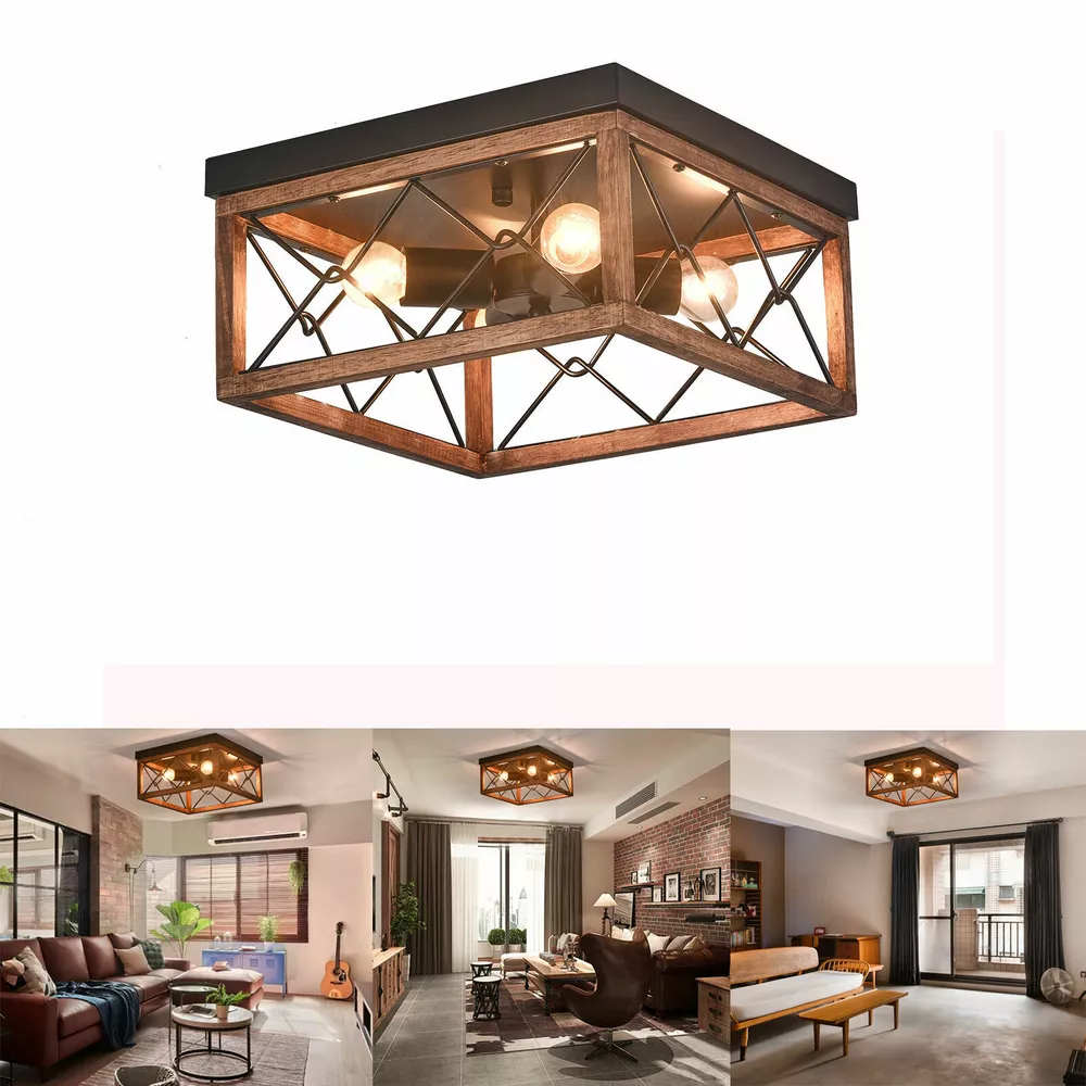 Bulb Type: LED/CFL/Incandesce/Edison Bulb/Halogen Wattage Per Bulb: Max 40W Bulb Base: E26bulb socket Number of Light Source: 1 PACKAGE INCLUDED 1 x Unassembed Pendant Light Bulbs Not Included Tips: -Please make sure the light is securely supported and is disconnected from power when installing. 【Safe & No Risk Purchase】 Any unclear during installation, please feel free to contact us. 4-Light Farmhouse Flush Mount Light Fixture Rustic Industrial Ceiling Light NEW 4-Light Farmhouse Flush Mount Light Fixture Rustic Industrial Ceiling Light About this item 【 Iron & Wood Combination 】 This 4 lights ceiling lighting fixture features a big black iron canopy and wooden frame. 【 Suit for Any of Your Room 】 This farmhouse light fixture fresh and simplistic design will be a nice decoration for your house. Perfect for general indoor areas which including dining room, living room, kitchen, corridor, cafe, basement, bar, club, restaurant, office, library, bedroom and reading room. You can choose where it is installed according to your actual needs. Voltage: 110-120V (standard line voltage) 【4 x Bulb Sockets 】 The wooden light fixtures feature 4 heat-resistant standard E26 bulb sockets (Max 40W, BULB NOT INCLUDED). Compatible bulbs: CFL, Halogen, Incandescent or LED. Please pay attention to use the bulb size that fits the fixture 【 Dimension & Installation 】Overall size (W*H): 12.6*6.2 inches. Hardwired needed. It includes all necessary accessories and instructions for quick and easy installation. Bulb Type: LED/CFL/Incandesce/Edison Bulb/Halogen Wattage Per Bulb: Max 40W Bulb Base: E26bulb socket Number of Light Source: 1 PACKAGE INCLUDED 1 x Unassembed Pendant Light Bulbs Not Included Tips: -Please make sure the light is securely supported and is disconnected from power when installing. 【Safe & No Risk Purchase】 Any unclear during installation, please feel free to contact us. Payment Delivery details Terms of sales About us Contact us Payment We accept ebay payment 。 Fees such as import duties, taxes are not included in the item price or shipping costs. These charges are the buyer's responsibility. Delivery details Shipping: 2-9 working days to: USA Terms of sales We maintain high standards of excellence and strive for hundred percent customer satisfaction. Feedback is very important to us. We hope that you contact us immediately before you give neutral or negative feedback, so that we can address your concerns. It is impossible to address issues if we do not know about them! About us Your satis faction is our ultimate goal. We work hard to earn your trust and future business. Our certified technicians have tested each item before shipping. The unit comes with 1 year limited warranty on all manufacturing defects. a) If you receive a defective item, you may return it or ask for a discount. Please contact us within 14 days after you receive the package. b) What you returned must be intact and in its original packaging as re? u. Customer is responsible for shipping costs of the returned item. c) We will cover the cost of shipping back t with the shipping rate indicated in the registration page. We will send you a new unit or refund the full payment you paid. Thank you. Contact us Business Hour Business Hour: Monday To Friday: 8:30 AM to 5:00 PM (Beijing China time) Due to time zones, our reply to your questions may not be immediately. But within above working time, we will reply your email within 24 hours. If it's non-workdays, please kindly be patient and wait till Monday. Please contact us with ebay message. Please feel free to contact us if you have any questions. Monday To Friday: 8:30 AM to 5:00 PM (Beijing China time) Due to time zones, our reply to your questions may not be immediately. But within above working time, we will reply your email within 24 hours. If it's non-workdays, please kindly be patient and wait till Monday. Please contact us with ebay message. Please feel free to contact us if you have any questions. On Nov 12, 2024 at 18:22:04 PST, seller added the following information: