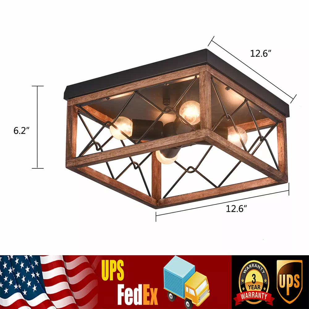 Bulb Type: LED/CFL/Incandesce/Edison Bulb/Halogen Wattage Per Bulb: Max 40W Bulb Base: E26bulb socket Number of Light Source: 1 PACKAGE INCLUDED 1 x Unassembed Pendant Light Bulbs Not Included Tips: -Please make sure the light is securely supported and is disconnected from power when installing. 【Safe & No Risk Purchase】 Any unclear during installation, please feel free to contact us. 4-Light Farmhouse Flush Mount Light Fixture Rustic Industrial Ceiling Light NEW Farmhouse Light Pendant Fixture Industrial Rustic Wood Retro Cage Kitchen Island About this item 【Iron & Wood Combination】 This 4 lights ceiling lighting fixture features a big black iron canopy and wooden frame. 【Suit for Any of Your Room】 This farmhouse light fixture fresh and simplistic design will be a nice decoration for your house. Perfect for general indoor areas which including dining room, living room, kitchen, corridor, cafe, basement, bar, club, restaurant, office, library, bedroom and reading room. You can choose where it is installed according to your actual needs. Voltage: 110-120V (standard line voltage) 【4 x Bulb Sockets】 The wooden light fixtures feature 4 heat-resistant standard E26 bulb sockets (Max 40W, BULB NOT INCLUDED). Compatible bulbs: CFL, Halogen, Incandescent or LED. Please pay attention to use the bulb size that fits the fixture 【Dimension & Installation】Overall size (W*H): 12.6*6.2 inches. Hardwired needed. It includes all necessary accessories and instructions for quick and easy installation. Bulb Type: LED/CFL/Incandesce/Edison Bulb/Halogen Wattage Per Bulb: Max 40W Bulb Base: E26bulb socket Number of Light Source: 1 PACKAGE INCLUDED 1 x Unassembed Pendant Light Bulbs Not Included Tips: -Please make sure the light is securely supported and is disconnected from power when installing. 【Safe & No Risk Purchase】 Any unclear during installation, please feel free to contact us. Payment Delivery details Terms of sales About us Contact us Payment We accept ebay payment 。 Fees such as import duties, taxes are not included in the item price or shipping costs. These charges are the buyer's responsibility. Delivery details Shipping: 2-9 working days to: USA Terms of sales We maintain high standards of excellence and strive for hundred percent customer satisfaction. Feedback is very important to us. We hope that you contact us immediately before you give neutral or negative feedback, so that we can address your concerns. It is impossible to address issues if we do not know about them! About us Your satis faction is our ultimate goal. We work hard to earn your trust and future business. Our certified technicians have tested each item before shipping. The unit comes with 1 year limited warranty on all manufacturing defects. a) If you receive a defective item, you may return it or ask for a discount. Please contact us within 14 days after you receive the package. b) What you returned must be intact and in its original packaging as re? u. Customer is responsible for shipping costs of the returned item. c) We will cover the cost of shipping back t with the shipping rate indicated in the registration page. We will send you a new unit or refund the full payment you paid. Thank you. Contact us Business Hour Business Hour: Monday To Friday: 8:30 AM to 5:00 PM (Beijing China time) Due to time zones, our reply to your questions may not be immediately. But within above working time, we will reply your email within 24 hours. If it's non-workdays, please kindly be patient and wait till Monday. Please contact us with ebay message. Please feel free to contact us if you have any questions. Monday To Friday: 8:30 AM to 5:00 PM (Beijing China time) Due to time zones, our reply to your questions may not be immediately. But within above working time, we will reply your email within 24 hours. If it's non-workdays, please kindly be patient and wait till Monday. Please contact us with ebay message. Please feel free to contact us if you have any questions. Features Durable * Feature * Creative Design,Durable Material,Beautiful Appearance Note: Do not send to Brazil Feature 1 *Stable characteristic*, *high reliability* shipping notice Can not ship to Puerto Rico,Alaska/Hawaii Item location: CA /NJ /Austell Transportation does not include: canarias shipping notice: Can not ship to Puerto Rico,Alaska/Hawaii MPN Does Not Apply Room Dining Room, Bedroom, Bar, Attic, Entryway, Home Office/Study, Kitchen, Living Room, Hallway Type Chandelier Material Wood, Iron Style Farmhouse Is Bulbs Included No Power Source Corded Voltage 110-120V Lighting Technology LED/CFL/Incandesce/Edison Bulb/Halogen Installation Area Indoor Color Black Power Consumption Max 40W Finish Wood Effect Department Adults Assembly Required Yes Labels & Certifications Energy Efficient Amperage Does not apply IP Rating Does not apply Lumens Does not apply LED String/Strip Type Does not apply UPC Does not apply Energy Star 10 Stars Shade Shape Square Theme Celebrity Occasion Best Wishes Era 21st Century (2000-now) Item Diameter 12.6'' Number of Lights 4 Light Direction Indirect Overall size 12.6*6.2 in Bulb Base E26bulb socket Number of Light Source 1 Compatible bulbs CFL, Halogen, Incandescent or LED Brand Unbranded Number of Settings 1 Control Style Remote Control Country/Region of Manufacture Unknown
