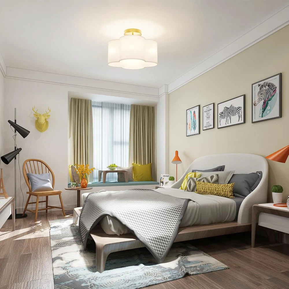 Store New Arrivals Add to Favorite View Feedback Contact 4-Light Semi Flush Mount Ceiling Light Fixture,Modern Close to Ceiling Lamps with White Fabric Shade,Brass Ceiling Light for Living Room,Bedroom,Dining Room,Kitchen,Hallway(Exclude Bulb) Description Item model number 115 Light Source Type Compact Fluorescent Light (CFL)/LED/or other Style Modern Power Source Corded Electric Number of Light Sources 4 Control Method App Batteries Included? No Lighting Method Adjustable Controller Type Push Button Unit Count 1.0 Count Room Type ★Bedroom- Bathroom- Living Room ★Dining Room -Kitchen Island ★Porch Entryway Foyer Assembly Required Yes Product Dimensions 4.55"L x 4.37"W x 3.5"H Material Metal,Fabric Installation Type Flush Mount Model Name L-HC115 Fixture Type Non Removable Batteries Required? No Item Weight 3.04 pounds Light fixture form Ceiling Special Features Dimmable Special Feature Dimmable Shade Color White Mounting Type Ceiling Mount Color Gold Wattage 240 watts Voltage 120 Volts Shade Material Metal [Unique Design]:This semi flush mount ceiling light fixture is made with top-grade metal and gold finishes,ensuring durability and resistance to rust.It is matched with fabric shade eye protection lampshade with soft light to create a comfortable and warm atmosphere for your room,and will add a modern chic element to your spaces with unique four-leaf clover lampshade design. [Easy Installation]:The bathroom wall sconce lighting is easy to install and includes all the hardware needed for installation.Just connect the wires,install the bulb,and the installation can be completed in a few minutes. [Bulb Type]:Support for any LED/CFL/or other less than 60W bulbs with E26 Base for this wall sconces(★Bulbs NOT Included),you can update the atmosphere of your home at any time simply by changing the bulbs of different color temperatures.Could be fully dimmable when used with dimmable bulbs and compatible dimmer switch. [Application]:The fabric shade complements all decor styles while providing a warm even light.Ideal for a kitchen,laundry,hallway,foyer,dining room,living room,bedroom,entryway,corner,kid‘s room,stairway,barn,basement,and more.The gold flush mount ceiling light will entice your senses as well as illuminate your home. [Sincere Service]:If you have any questions,please feel ease to tell us,our customer service would solve your problem within 24 hours.Please rest assured to buy. Product Description ABOUT US We offer the best prices around on high quality products. Our E-store includes media such as books, movies, music and games while offering electronics, toys, sporting apparel, clothing, tools, general home, garden items and more. SHIPPING We are always working hard to ensure your package arrives as soon as possible. Please understand that some factors like weather, high postal traffic, and the performance of shipping companies are outside of our control. We offer free shipping to the lower 48 states and ship within 2 business days of payment, usually sooner. We do not accept P.O. Boxes. Please provide a physical address. For shipping outside of the continental USA, we only use eBay's Global Shipping Program.The item is shipped to KY and then sent to the rest of the world. International customers are responsible for all duties and taxes. Continue to check out in order to calculate costs for shipping the item to your country. Messages regarding eBay's Global Shipping Program MUST be directed at eBay EXCLUSIVELY. RETURNS We offer a 30-Day Return Policy on items which you are not completely satisfied with. You have the option for a full-refund or an exchange of the item. No returns are available on items shipped outside of the USA. PAYMENT We accept PayPal. CONTACT US This page content is yet to come Please ad us to your favorite seller and visit again later Thank You CUSTOMER SATISFACTION We try our very best to make sure every customer is completely satisfied. If there's a problem, message us! We're happy to help. WE ACCEPT Copyright © 2021 AutoDS. | All Rights Reserved