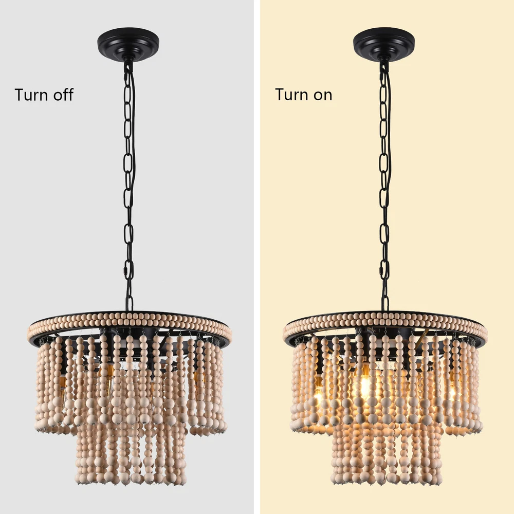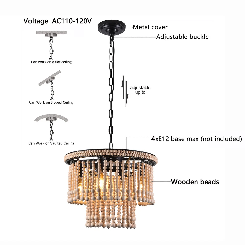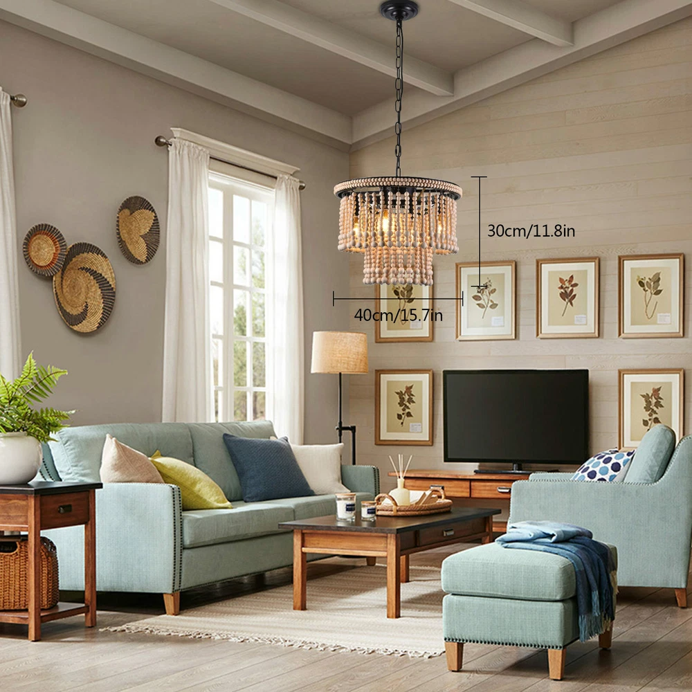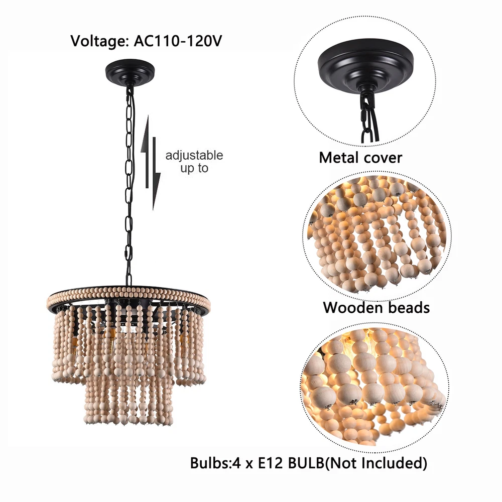 🧡🧡🧡 Welcome to Automaimaimai 🧡🧡🧡 About this item Material Wood, Metal Gold chandelier dimensions: 15.7" Diameter x 11.8" Height Canopy: 4.7" Diameter x 1" Height Adjustable chain: 39.3" Length Bulbs: E12*4 Voltage:110-120V Style:Antique, Classic, Farmhouse, Rustic, Boho Color:Red Bronze Material:Wood, Metal Finish Types Oil Rubbed Number of Lights:4 Maximum Compatible Wattage:40W Installation Instruction: Included Features: 【4xE12 Bulbs】 It works well with any E12 bulb base, Maximum power: 40W (each bulb), LED or CFL or incandescent,Edison bulbs, (Bulbs NOT Included,each bulb is recommended). [INSPIRED DESIGN] With a bohemian-inspired take on the farmhouse chandelier, - The farmhouse light fixture is handmade, wood beads strands are pre-assembly, the bohemian light looks beautiful and casts a gorgeous light when on. The natural beads hanging gracefully from the vintage retro metal frames, eye-catching look that enhances the beauty of the room and casts a warm glow throughout your space. Easy to assemble and put up- The Antique Bead Chandelier is easy to install, This antique bead wood chandelier is compatible with all ceiling types including flat, sloped, slanted and vaulted ceilings. Wide Application : The pendant light is ideal used for indoor kitchen island, Dinning room, Restaurant, cafe, Living Room.Perfect for modern home furnishing and matching with vintage styles. Easy Installation : All mounting hardware required for installation of chandelier are included in the package. Just need to follow the illustrated instructions of the hanging light provided for assembly and installation! What you get: 1 x Unassembed Pendant Light (Bulbs Not Included) 1 xScrews sets 1 xInstruction Manual Tips: -Please make sure the light is securely supported and is disconnected from power when installing. -Installing the light bulbs before hanging the makes the installation easier. Payment Delivery details Terms of sales About us Contact us Payment We accept ebay payment 。 Fees such as import duties, taxes are not included in the item price or shipping costs. These charges are the buyer's responsibility. Delivery details Shipping: 2-9 working days to: USA Terms of sales We maintain high standards of excellence and strive for hundred percent customer satisfaction. Feedback is very important to us. We hope that you contact us immediately before you give neutral or negative feedback, so that we can address your concerns. It is impossible to address issues if we do not know about them! About us Your satis faction is our ultimate goal. We work hard to earn your trust and future business. Our certified technicians have tested each item before shipping. The unit comes with 1 year limited warranty on all manufacturing defects. a) If you receive a defective item, you may return it or ask for a discount. Please contact us within 14 days after you receive the package. b) What you returned must be intact and in its original packaging as re? u. Customer is responsible for shipping costs of the returned item. c) We will cover the cost of shipping back t with the shipping rate indicated in the registration page. We will send you a new unit or refund the full payment you paid. Thank you. Contact us Business Hour Business Hour: Monday To Friday: 8:30 AM to 5:00 PM (Beijing China time) Due to time zones, our reply to your questions may not be immediately. But within above working time, we will reply your email within 24 hours. If it's non-workdays, please kindly be patient and wait till Monday. Please contact us with ebay message. Please feel free to contact us if you have any questions. Monday To Friday: 8:30 AM to 5:00 PM (Beijing China time) Due to time zones, our reply to your questions may not be immediately. But within above working time, we will reply your email within 24 hours. If it's non-workdays, please kindly be patient and wait till Monday. Please contact us with ebay message. Please feel free to contact us if you have any questions. Brand Unbranded Feature 1 Great Durability,Exquisite Appearance,High-quality Features Compact Design and Beautiful Appearance Average Service Life 5~10 Years Model Ceiling fan light MPN Does not apply LED String/Strip Type LED Country/Region of Manufacture China Sensor Type Light Installation Area Indoor Type Ceiling Fan Power Consumption 40W Room Bathroom, Bedroom, Dining Room, Home Office/Study, Kitchen, Living Room Lighting Technology LED Voltage 110-120V Mounting Ceiling Material Metal & Wood Beads Finish Oil Rubbed Manufacturer Warranty 2 Years Number of Lights 4 Power Source Hardwired Item Diameter 15.7" Item Height 11.8" Bulb Type E12 Bulbs (Bulb NOT Included) Style Farmhouse Assembly Required Yes Light Direction Upwards