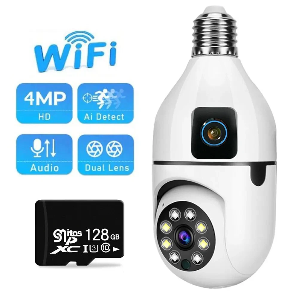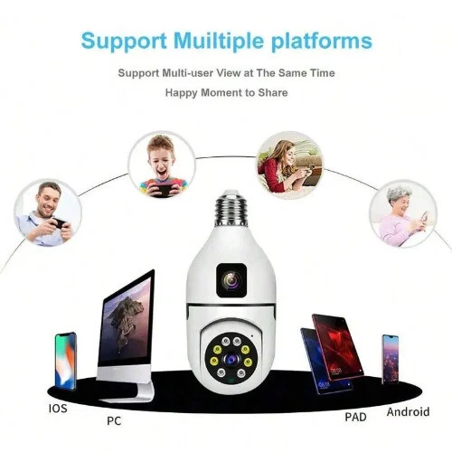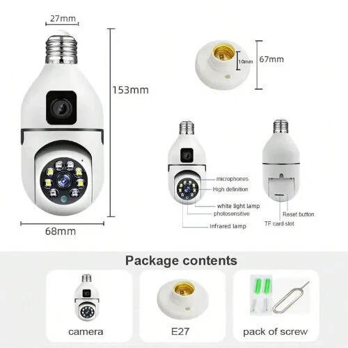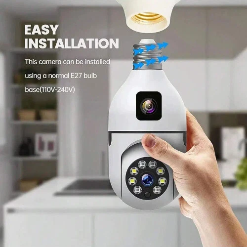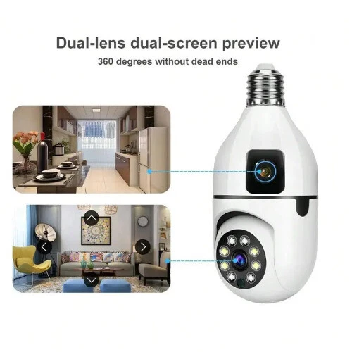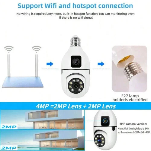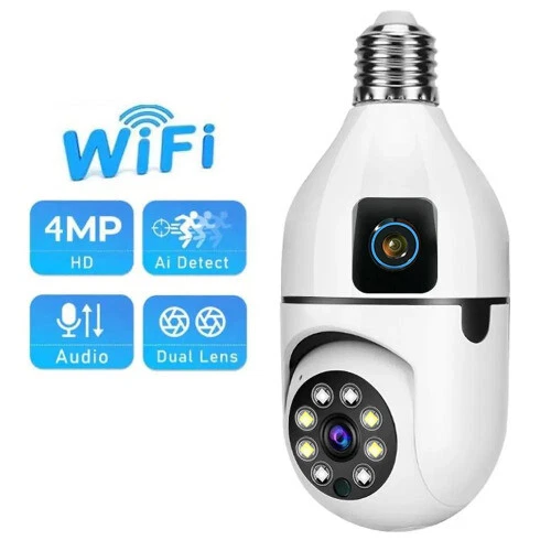 4MP E27 Wifi Dual lens Bulb Camera Smart Home Video Surveillance IP Camera Support Mobile Remote 360° View Motion Detection Auto-tracking Alarm Notification Push Color Night Vision Two Way Audio Cloud Storage Network Monitor Specification list: Pixel:2MP+2MP Lens:3.6mm Horizontal viewing Angle: 80 degrees Video: H.264/15FPS PTZ adjustment function: electronic PTZ horizontal: 350 degrees vertical: 90 degree Night vision: IR-CUT automatic switching, 8 meters Number of lamp beads: Ball: 4 infrared 4 white light Wifi antenna mode: Built-in antenna Minimum illumination: 0.02Lux@ (F2.0,VGC ON) 0 Lux with IR Network: Support WIFI wireless transmission IEEE802.11b/g/n protocol standard Audio: Support G711 coding standard, support two-way half-duplex voice intercom Alarm: Support voice alarm, picture push Storage Service: Micro SD/TF (Max. 128G, No Included) Power supply: AC 110-240V 50-60HZ 6W Working environment: -10 ℃ -50 ℃ Humidity less than 95% (no condensation) Installation mode: Hoisting Reason to buy: The latest duel lens bulb camera, the new upgrade of the bulb camera, the duel lens is cooler and closer to life, ensuring family safety: Night security camera: the duel lens ip security camera is designed to provide you with night vision, which can help you find your own personal information. E27 camera wifi: e-camera and camera can be used to monitor your personal security. you can also use it as a surveillance camera for the elderly, children and pregnant women. Simple and convenient: the camera is equipped with a remote control, which can be easily connected to your mobile phone or other devices. Support auto tracking and alarm tone function. Support two-way audio talk speak real time. Support humanoid intelligent alert double light Payment Delivery details Returns Contact Us Feedback Payment 1.We accept PayPal only. 2.Payment must be received within 7 business days of auction closing. 3.We ship to your eBay or Paypal address. Please make sure your eBay and Paypal address is correct before you pay. Delivery details We try our best to ship out same day for payment cleared before 5.00 PM (Pacific Time) , Order placed on weekend or holiday will be shipped on Monday or next working day. Below is the approximate delivery time to different countries (just estimated, not guaranteed): 7-25 working days to buyer in USA. Returns 1.We offer 30 days return policy. Please contact us within 30 days from the date you receive your order if you have any issues with the product and want to return. 2.All items must be returned in the original packaging and you must provide us with the tracking shipping number, specific reason for the return, and your eBay ID. 3.We will refund you FULL WINNING BID AMOUNT, upon receipt of the item in its original condition and packaging with all components and accessories included, AFTER BOTH Buyer and Seller cancel the eBay transaction. Or, you can choose to get a replacement. Contact Us All communication is done through EBAY MESSAGES ONLY. If any question, please feel free to contact us via "Ask seller a question" or "Contact Seller",We try our best to reply to your emails as soon as possible, due to high volume of daily incoming emails and time zone difference, we may not be able to reply your emails immediately. Please allow 1-2 business days for us to response. Feedback Feedbacks: When you receive the item and satisfied with the product, please leave us positive feedback. If for any reason you are not satisfied with your purchase from us, please contact so we can get to work and resolve this issue for you. Please don't leave neutral or negative feedback without giving us an opportunity to try and make it right. Our goal is to ensure a happy shopping experience with us. Your Positive feedback is very much appreciated!