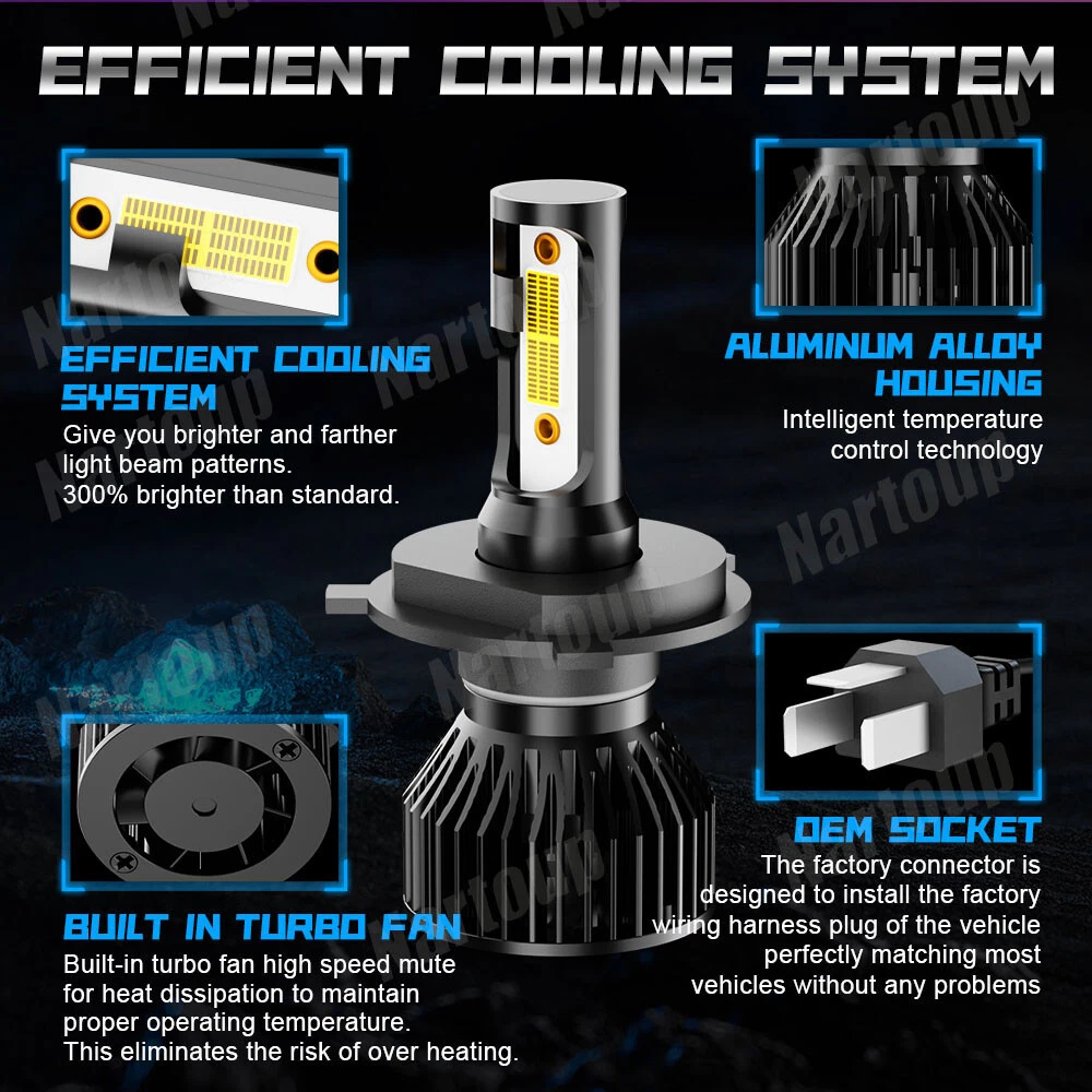 Bulb Shape Code: HB2 (9003) H4 Model: GLASS/METAL MATERIAL Number of Bulbs: 4 Note 1: No mounting bracket Vintage Part: Yes Lens Color: Clear Material: Diecasting aluminum alloy housing Features: CAPA-Certified, DOT-Certified Finish: Polished, Powder-Coated, Smooth, Textured Voltage: DC 9-32V ( Fit 12V,24V Vehicle ) Note 4: H4 adapter harness & H13 adapter harness included Headlight Style: Glass Replacement Headlights Note 3: FITS STOCK BUCKETS( Some models may require minor modifications) Other Part Number: H4656,H4651,4652,4651,H4740,H4739,H4666 Lumens: 10000LM Wattage: 100 W Lighting Type: Specialty Head Light Bulb Package includes: 4x 4X6" inch Headlight Housing+4x H4 Bulbs Manufacturer Warranty: 5 Years Bulb Life Hours: Up to 50,000 Hours Manufacturer Part Number: 4x6" INCH Stock Style HOUSING + 4Pcs H4 LED Headlights Universal Fitment: Yes After-sale guarantee: Money back or replacement (buyer's choice) Performance Part: Yes Brand: Nartoup Size: 4X6 INCH Light Color: White Country/Region of Manufacture: United States Note 2: Professional installation is recommended Housing Color: Chrome Superseded Part Number: H4656, H4651, 4652, 4651, H4740, H4739, H4666 Surface Finish: STOCK STYLE GLASS LENS / METAL HOUSING Interchange Part Number: 4X6 inch Square Rectangle H4656 H4651 4651 4652 H4666 Mounting Style: Screws Color Temperature: 6500K Fitment Type: Direct Replacement Lighting Technology: LED Placement on Vehicle: Front, Left, Right Beam Type: High Beam Low Beam Items Included: 2X LED Headlights +2x LED Housings Type: Headlight Assembly Item Width: 4 in Item Length: 6 in