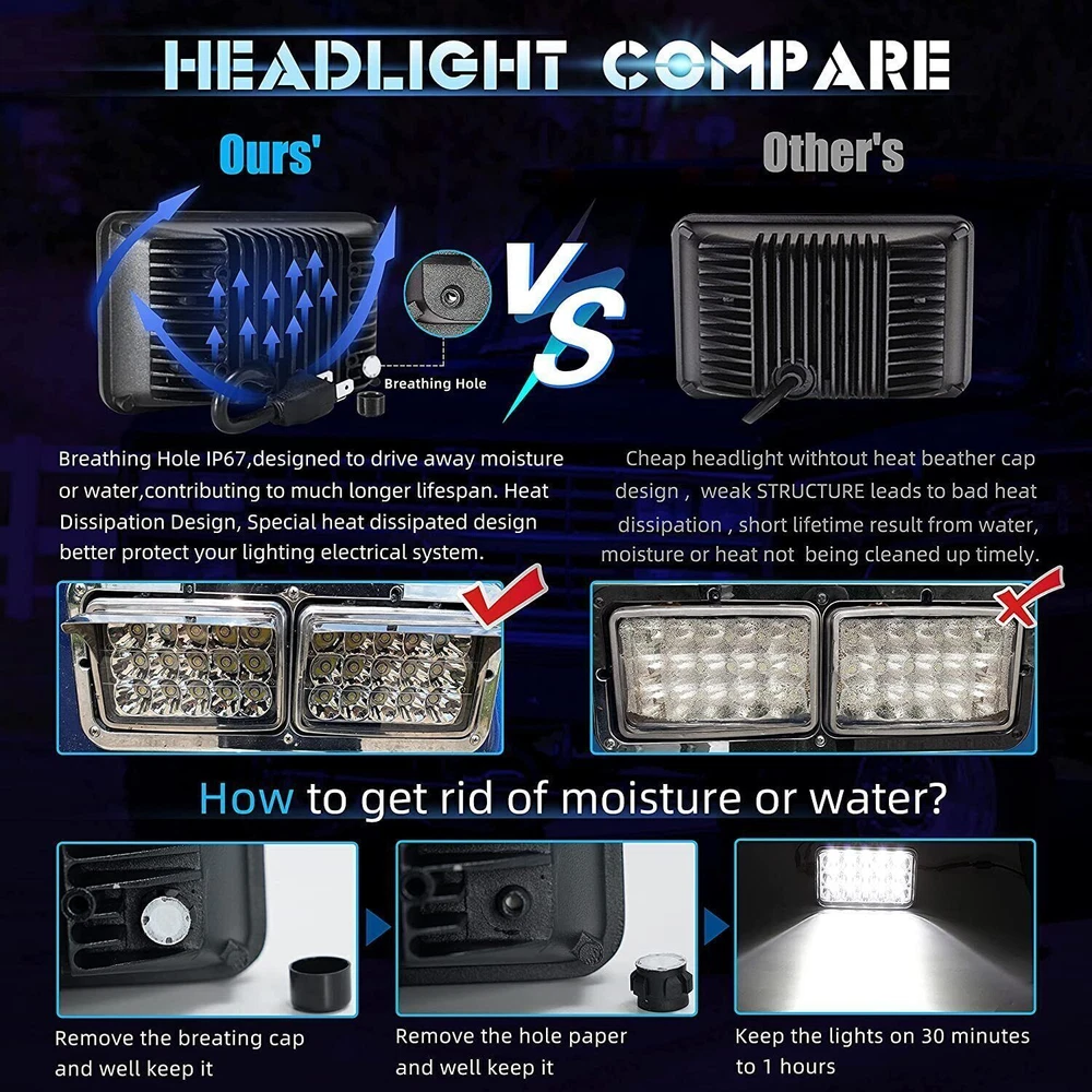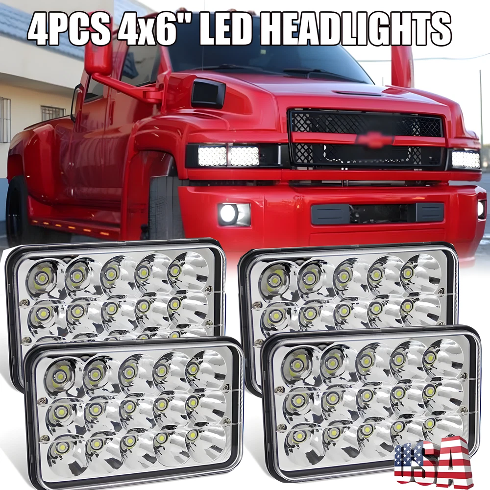 Features: -Newest 180W! Super bright ! High/Low beam -DOT approved,100% original best-performance Osram led chips with newest designed lens provide best vision for safe driving -Plug&Play,shock-proof and waterproof(IP68), Upgraded cooling system,More than 80,000 hours lifespan, Totally Risk-free under 3 year warranty -Better light pattern! Will NOT blind others' eyes while providing the brightest and widest vision. You can find similar headlights copied from us but they can't copy the inside. -With EMC: Anti-electromagnetic interference -Diecasting aluminum alloy shell is not easy to deform and will improve cooling performance -The real 180W brightness, the wider,farther,and safer light pattern, all make this best headlight in the market. Specification: -Type: LED reflector headlight -Size: 4x6inch -Function: Hi/Lo Beam -Operating Voltage: 9-32V DC, fit 12V/24V vehicles -LED Power: 180W@high beam; 72W@low beam -Current: 0.75A-3.75A -Luminous Flux: 18,000lm@high beam; 7,200LM@low beam -Waterproof rate: IP68 -Certifications: DOT, SAE, ISO9001, IP68 -LED Chip: 15pcs High intensity Osram LEDs -Color Temperature: 6000K -Material: Aluminium heat sink body -Lens material: PC Lens -Life Span: more then 80000 hours -Working temperature: -40~ 85C -Warranty: 5 years Package including: -4pcs 4x6 LED headlights Fitment :Chevy C4500 C5500 Kodiak 2003-2009