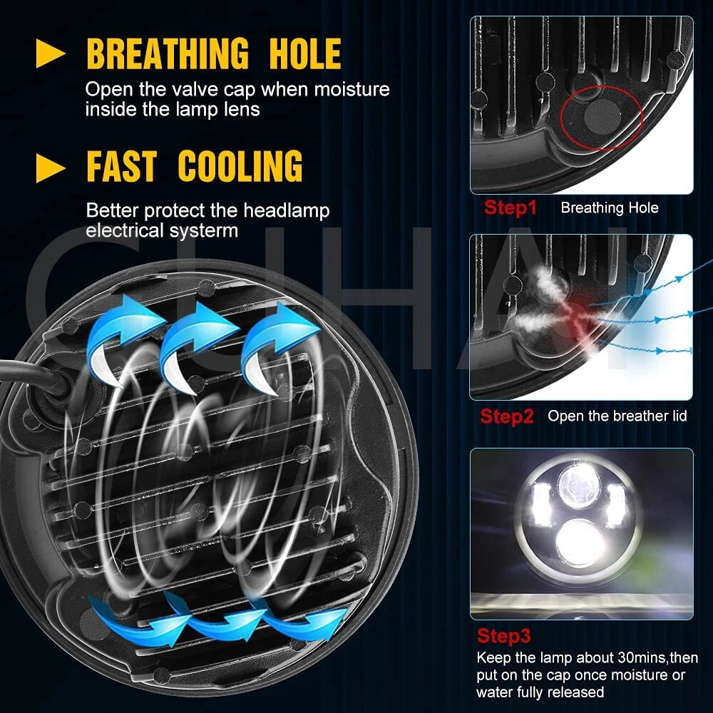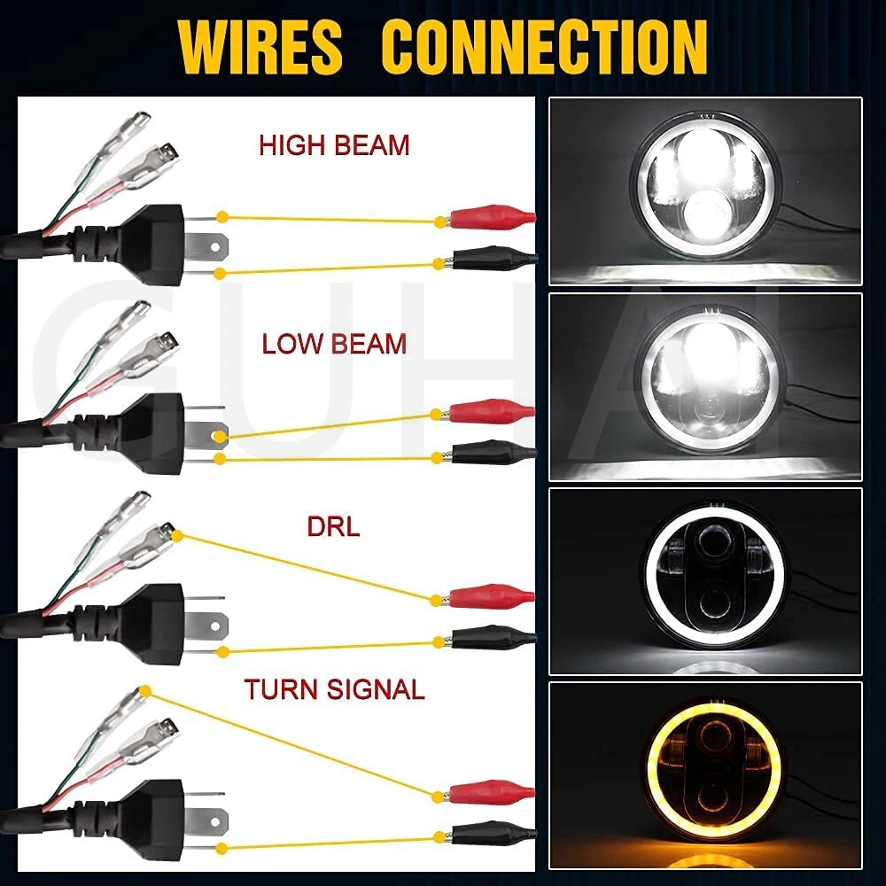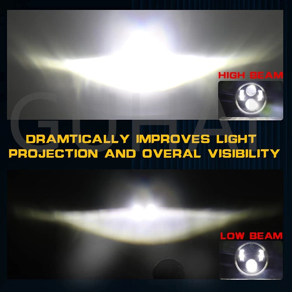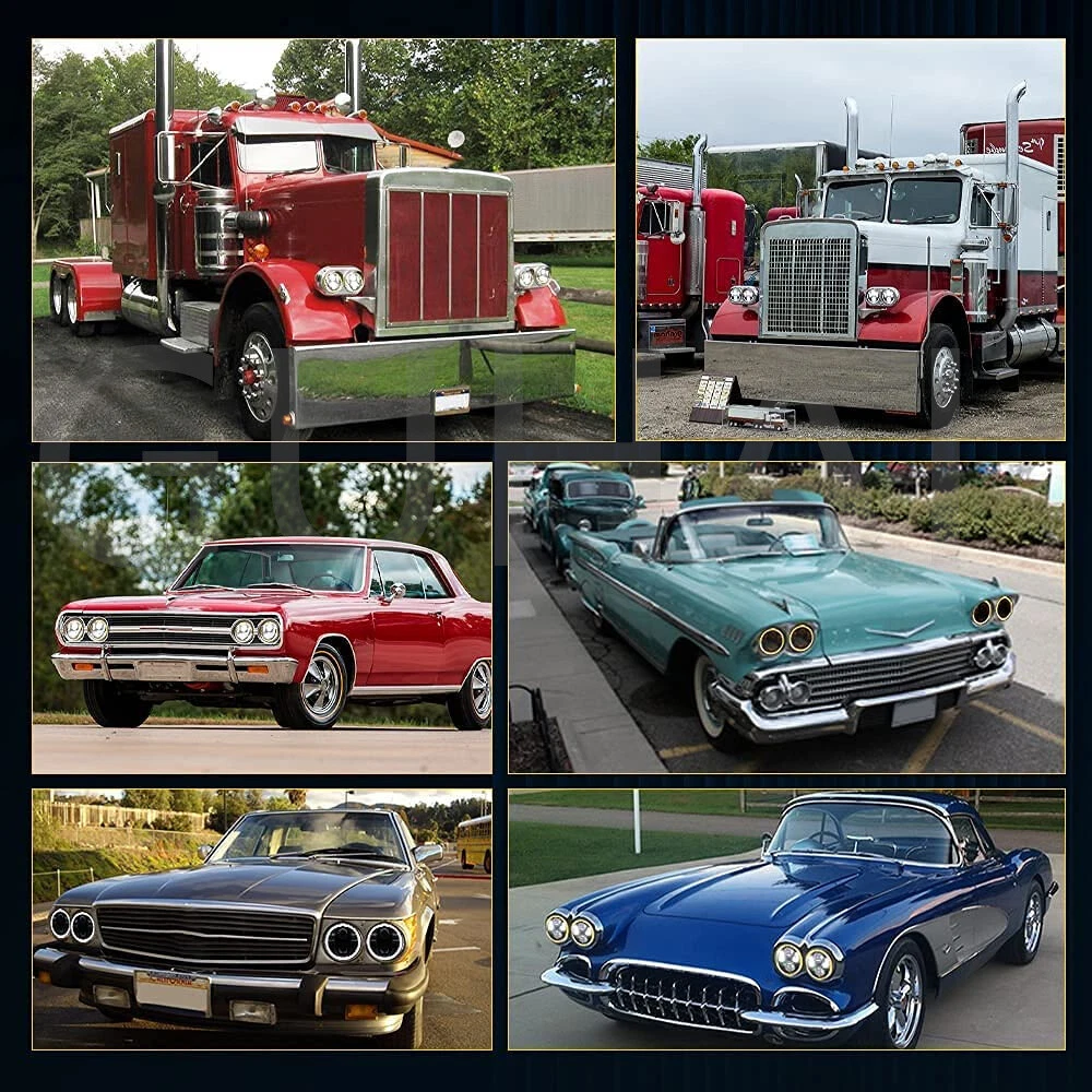 5 3/4" 5.75 Round LED Headlights Notes: 1. Please check whether it is fit your vehicle before purchase. 2.The compatibility table is only for reference, please make sure to verify the bulb type of your vehicle before purchasing. We are happy to help if you need any further information. 3. Installation instruction is NOT included,professional installation highly recommended. Technical Specification Power:90W@high beam,60W@low beam Style: 5.75" H4 round sealed-beam, black inner bezel LED Quantity: 9pcs* high power chips,Pure White 6000K Working Voltage: DC 10-30V(fit 12V/24V vehicles) Luminous Flux: apporx 9000lm@low beam, 6000lm@high beam Material: black die-cast aluminum profile,clear hard coated PC lens IP67 water and dust seal,about 30,000 hours lifetime Two Modes: High Beam-All LEDs on,Top and two side LEDs on Package Included: 4x 5-3/4" 5.75" LED projector headlights Application: fit for Ford Gran Torino 1974 fit for Peterbilt 352 359 fit for Kenworth W900a fit for Chevy Chevelle 1965-1970 fit for Lincoln Continental 1962-1979 fit for Dodge Challenger 1970-1974 fit for Dodge Monaco 1965-1976 fit for Cadillac DeVille 1962-1974 fit for Chrysler Town & Country 1962-1977 fit for Oldsmobile Cutlass 1962-1973 fit for Plymouth Fury 1962-1974, etc...