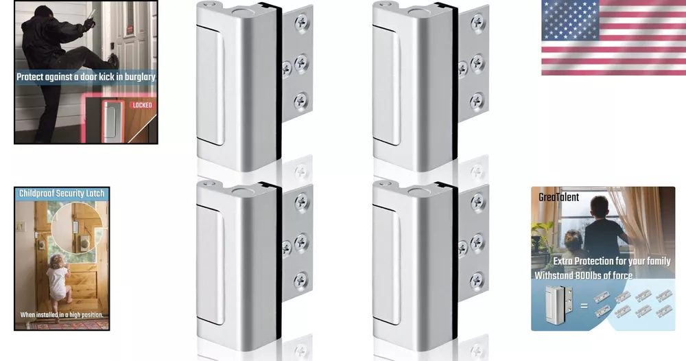 4-Pack Childproof Security Door Lock Set - High Strength Aluminum Reinforcement ‹ › ‹ › ‹ › ‹ › ‹ › ‹ › ‹ › ‹ › ‹ › ‹ › ‹ › 4-Pack Childproof Security Door Lock Set High Strength Aluminum Reinforcement Key Features: Ultimate Home Safety: Each 3-inch door lock is engineered to withstand an impressive 800lbs of force, making it ideal for inward swinging doors. Rest easy knowing your home is fortified against intrusions. Effortless Installation: Equipped with robust screws, installation can be completed in under 5 minutes. Enjoy the straightforward process of securing your home with just a screwdriver or power tool. All necessary screws are included! Convenient Locking Mechanism: Unlocking the door is a breeze! Simply pinch the lock at the top and bottom, slide it towards the hinge side, and easily pull it outward. Childproof Feature: Designed with families in mind, this security door lock offers extra protection for children by preventing them from opening the door to strangers. Recommended for installation above doorknob height. Innovative Design: Featuring a spring-loaded and tamper-resistant mechanism, this lock not only looks great but is constructed of high-quality aluminum, offering superior safety compared to traditional locks. Benefits: Provides maximum security to protect your loved ones from unwanted entry. Quick and easy to install, saving you time and hassle. Childproof design adds peace of mind for parents. Durable and strong materials ensure long-lasting protection. Enhances the overall safety and security of your home. Why Choose Our Childproof Security Door Locks? Your home is your sanctuary, and security is paramount. Our 4-Pack Childproof Security Door Lock Set offers unparalleled strength and ease of use. With a simple installation process, superior durability, and a focus on child safety, these locks are the perfect solution for any family seeking peace of mind. Don’t compromise on safety; protect your home with the highest quality locks available. Invest in your family's safety today! Shipping Free & Fast Shipping - We offer free shipping to most of the USA with a normal delivery time of 3-7 days. However, due to the current situation, additional delivery time (up to 3 weeks) may be required for some items. Alternative Carriers - We may use alternative carriers (e.g. USPS, FedEx, UPS, etc.) to ensure your package arrives safely and on time. Due to the use of multiple carriers, we are unable to provide a tracking number automatically. Handling Time - Orders are processed and shipped within 1-2 business days of receiving cleared payment. Shipping Restrictions - Shipping to Alaska, Hawaii, Puerto Rico, Guam, and other US territories may incur shipping charges or delivery restrictions. Please contact us before ordering, or your order can be refunded/cancelled. State Restrictions - There may be restrictions based on your state of purchase. For example, certain items may not be shipped to California due to state regulations. Contact for Tracking Updates - If you require tracking updates or have any concerns about the delivery of your order, please feel free to contact us, and we will be happy to assist you. Return Please see our eBay Return Policy. Thank you. Payment We accept all major credit cards, PayPal, and Apple Pay for your convenience. Your payment information is secure and encrypted to ensure a safe and seamless transaction. Please complete your payment within 3 days of purchase to avoid any delays in shipping. Feedback Your feedback is extremely important to us. We strive to provide the best products and customer service possible. If you are satisfied with your purchase, please take a moment to leave us a positive review. If you have any concerns or issues with your order, please contact us before leaving negative feedback. We are committed to resolving any problems and ensuring your satisfaction. Contact Us If you have any questions or concerns, please feel free to reach out to our customer support team. You can contact us through the eBay messaging system. We are available Monday to Friday, 9:00 am to 5:00 pm EST, and we will do our best to respond to your inquiry within 24 hours. Thank you for supporting our small family business! UPC: Not Set Model: Not Set Unit Quantity: 1.47 lb Material: Aluminum Suitable For: Entire Door,Front Door,Interior/Room Door,Security Door,Front Door Security,Locks for Door Inside,Inward Swinging Door,Childproof Door Lock Mounting: Universal Features: Easy to Install,Childproof,Easy to Lock & Unlock,Tamper-resistant,Spring-loaded Items Included: Hardware,Included 3 x 2.75inch screws,4 x 0.75inch screws Brand: Unbranded Type: Frame Lock Color: Silver Finish: Smooth Item Height: Not Set Item Width: Not Set Throw Length: Not Set Cross Bore Diameter: 3 in MPN: Not Set Number in Pack: 4 Style: Modern Item Depth: 1.38 in Country/Region of Manufacture: Not Set ANSI Grade: ANSI Grade 3 (Good) Door Handing: Universal/Reversible Item Weight: 1.47 lb Manufacturer Warranty: Not Set Unit Type: lb Fixings Supplied: Not Set