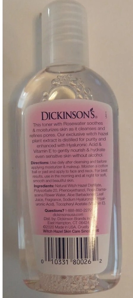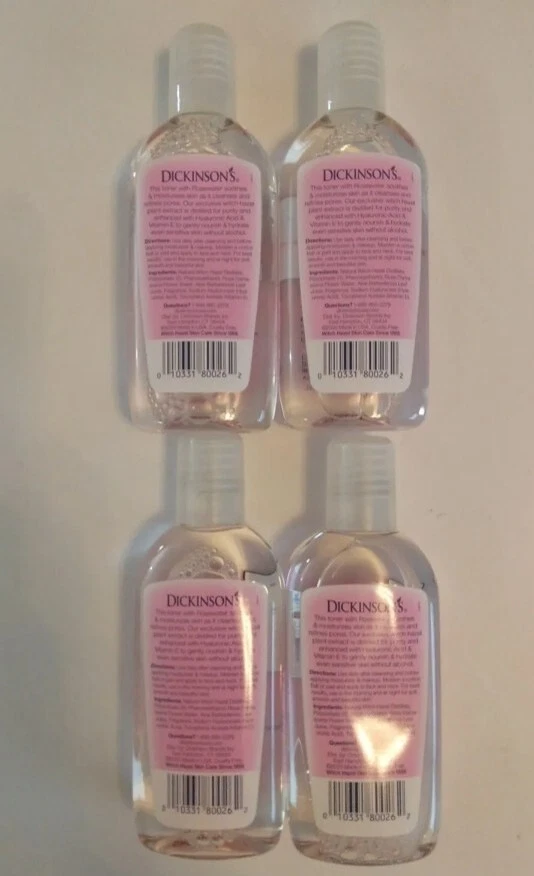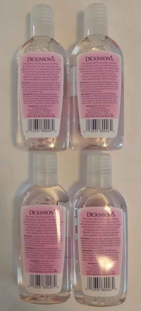 Lot of 4 DICKINSON'S Enhanced Witch Hazel HYDRATING TONER Alcohol Free 3.3 Fl Oz.