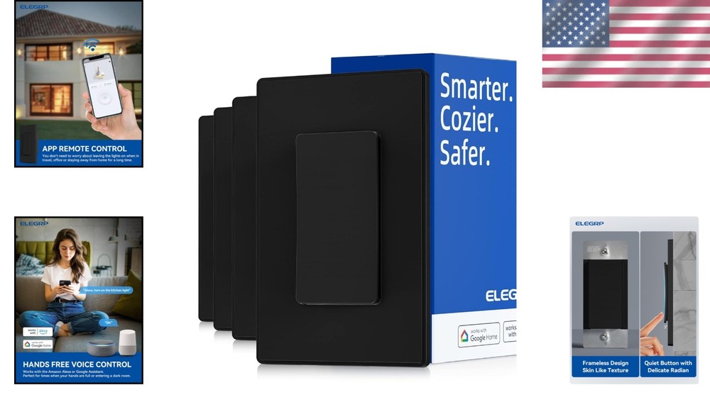 Smart Home Essentials: 4-Pack Wi-Fi Light Switch with Scheduler & Voice Control ‹ › ‹ › ‹ › ‹ › ‹ › ‹ › ‹ › ‹ › ‹ › Smart Home Essentials: 4-Pack Wi-Fi Light Switch with Scheduler & Voice Control Transform your living space with these innovative smart light switches, designed for convenience, control, and style. Key Features: APP Remote Control: Remotely manage your home lighting from anywhere via a user-friendly APP. Never worry about leaving lights on while you're away, giving you peace of mind. Hands-Free Voice Control: Effortlessly control lights using Amazon Alexa or Google Assistant; ideal for busy moments or when entering a dark room. Just say, "Hi Alexa, turn on the lights" and enjoy seamless convenience. Smart Scheduling: Customize on/off scheduling using countdown timers, or sync your lights with sunrise and sunset for a warm welcome when you return home. Modern Design: Beautifully crafted with a delicate radian and a quiet rocker design, the skin-like matte surface complements any contemporary decor while maintaining a low-profile presence. Easy Installation: Step-by-step installation guide ensures a quick setup. Compatible with single pole setups only (not 3-way), with neutral wire required. Supports 2.4G network (not 5G) and doesn’t require an additional hub. Why Choose Our Smart Wi-Fi Light Switch? Step into the future of home automation with our 4-Pack Wi-Fi Light Switch. Designed for effortless control, these switches ensure your home is not only smart but also welcoming. Enjoy the luxury of personalized lighting scenes, the security of remote management, and the ease of voice activation—all tailored to fit seamlessly into your lifestyle. Enhance your home experience by embracing technology that works for you. Make the smart choice today and let your light shine at your command! Shipping Free & Fast Shipping - We offer free shipping to most of the USA with a normal delivery time of 3-7 days. However, due to the current situation, additional delivery time (up to 3 weeks) may be required for some items. Alternative Carriers - We may use alternative carriers (e.g. USPS, FedEx, UPS, etc.) to ensure your package arrives safely and on time. Due to the use of multiple carriers, we are unable to provide a tracking number automatically. Handling Time - Orders are processed and shipped within 1-2 business days of receiving cleared payment. Shipping Restrictions - Shipping to Alaska, Hawaii, Puerto Rico, Guam, and other US territories may incur shipping charges or delivery restrictions. Please contact us before ordering, or your order can be refunded/cancelled. State Restrictions - There may be restrictions based on your state of purchase. For example, certain items may not be shipped to California due to state regulations. Contact for Tracking Updates - If you require tracking updates or have any concerns about the delivery of your order, please feel free to contact us, and we will be happy to assist you. Return 30-Day Hassle-Free Returns - We want you to be completely satisfied with your purchase. If you are not, you can return the item within 30 days of receiving it for a full refund or exchange. Easy Return Process - To start a return, simply contact us and we will provide you with a prepaid return shipping label and detailed instructions. Restocking Fee - There are no restocking fees for returns. However, the buyer is responsible for return shipping costs if the return is not due to a seller's error. Refund Processing Time - Refunds will be processed within 5 business days of receiving the returned item in its condition. Payment We accept all major credit cards, PayPal, and Apple Pay for your convenience. Your payment information is secure and encrypted to ensure a safe and seamless transaction. Please complete your payment within 3 days of purchase to avoid any delays in shipping. Feedback Your feedback is extremely important to us. We strive to provide the best products and customer service possible. If you are satisfied with your purchase, please take a moment to leave us a positive review. If you have any concerns or issues with your order, please contact us before leaving negative feedback. We are committed to resolving any problems and ensuring your satisfaction. Contact Us If you have any questions or concerns, please feel free to out to our customer support team. You can contact us through the eBay messaging system. We are available Monday to Friday, 9:00 am to 5:00 pm EST, and we will do our best to respond to your inquiry within 24 hours. Buy it now and enjoy a pleasant shopping experience! Item Diameter: 5.16 x 3.35 x 2.36 inches Item Weight: 1.65 pounds Unit Quantity: 4 Material: Brass,Plastic Features: Wireless,APP Remote Control,Smart Scheduling,Hand Free Voice control Department: Adults Smart Home Protocol: Wi-Fi Smart Home Compatibility: Amazon Alexa,Google Assistant Type: Smart Light Switch Lighting Technology: LED Number in Pack: 4 Current Type: AC Connectors: Quick Connect Voltage: 120 V Output Voltage: 125 V Amperage: 3.75 A Color: Black Power Source: Wall Plug-In Installation Area: Indoor Style: Modern Unit Type: lb
