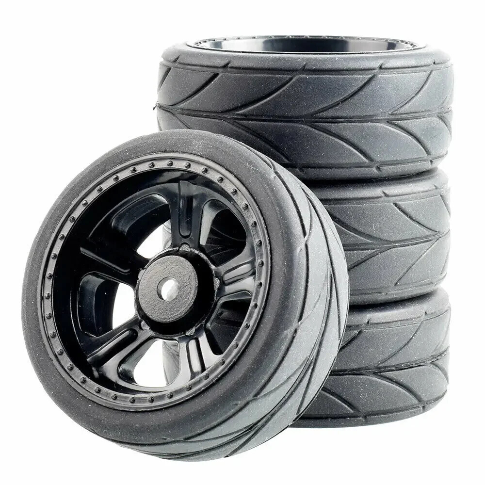 100% Brand New Plastic Wheel / Rubber Tires Rubber Tires Diameter: 64mm / Width: 26mm Wheel Diameter: 52mm / Width: 26mm Wheel Hex Drive: 12mm 4xWheel and 4xTires Complete, Insert Sponge NOTICE: The wheels and tires are not glued together and must be glued before use. Please carefully check the tire size before purchase, whether it is the same as your model tire size, and confirm it again before payment, so as not to return the refund, thank you, wish you a happy shopping.