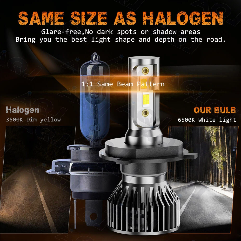 4"x6" Stock Style High Low Beam Headlights w/ LED Bulbs - Set of 4 THESE ARE LED CONVERSION HEADLIGHTS WITH A STOCK STYLE GLASS LENS AND METAL HOUSING! INCLUDES (4) HIGH INTENSITY LED WHITE LIGHT BULBS! 4X6 INCH SQUARE HEADLIGHT - SET OF 4 Made from real glass and not cheap plastic Come with 4 LED Bulbs In-stock Note: Without mounting bracket, some models may need mounting bracket! STOCK STYLE GLASS LENS / METAL BACKSIDE FITS STOCK BUCKETS( Some models may require minor modifications ) HIGH LOW BEAM BRIGHTER AND WHITER THAN STOCK LIGHTS BULBS ARE REMOVABLE AND REPLACEABLE INCLUDES 6000k WHITE LED LIGHT BULBS DOT / SAE APPROVED. THIS LISTING IS FOR A NEW SET OF 4 - 4x6" STOCK STYLE GLASS LENS / METAL BACKSIDE LED CONVERSION HEADLIGHTS WITH WHITE LED LIGHT BULBS. THIS SET INCLUDES 4 HIGH LOW BEAM HEADLIGHTS. THESE ARE BRIGHTER AND WHITER THAN THE STOCK STYLE INCANDESCENT SEALED BEAM HEADLIGHTS. IN RARE CIRCUMSTANCES, WIRING MODIFICATION MAY BE REQUIRED. Description: Model: LED Bulb light Source Model: LED Chip, 2-sides leds, super bright Power: 400w/Set & 100w/bulb Lumen: 40000LM/Set & 10000LM/bulb Operating voltage: DC 9-32V ( Fit 12V,24V Vehicle ) Beam Type: High Low Beam Material: Aluminum PCB and PA66+30% GF Plastic Beam Angle: 360° Color Temperature: 6000K White Lifespan: over 50000h Working Temperature: -40-+80 Centigrade Waterproof rate: IP 68 Connector Type: Plug and Play Application: LED Headlights Headlamp Lamp Bulbs Low Beam Uses 75% less power than Halogen or HID bulbs 3 times brighter than stock halogen bulbs OBC Error free operation Dramatically improves visibility at night INTERCHANGE: H4656 / H4651 / 4651 / 4652 THESE ARE GLASS AND WE WILL TAKE EXTRA CARE IN PACKAGING. Package Includes: 4PCS of Headlight Housing (Pair Passenger and Driver Side) 4PCS of LED Bulbs After service Notification: If you are satisfied with our product and service please leave us a positive feedback,if there is any problem when you received the package,please feel free to contact us,we will be definitely give you a satisfying solution,when you choose the return reason .please choose the reason"i don't like it". by this option we will accept your return immediately and provide return label for full refund. the others reason to return will take both of us many troubles to handle. If you have any questions, please feel free to contact us, we are happy to answer them for you. Hope you will have a good shopping experience~ On Nov 17, 2024 at 19:35:48 PST, seller added the following information: On Nov 26, 2024 at 19:26:27 PST, seller added the following information:
