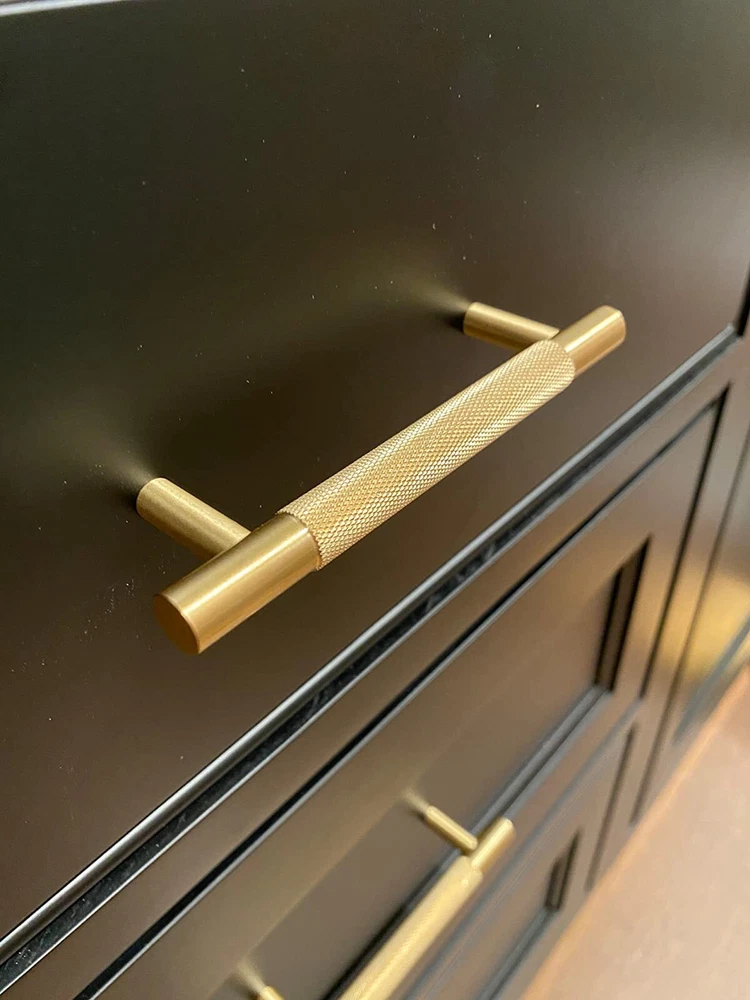 ✓ Solid Construction :These pulls are made of heavy solid brass material with a great substantial feel and weight to it,definitely won’t break off easily,sturdy and durable for daily use on heavy drawers.These cabinet pulls are beautifully machined in brushed gold.These kitchen cabinet pulls provide a great upgrade for your furniture both in terms of heavy brass material/color and design,adds a warm , personal touch to your home. ✓ Perfect Brass Color:These are beautiful and the perfect amount of brass to compliment a few brass accessories in the room, the brushed finish soften the gold,these are not loud gold ,adds a real elegance to the kitchen cabinets without standing out too much.The handles looks great either horizontal or vertical, these are very flexible to install. ✓ Specification:Center to Center: 5 inch(128mm);Overall Length:6-5/8inch(168mm) ;Height:1-3/8 inch(34mm).There are plenty of space under the pull to put your fingers and get a comfortable fit for your hands when used.These are heavy duty brass pulls with great sturdy quality,work well for heavier cabinet drawer.These brass pulls are individually wrapped to protect these drawer pulls from nicks and scratches,ensure arriving in a good condition. ✓ Beautiful Knurled Design: The diamond pattern finish on the center of the brass pulls,it features a knurled diamond texture and a modern brush finish,adds visual impact to any piece of furniture.These brass pulls Looks much more custom than the generic handles.The drawer pulls are practical and stylish,perfectly decorate your drawer with a sleek modern look.These knurled pulls will elevate the look of your furniture to the next level once installed. ✓ Quick Install:These brass pulls come with good quality metric screws for easy installation. There are 2 sets of M4 Metric size mounting screws come with the handles ,8Pcs M4 x 25mm(1 inch)long screws and 8Pcs M4 x 40mm(1-9/16 inch) long screws to facilitate a variety of installation scenarios You can install them within minutes.It's a good cabinet pull for the old one.