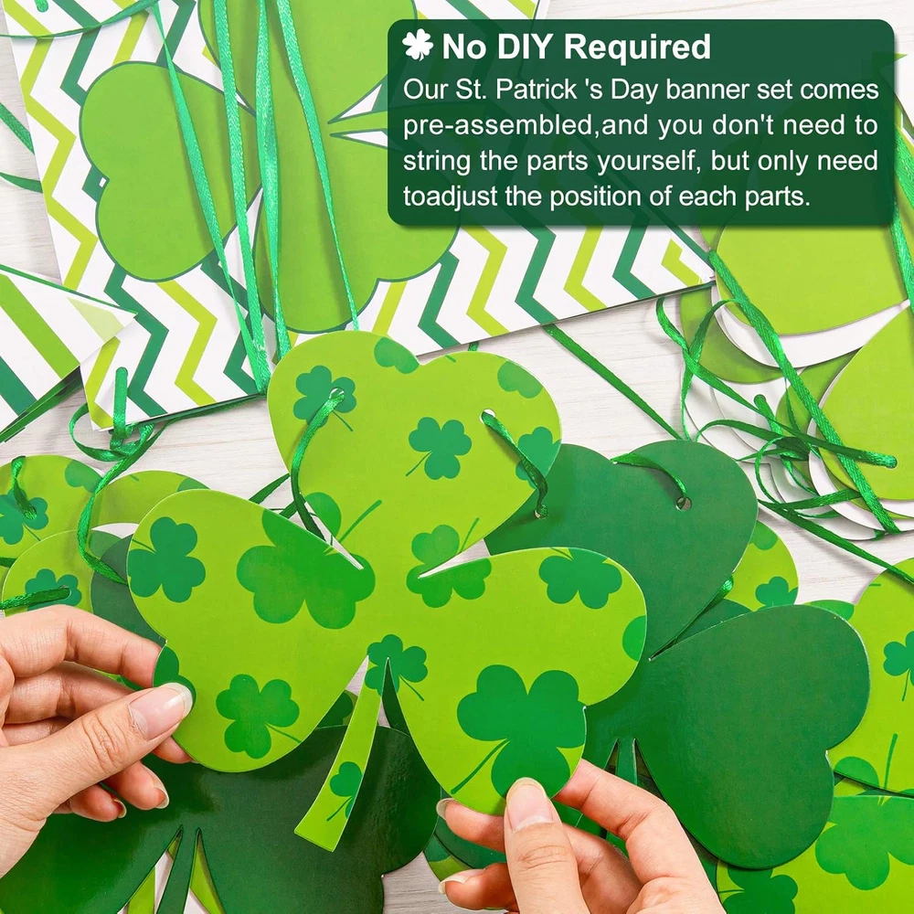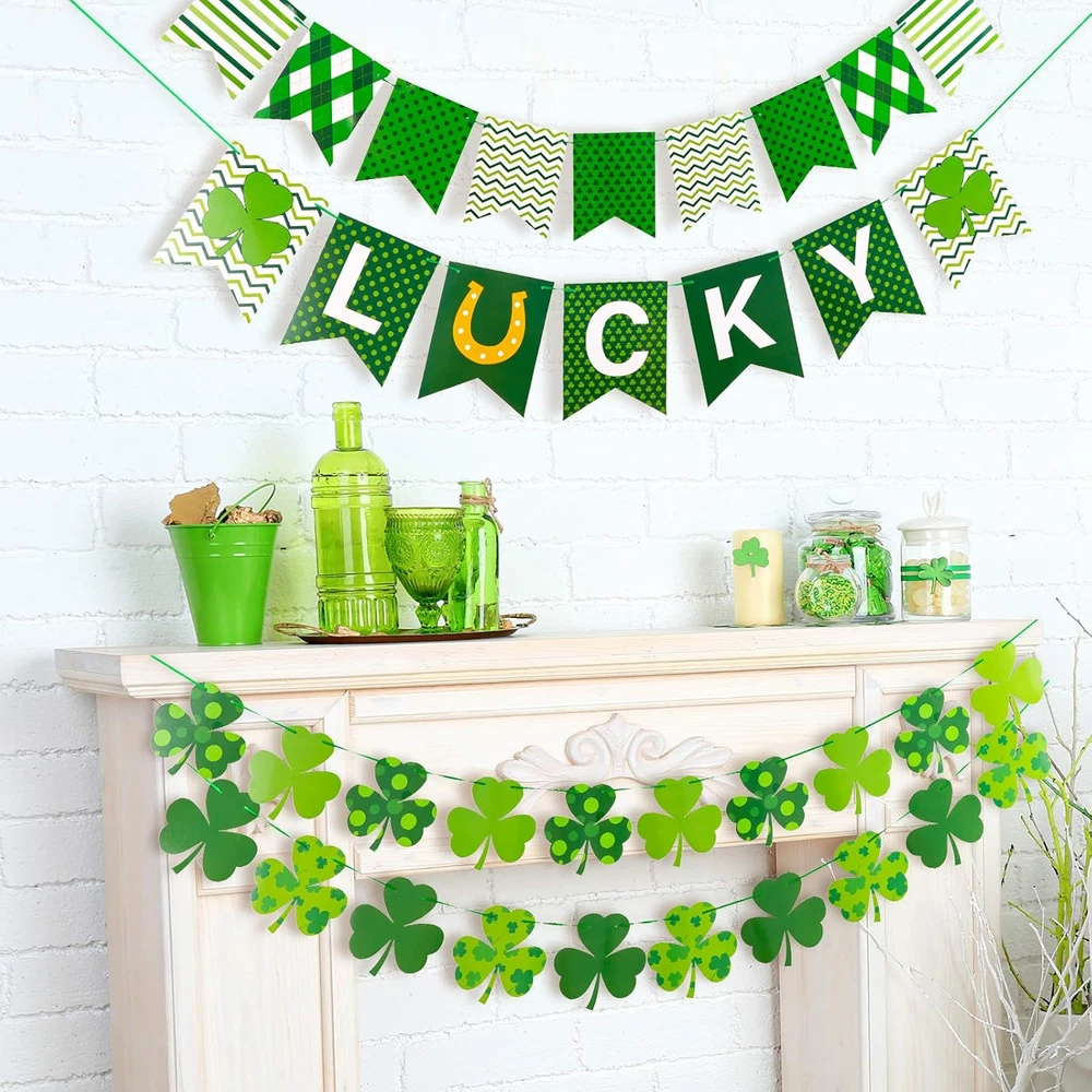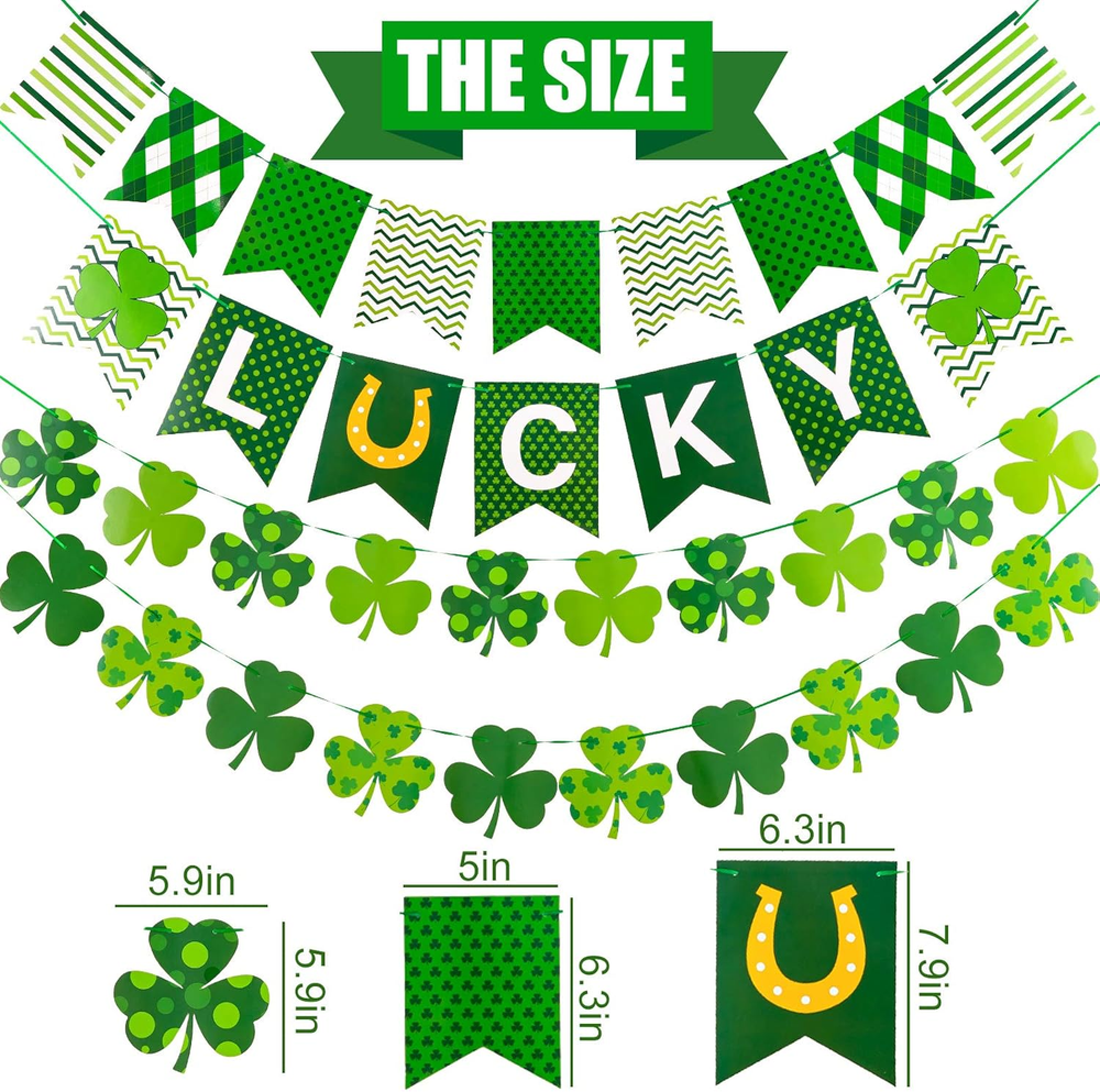 Store New Arrivals Add to Favorite View Feedback Contact Fast deliveries to the customer's home Quality customer service John Make the customers happy! 4Pcs St. Patrick'S Day Banner Decoration Pre-Assembled Cartoon Holiday Flag Garland Double-Sided Green Lucky Shamrock Clover Banner Spring Irish Home Party Supplies Description Package Includes - 4 strings of St. Patrick Day banners, 2 strings Swallowtail banner and 2 strings shamrock banners, sufficient to meet your different decoration needs. No DIY Required - Our St. Patrick's Day banner set comes pre-assembled, and you don't need to string the parts yourself, but only need to adjust the position of each parts. Bring Luck - Taking green as the main color of the banners, 2pcs swallowtail banners are patterned with various elements, stripes, dots and plaids, printed the letter of "LUCKY", and 2pcs shamrock banners in 4 designs, creating strong festival atmosphere to your home and party, bringing good luck to you. Size & Material - Made from good-quality paper, double-sided printing, durable and reusable, the maximum part of the accessories is about 8 inch/20cm, large size can attract other's attention easily. Notice - Our banners are handmade and due to the transportation, the position of each parts may be different from the picture, but they can be adjusted, you can adjust the position freely. Product Description Features & Benefits: 4pcs St. Patrick's Day banners are included in the package, 2pcs swallowtail banners are patterned with various elements, 2pcs shamrock banners in 4 designs, creating strong festival atmosphere to your home and party, bringing good luck to you. Colored in green mainly, ideal for St. Patrick's Day party decoration, photo props and can be used in the courtyard, show, showcase, home and any place you want, adding strong festival atmosphere to your home and party. Specifications: Height: 8 inch/20cm Color: green Material: paper Package includes: 4 x St. Patrick's Day Banner Item model number W2051 Color Green Material Paper Item Weight 0.15 Kilograms Shape Triangular Item Length 8 Inches Product Dimensions 20 x 8 x 0.01 inches ABOUT US We offer the best prices around on high quality products. Our E-store includes media such as books, movies, music and games while offering electronics, toys, sporting apparel, clothing, tools, general home, garden items and more. SHIPPING We are always working hard to ensure your package arrives as soon as possible. Please understand that some factors like weather, high postal traffic, and the performance of shipping companies are outside of our control. We offer free shipping to the lower 48 states and ship within 2 business days of payment, usually sooner. We do not accept P.O. Boxes. Please provide a physical address. For shipping outside of the continental USA, we only use eBay's Global Shipping Program. The item is shipped to KY and then sent to the rest of the world. International customers are responsible for all duties and taxes. Continue to 'check out' to calculate costs for shipping the item to your country. Messages regarding eBay's Global Shipping Program MUST be directed at eBay EXCLUSIVELY. RETURNS We offer a 30-Day Return Policy on items in which you are not completely satisfied with. You have the option of a full-refund or an exchange of the item. No returns are available on items shipped outside of the USA PAYMENT We accept PayPal. CONTACT US This page content is yet to come Please ad us to your favorite seller and visit again later Thank You CUSTOMER SATISFACTION We try our very best to make sure every customer is completely satisfied. If there's a problem, message us! We're happy to help. WE ACCEPT