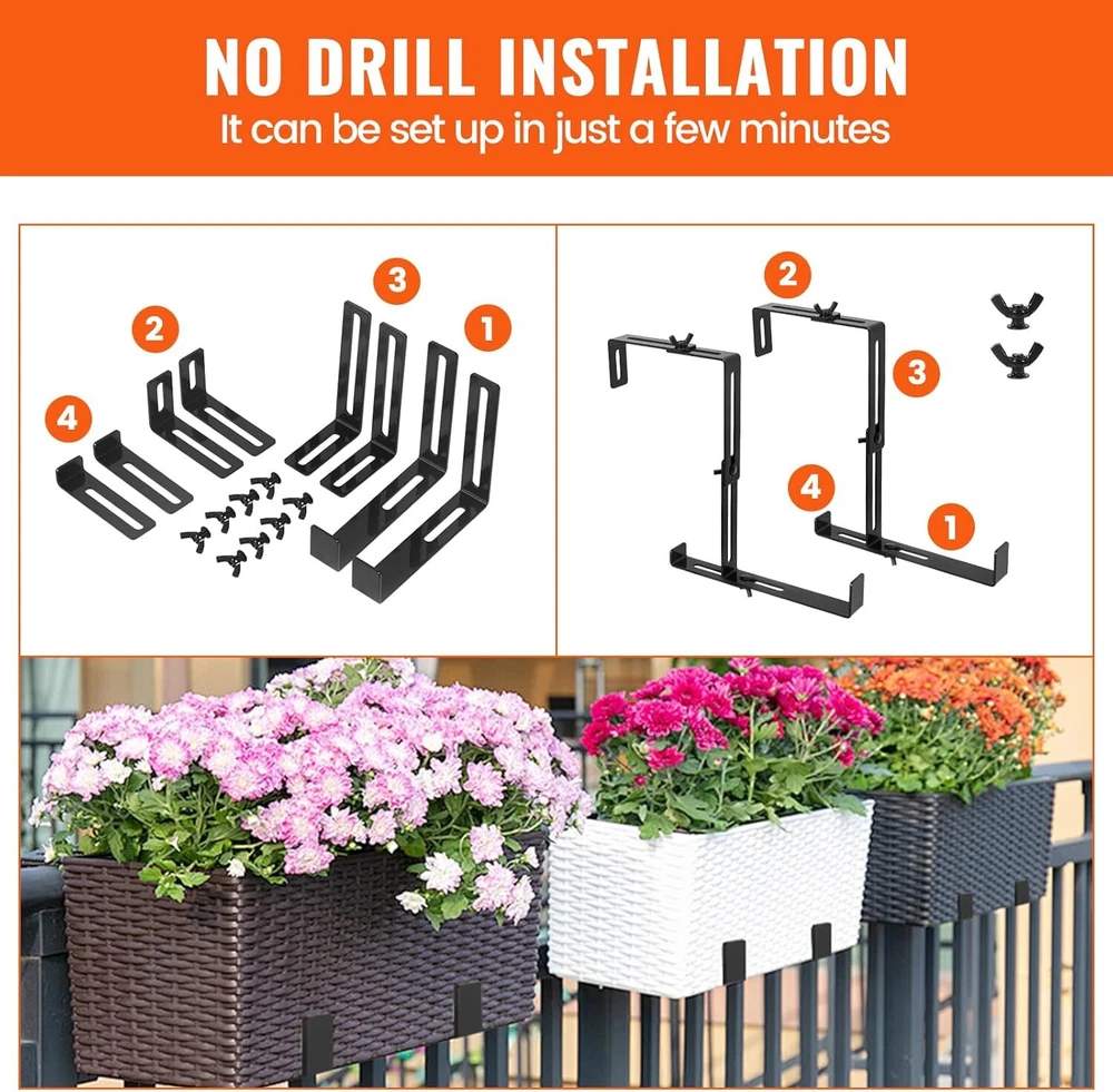 4Pcs Steel Window Box Brackets Adjustable Planter Box Brackets for Railings