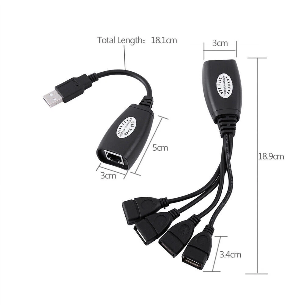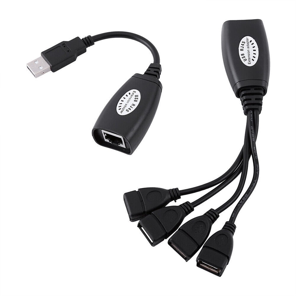 Feature: 1. Powered by the USB port, no need for extra power 2. Suitable for Cat5/Cat5E/Cat6 patch cord 3. Support USB1.1 USB2.0 . Can be hot-plug USB devices, and support four devices connected 4. Allows you to connect your USB device to your computer at a distance up to 50M/164ft 5. Ideal for use with USB cameras, printers, web cameras, keyboard, mouse extensions and any other USB devices Specification: Description: This USB 4 ports extension adapter can break through the computer USB cable length limitations, users can use this product through a single network cable using the USB port at long distance, the product can be widely used in computer science and education. Features: 1.Powered by the USB port, no need for extra power. 2.Suitable for Cat5/Cat5E/Cat6 patch cord. 3.Support USB1.1 USB2.0. Can be hot-plug USB devices, and support four devices connected. 4.Allows you to connect your USB device to your computer at a distance up to 50M/164ft. 5.Ideal for use with USB cameras, printers, web cameras, keyboard, mouse extensions and any other USB devices. Specifications: Color: Black Size: USB Female Cable Length: 18.9cm / 7.44inch USB Male Cable Length: 18.1cm / 7.12inch Package Weight: 100g Note: Some high-power USB device is not available for this extension cable. Package Included: 1 x RJ 45 Male Extension Adapter 1 x RJ 45 4 USB Female Extension Adapter