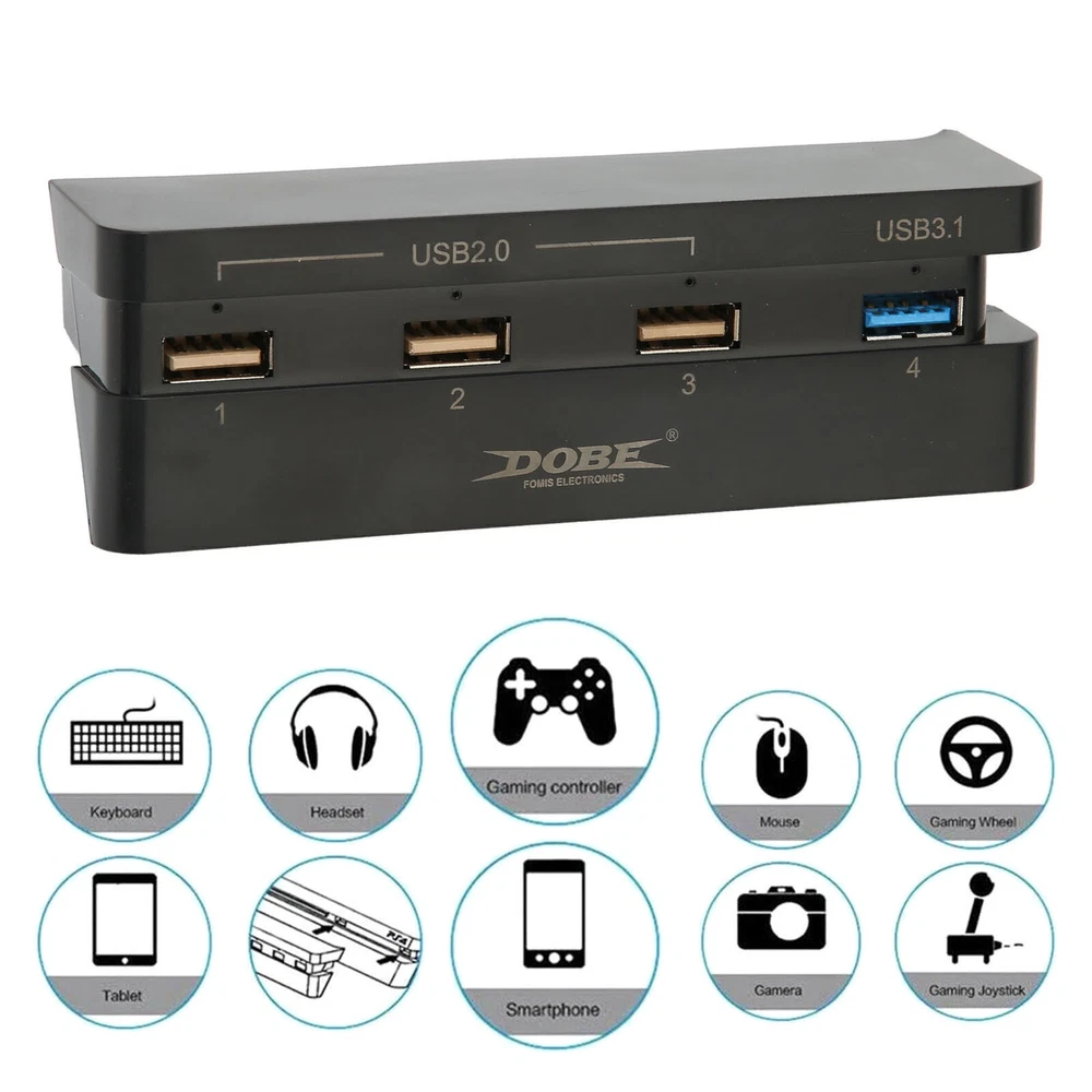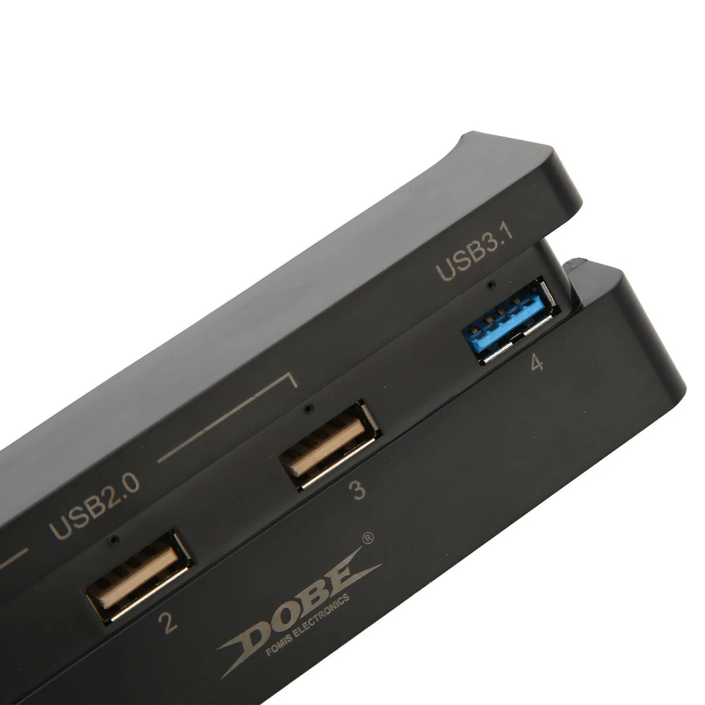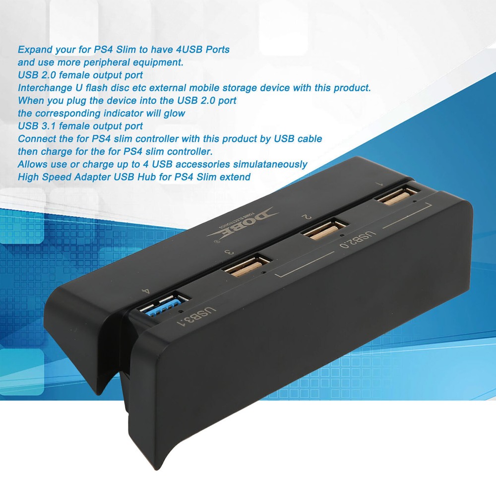 This USB hub is a game-changer for my PS4 Slim setup! It fits perfectly and lets me charge multiple controllers and accessories at once. The USB 3.1 port keeps my gaming smooth, while the USB 2.0 handles flash drives effortlessly. The glowing indicators make it easy to see what's connected. Super convenient and reliable—no more fighting for USB ports!