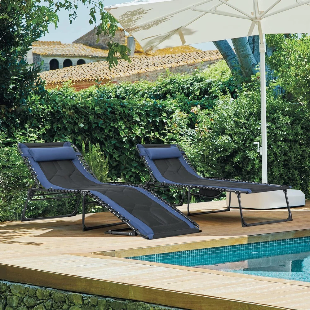 Absolutely love this lounge chair! The padded seat and adjustable recline make it super comfy for beach days or lounging in the backyard. The sturdy steel frame holds up well, and the included pillow and side bag are great bonuses. Super lightweight and folds easily—perfect for travel. The blue color looks fantastic and resists fading. Best outdoor chair I’ve owned!