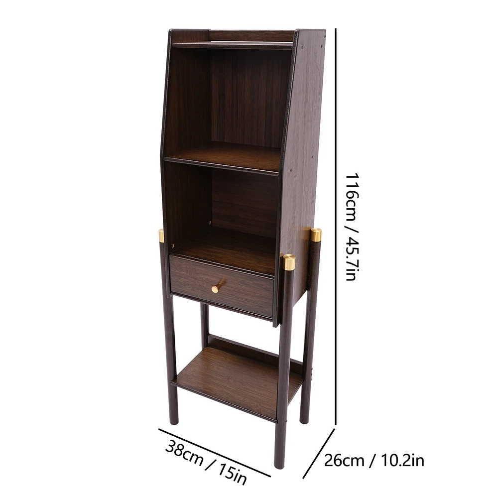 Specification Material: Bamboo and Density Board Process: Painting Color: Walnut Style: Modern Shape: Rectangular Assembly Required: Yes Mount Type: Floor Standing Product Care Instructions: Wipe with a Dry Cloth Number of Tiers: 4 Number of Drawers: 1 Load Capacity: 60kg/132 lbs Product Size: 38*26*116cm/15*10.2*45.7 in Package Included 1* Display Bookshelf Other Accessories for Assembly welcome to lucky_buyhere Description Too many books or items and nowhere to stack them will undoubtedly make your room look messy and affect your mood, so you need a good display bookshelf to help you organize and place books. Our product is made of high-quality materials for great durability, and the 4-tier design also ensures ample storage space. It will be your ideal purchase choice! Key Features Sturdy and Durable: It is made of high-quality bamboo and density board with a painting process, which is environmentally friendly, waterproof , strong, and durable. Home Organizer: It has 4-tier open shelves to sort your books and other items while ensuring easy access and improving space utilization. The storage drawer can organize your private items and prevent dust accumulation. Excellent Load Capacity: The high-quality materials and rectangular construction allow it to hold up to 132 lbs, so you can rest assured that your belongings are in good hands! Minimalist Appearance: The walnut-colored exterior with smooth lines makes it look very natural, simple, generous, and elegant, which is an ideal decoration for your home Simple Assembly: With complete accessories and a detailed English diagram, you can put it together yourself and enjoy the installation process. Space-saving: With its compact footprint(15*10.2 inches) and vertical structure, you can put it next to your sofa without taking up too much space! Ideal Gift: With good performance, you can give it as a gift to your friends or colleagues on Christmas, Thanksgiving, and other holidays. Simple Clean-up: With its simple semi-open construction and smooth surface, you can wipe off surface stains with a damp rag. Details Raised Edges: The heightened edges on the top platform prevent items from falling out, allowing you to place books or fragile items without worrying about them. Sturdy Feet: The thickened support feet not only ensure product stability but also raise the bottom for convenient cleaning. Round Corners: Compared to traditional square corners, the burr-free rounded design is not only more comfortable to touch but also protects your skin. Application It can be widely used in homes, living rooms, kitchens, offices, study rooms, dormitories, coffee shops, milk tea stores, and other places for storing books, magazines, collectibles, snacks, beverages, toys, stationery, photos, decorations, small potted plants and other items. It can also be used as a display stand or decoration. Specification Material: Bamboo and Density Board Process: Painting Color: Walnut Style: Modern Shape: R ectangular Assembly Required: Yes Mount Type: Floor Standing Product Care Instructions: Wipe with a Dry Cloth Number of Tiers: 4 Number of Drawers: 1 Load Capacity: 60kg/ 132 lbs Product Size: 38*26*116cm/ 15*10.2*45.7 in Package Included 1* Display Bookshelf Other Accessories for Assembly Notes Please check the size of the bookshelf before purchasing, and whether it meets your expectations and actual needs. Please note that this product does not include any books, etc. The product cannot be placed in a damp place for long, which may reduce its service life. Please do not place too many overweight items, otherwise, the bookcase will be easily damaged. Please allow the slight color difference caused by the shooting light and 1-3cm error due to manual measurement, and make sure you do not mind before ordering. Payment Delivery details Terms of sales About us Contact us Payment We accept ebay payment 。 Fees such as import duties, taxes are not included in the item price or shipping costs. These charges are the buyer's responsibility. Delivery details Shipping: 2-9 working days to: USA Terms of sales We maintain high standards of excellence and strive for hundred percent customer satisfaction. Feedback is very important to us. We hope that you contact us immediately before you give neutral or negative feedback, so that we can address your concerns. It is impossible to address issues if we do not know about them! About us Your satis faction is our ultimate goal. We work hard to earn your trust and future business. Our certified technicians have tested each item before shipping. The unit comes with 1 year limited warranty on all manufacturing defects. a) If you receive a defective item, you may return it or ask for a discount. Please contact us within 14 days after you receive the package. b) What you returned must be intact and in its original packaging as re? u. Customer is responsible for shipping costs of the returned item. c) We will cover the cost of shipping back t with the shipping rate indicated in the registration page. We will send you a new unit or refund the full payment you paid. Thank you. Contact us Business Hour Business Hour: Monday To Friday: 8:30 AM to 5:00 PM (Beijing China time) Due to time zones, our reply to your questions may not be immediately. But within above working time, we will reply your email within 24 hours. If it's non-workdays, please kindly be patient and wait till Monday. Please contact us with ebay message. Please feel free to contact us if you have any questions. Monday To Friday: 8:30 AM to 5:00 PM (Beijing China time) Due to time zones, our reply to your questions may not be immediately. But within above working time, we will reply your email within 24 hours. If it's non-workdays, please kindly be patient and wait till Monday. Please contact us with ebay message. Please feel free to contact us if you have any questions. On Jan 7, 2025 at 06:31:50 PST, seller added the following information: