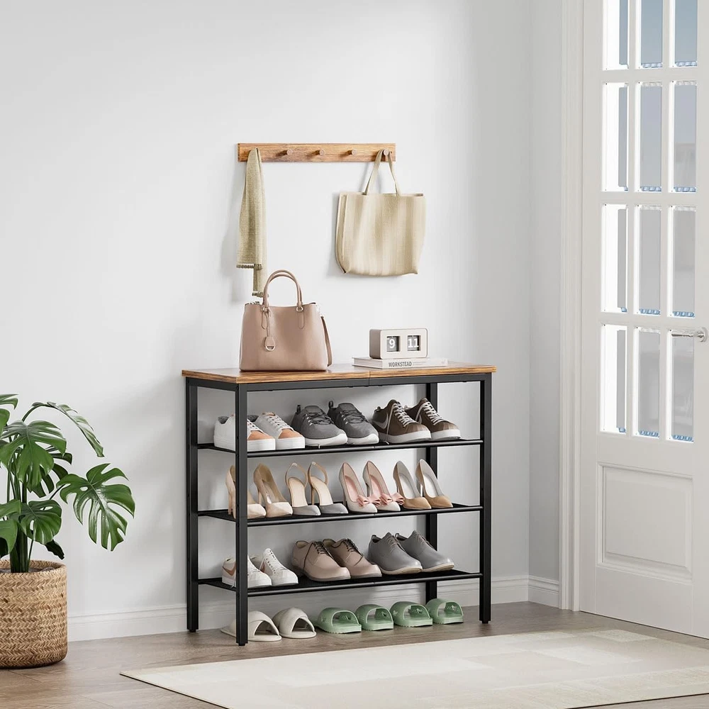 This shoe rack is a game-changer—sturdy, stylish, and super functional! The mix of rustic wood and black metal gives it a chic industrial vibe, and the four tiers hold all my shoes neatly. Super easy to assemble, and the quality feels solid. Perfect for keeping my entryway organized without sacrificing looks. Highly recommend!