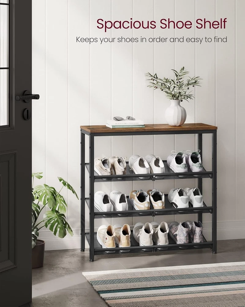 4-Tier Shoe Rack with Adjustable Shelves - Stylish Industrial Entryway Storage ‹ › ‹ › ‹ › ‹ › ‹ › ‹ › ‹ › ‹ › ‹ › ‹ › 4-Tier Shoe Rack with Adjustable Shelves Stylish Industrial Entryway Storage Key Features: Holds More Shoes: This sleek and modern 4-tier shoe rack is designed to accommodate 12-15 pairs of shoes effortlessly; with an 8" distance between each of the 3 mesh shelves, it's perfect for heels and high-top sneakers. Reliable Support: With a maximum load capacity of 60 lbs on the top surface, this piece can hold bags, frames, books, and decorative items, while each shelf supports up to 25 lbs to secure your footwear safely. Worry-Free Storage: Each shelf offers adjustable positioning—flat or angled—by utilizing different screw holes on the side frames, allowing you to optimize display and storage. The raised edges ensure your shoes remain secure and your walls stay clean. Solid Yet Stylish: Crafted from a blend of sturdy particleboard and steel, this shoe rack boasts a robust structure complemented by a striking rustic brown and black finish, adding an industrial flair to any entryway. Easy Assembly: Enjoy a straightforward assembly process with clear instructions and labeled parts, making this shoe rack ready to organize your space in no time. Benefits: Maximizes storage space while maintaining an elegant aesthetic. Adjustable shelves custom fit your shoe collection. Heavy-duty design ensures stability and longevity. Enhances your entryway, combining functionality with style. Protects your walls while showcasing your favorite footwear. Why Choose Our 4-Tier Shoe Rack? Transform your chaotic entryway into an ordered oasis with our 4-Tier Shoe Rack, designed to bring efficiency and beauty to your shoes’ storage. The mix of durable materials and adjustable shelving gives you ultimate control—display your favorite pairs proudly while ensuring everything stays tidy. Suitable for any décor, this industrial-style shoe rack is the perfect blend of practical storage and stylish design. Don't let shoe clutter steal your serenity; elevate your space and keep everything organized with this exquisite shoe rack—order yours today! Shipping Free & Fast Shipping - We offer free shipping to most of the USA with a normal delivery time of 3-7 days. However, due to the current situation, additional delivery time (up to 3 weeks) may be required for some items. Alternative Carriers - We may use alternative carriers (e.g. USPS, FedEx, UPS, etc.) to ensure your package arrives safely and on time. Due to the use of multiple carriers, we are unable to provide a tracking number automatically. Handling Time - Orders are processed and shipped within 1-2 business days of receiving cleared payment. Shipping Restrictions - Shipping to Alaska, Hawaii, Puerto Rico, Guam, and other US territories may incur shipping charges or delivery restrictions. Please contact us before ordering, or your order can be refunded/cancelled. State Restrictions - There may be restrictions based on your state of purchase. For example, certain items may not be shipped to California due to state regulations. Contact for Tracking Updates - If you require tracking updates or have any concerns about the delivery of your order, please feel free to contact us, and we will be happy to assist you. Return 30-Day Hassle-Free Returns - We want you to be completely satisfied with your purchase. If you are not, you can return the item within 30 days of receiving it for a full refund or exchange. Easy Return Process - To start a return, simply contact us and we will provide you with a prepaid return shipping label and detailed instructions. Restocking Fee - There are no restocking fees for returns. However, the buyer is responsible for return shipping costs if the return is not due to a seller's error. Refund Processing Time - Refunds will be processed within 5 business days of receiving the returned item in its original condition. Payment We accept all major credit cards, PayPal, and Apple Pay for your convenience. Your payment information is secure and encrypted to ensure a safe and seamless transaction. Please complete your payment within 3 days of purchase to avoid any delays in shipping. Feedback Your feedback is extremely important to us. We strive to provide the best products and customer service possible. If you are satisfied with your purchase, please take a moment to leave us a positive review. If you have any concerns or issues with your order, please contact us before leaving negative feedback. We are committed to resolving any problems and ensuring your satisfaction. Contact Us If you have any questions or concerns, please feel free to reach out to our customer support team. You can contact us through the eBay messaging system. We are available Monday to Friday, 9:00 am to 5:00 pm EST, and we will do our best to respond to your inquiry within 24 hours. Buy it now and enjoy a pleasant shopping experience! UPC: Not Set Unit Quantity: 1 Material: Mixed Materials,Steel,Particleboard Mounting: Free Standing Features: Adjustable,Durable,Easy Assembly Theme: Not Set Care Instructions: Wipe with dry cloth Brand: Unbranded Item Height: shoe rack Item Length: shoe rack Item Width: shoe rack Type: Shoe Rack Number of Shelves: 4 Capacity: 12-15 pairs Item Weight: 13.9 lb Item Depth: 11.8 in MPN: Not Set Model: Not Set Number of Items in Set: One-Piece Color: Rustic Brown Number in Pack: 1 Number of Compartments: 4 Number of Drawers: 0 Style: Industrial Country/Region of Manufacture: Not Set Original/Reproduction: Not Set Finish: Particleboard Unit Type: lb Assembly Required: Not Set