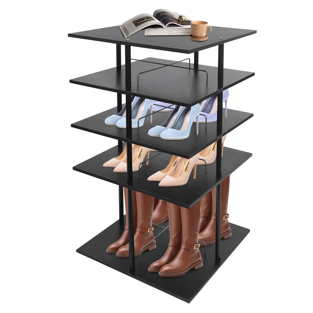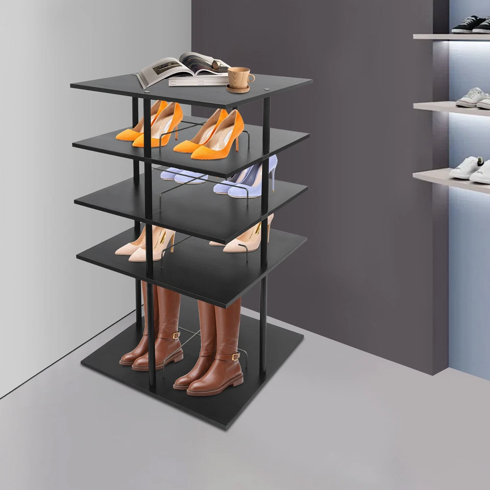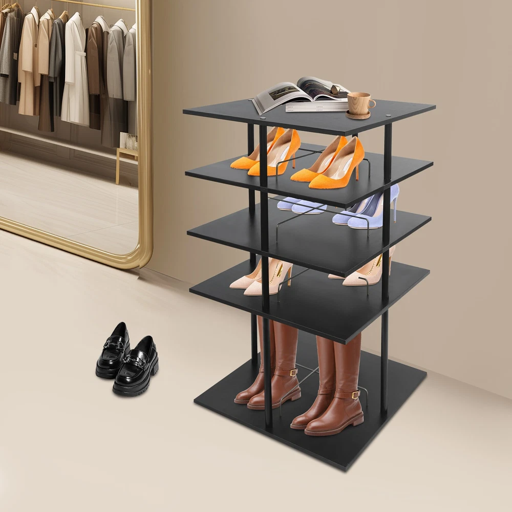 ????Welcome to my store???? Description A good shoe rack is not only a thoughtful steward of your shoes, but also an artistic accent to your home life. Our shoe storage rack is designed to hold shoes, hats or other items in an organized manner. It is made of high-class paintless board and metal with spray coating and baking paint processes, which is not only beautiful but also can be used for a long time. It can help you organize various kinds of shoes and solve storage problems in small homes. Key Features Build to Last: It is made of high-class paintless board and metal with spray coating and baking paint processes, which makes it wear-resistant, environmentally friendly, and not easy to deform, so you can use it for years and years. Large Capacity: The 4-tier design, each tier can accommodate 4 pairs of regular shoes(for reference), makes this product spacious enough for a family's shoe storage needs. You can also place small potted plants, handbags, umbrellas, etc.(not included) on the top tier. Strong Load-bearing Capacity: The square base and the solid connection between the parts allow this product to hold up to 38.58 lbs, so you can use it to store shoes or bags (not included) with confidence. Display Assistant: With it, you can neatly arrange different types of shoes. The 8.26-inch and 17.32-inch tier spacing accommodates different heights of shoes such as trainers and tall boots. In addition, the bottom of this shoe rack can be rotated 360° for easy selection, access, and storage of shoes or other items. Thoughtful Design: The open design allows you to see your shoes at a glance for easy access while still allowing for effective ventilation. Elegant Appearance: The simple black color finish creates a touch of elegance and casualness. It blends well with a variety of interior styles, bringing functionality and aesthetics to your space. Space Saving: It utilizes vertical space wisely and has a small footprint(22.44*22.44 inches), which won't make the room congested. Simple Cleaning: Thanks to its smooth surface and simple structure, you can easily clean it with a soft rag (not included). Ideal Gift : This quality and practical product is a nice housewarming gift for your family and friends. Buy with Confidence: We stand behind all our guests and look forward to assisting you with your purchase. It is our pleasure to answer your confusion and questions. The end of the story between us is not "we sell and you buy". Details Stable Base: The square base measuring 22.44*22.44 inches and with non-slip feet can effectively stabilize the product and prevent it from shaking. Center Crossbars: They can be good for dividing up placed items and making them neater. Smooth Edges: The rounded and smooth edges not only add to the aesthetics of the product but also improve the safety of use. Application It can be used in homes, stores, clothing stores, hotels, gift stores, or factory warehouses to hold various styles of shoes, hats, handbags, and so on. Specifications Color: Black Material: Paintless Board, Metal Process: Spray Coating, Baking Paint Style: Modern Shape: Rectangular Assembly Required: Yes Mount Type: Floor Mount Feature: 360° Rotatable Product Care Instructions: Wipe with a Soft Cloth Number of Tiers: 4 Number of Shoes Applicable Each Tier: 4 Pairs(For Reference) Total Load-bearing Capacity: About 17.5kg/38.58lbs Gross Weight: 15kg/33.07lbs Net Weight: 14.25kg/31.41lbs Tier Spacing: 21cm/8.26in, 44cm/17.32in Product Size: 57*57*107cm/22.44*22.44*42.1in Package Size: 60*60*20cm/23.62*23.62*7.87in Package Included 1* Shoe Storage Rack All Accessories for Assembly Notes Please confirm the product size before purchasing. Please note that this product does not include display items such as shoes. Please note that the number of shoes that can be stored will vary depending on the size and height of the shoes. Please allow the slight color difference caused by the shooting light and 1-3cm error due to manual measurement, and make sure you do not mind before you order. Payment Delivery details Terms of sales About us Contact us Payment We accept ebay payment 。 Fees such as import duties, taxes are not included in the item price or shipping costs. These charges are the buyer's responsibility. Delivery details Shipping: 2-9 working days to: USA Terms of sales We maintain high standards of excellence and strive for hundred percent customer satisfaction. Feedback is very important to us. We hope that you contact us immediately before you give neutral or negative feedback, so that we can address your concerns. It is impossible to address issues if we do not know about them! About us Your satis faction is our ultimate goal. We work hard to earn your trust and future business. Our certified technicians have tested each item before shipping. The unit comes with 1 year limited warranty on all manufacturing defects. a) If you receive a defective item, you may return it or ask for a discount. Please contact us within 14 days after you receive the package. b) What you returned must be intact and in its original packaging as re? u. Customer is responsible for shipping costs of the returned item. c) We will cover the cost of shipping back t with the shipping rate indicated in the registration page. We will send you a new unit or refund the full payment you paid. Thank you. Contact us Business Hour Business Hour: Monday To Friday: 8:30 AM to 5:00 PM (Beijing China time) Due to time zones, our reply to your questions may not be immediately. But within above working time, we will reply your email within 24 hours. If it's non-workdays, please kindly be patient and wait till Monday. Please contact us with ebay message. Please feel free to contact us if you have any questions. Monday To Friday: 8:30 AM to 5:00 PM (Beijing China time) Due to time zones, our reply to your questions may not be immediately. But within above working time, we will reply your email within 24 hours. If it's non-workdays, please k