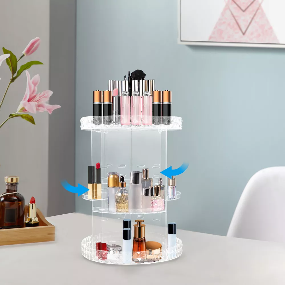 This makeup organizer is a game-changer! The 360-degree spin makes everything easy to reach, and the adjustable height is perfect for all my products. Love the sleek, clear design—it looks so elegant on my vanity while keeping everything neat. No more digging through clutter—just spin and grab what I need. Super sturdy and holds a ton! Highly recommend for anyone who loves an organized beauty space.