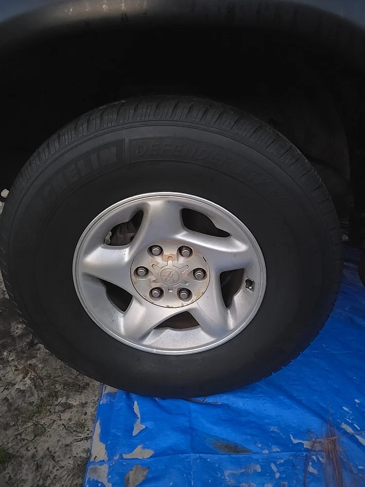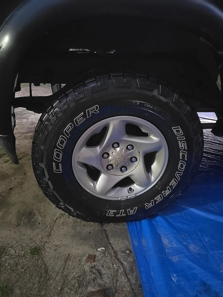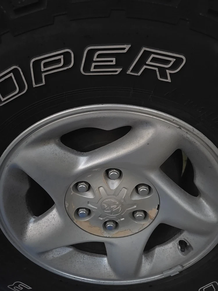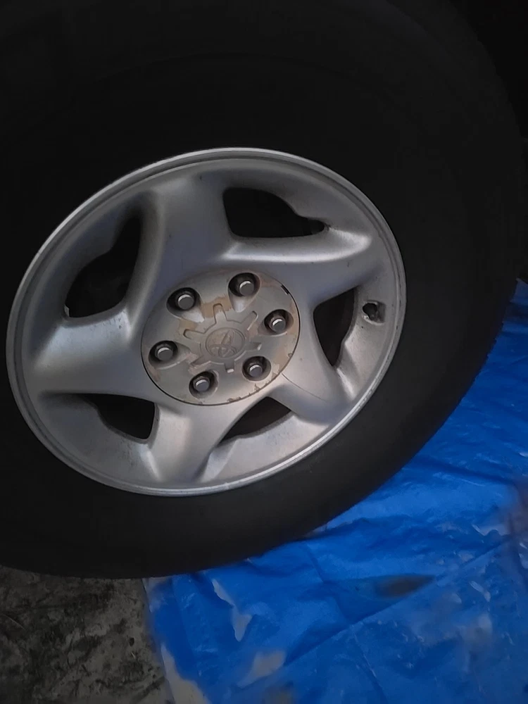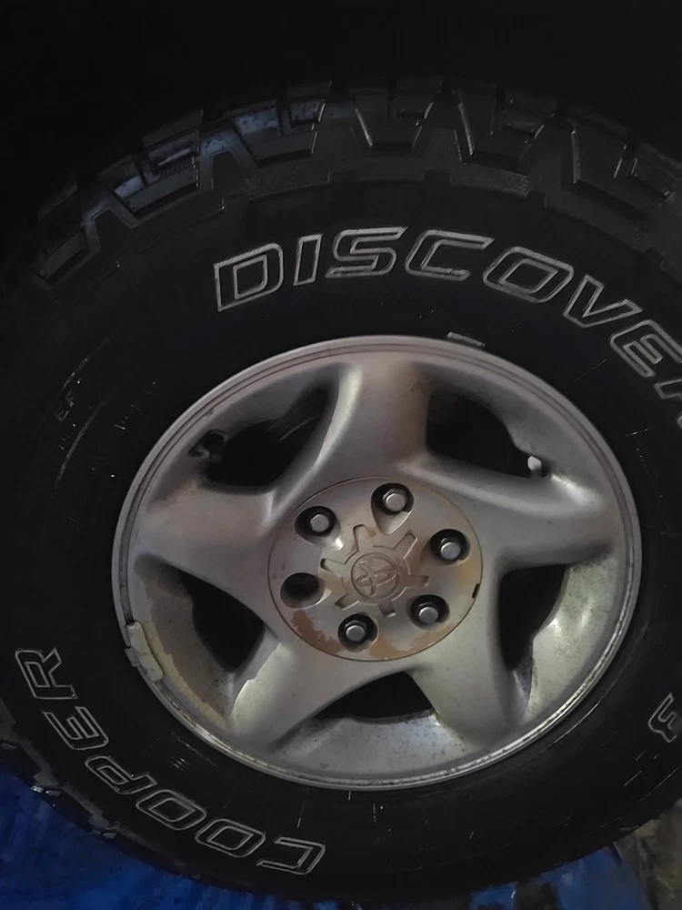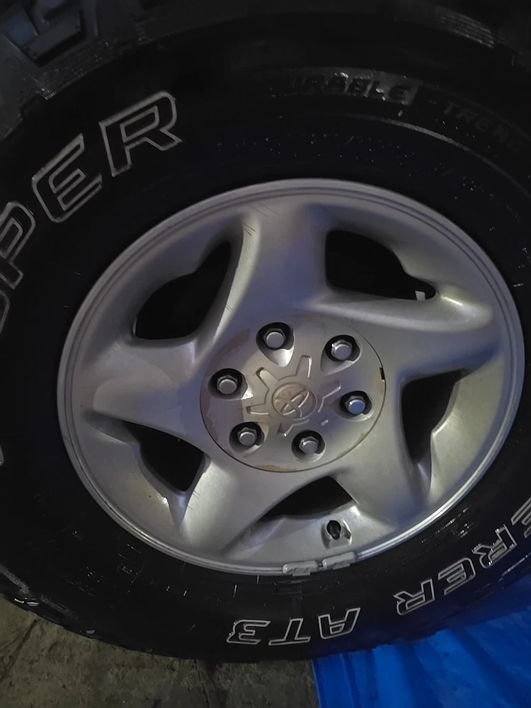 Used, off of a 2000 Toyota tundra but will fit from 2000- 2004. 4- 16×7 Toyota tundra OEM rims with Center Caps 5 spoke, 6 Lug, good condition. 3 tires are cooper discoverer AT3 LT 265/75 R16 white letter side out with about 3/8-1/2 inch of tread 1 tire is a Michelin Defender LTX M/S 265/75 R16 Black wall side out with very little tread less than a 1/8 inch. All tires hold air good I am not charging for the tires, only the rims. If buyer does not want the tires it will be the buyers responsibility to have them taken off. If I take rims to have them removed I will have to add the amount of whatever the shop charges me to the amount of the tire/ tires being bought. If sold separately they are 90.00 each. If bought as a full set of 4 I will lower the price to 80.00 each /making them 320.00 for the whole set of 4. Only buyer can pick up tires.