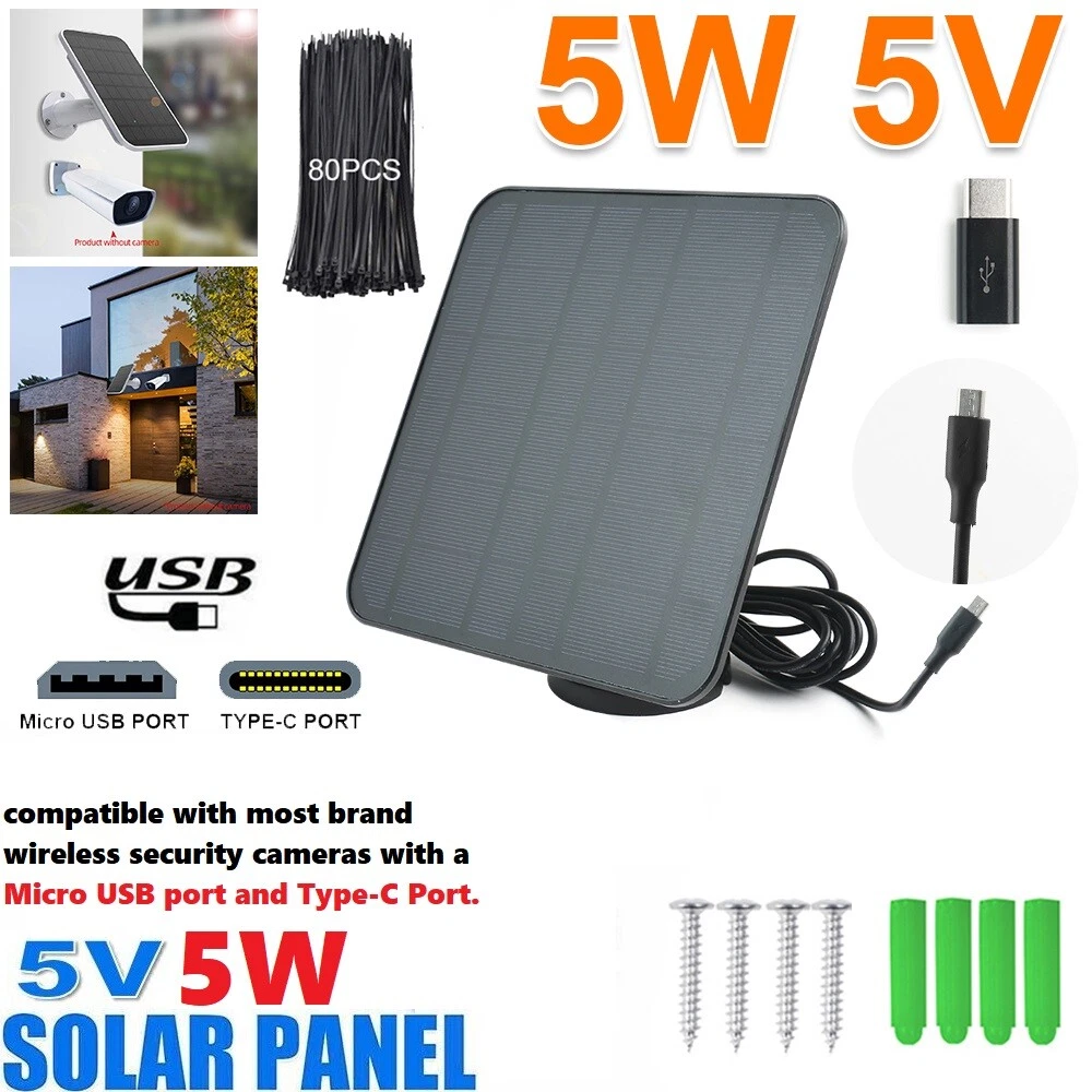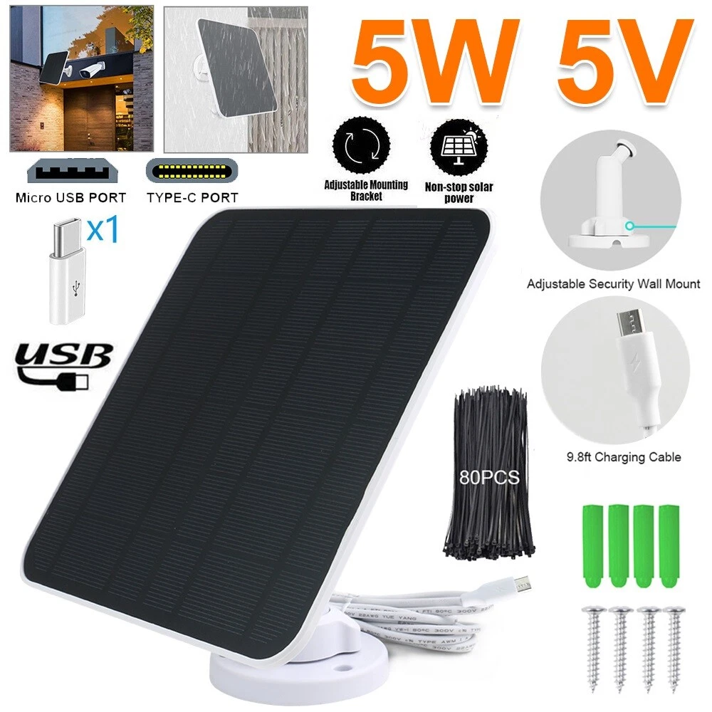 4W 5W Solar Panel Charging for Eufy Ring Reolink Battery Camera Micro USB&USB-C