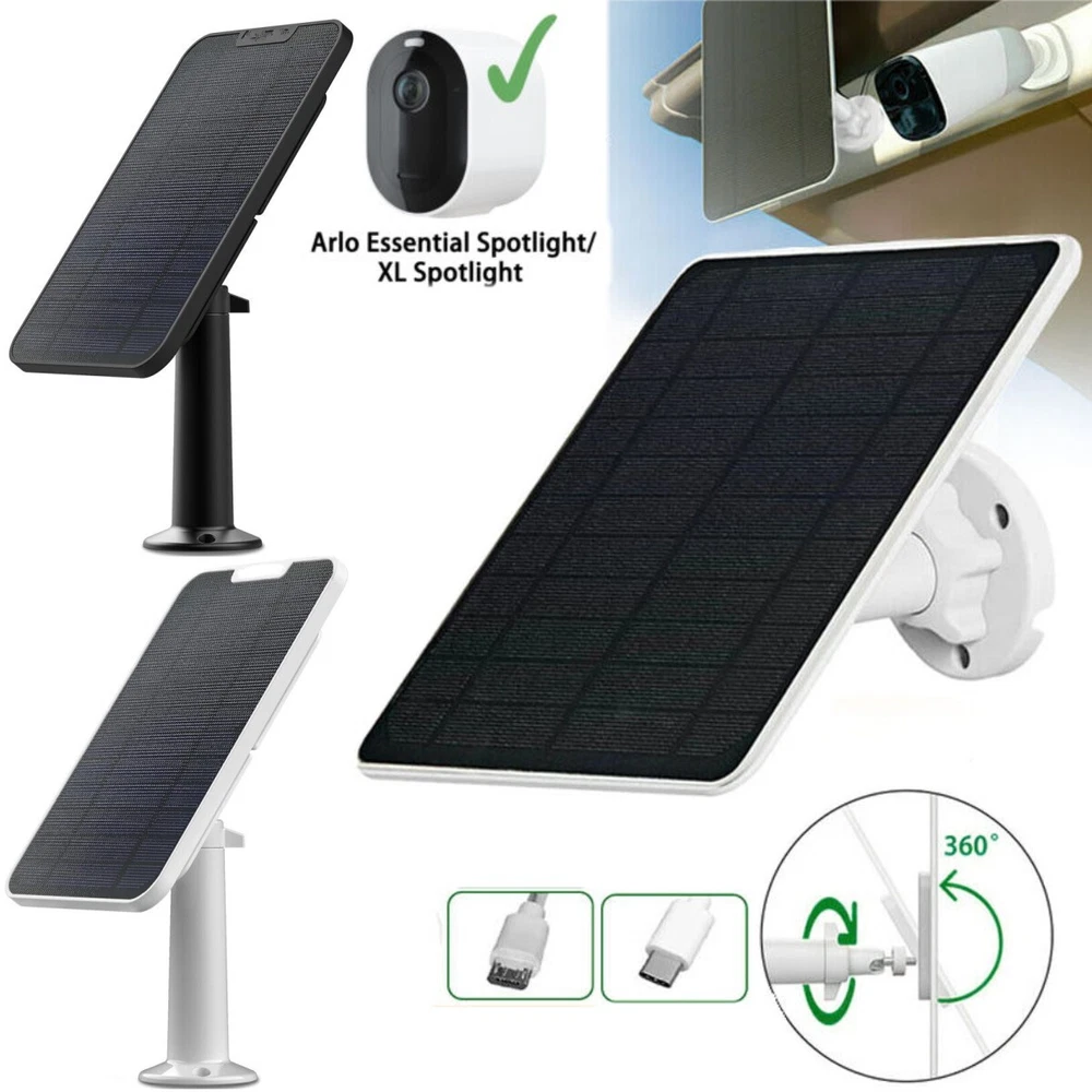 Power: 4 W gtin13: Does not apply Smart Home Protocol: // Items Included: 9.8 ft cable MPN: Does not apply Location: Outdoor Only Surveillance Technology: PTZ Power Source: Solar Features: Micro USB/Type C Operating Range: 3 m Maximum Resolution: // Voltage: 5 V Operating Sound Rating: 30 dB UPC: Does not apply Connectivity: Micro USB/Type C Model: for Arlo Essential Spotlight Smart Home Compatibility: // Brand: Unbranded Number of Channels: // Type: Solar Panel Number of Cameras Included: N/a Storage Capacity: //